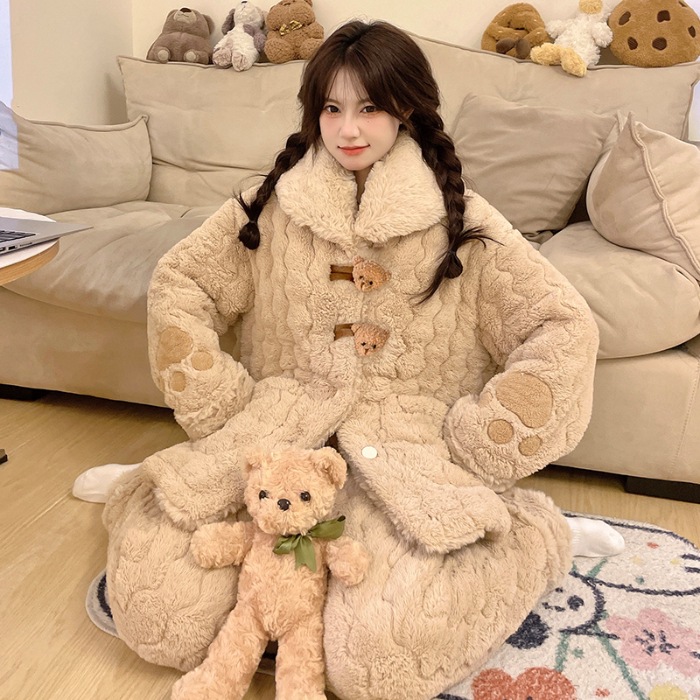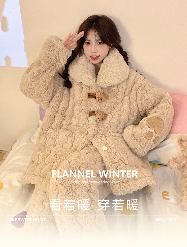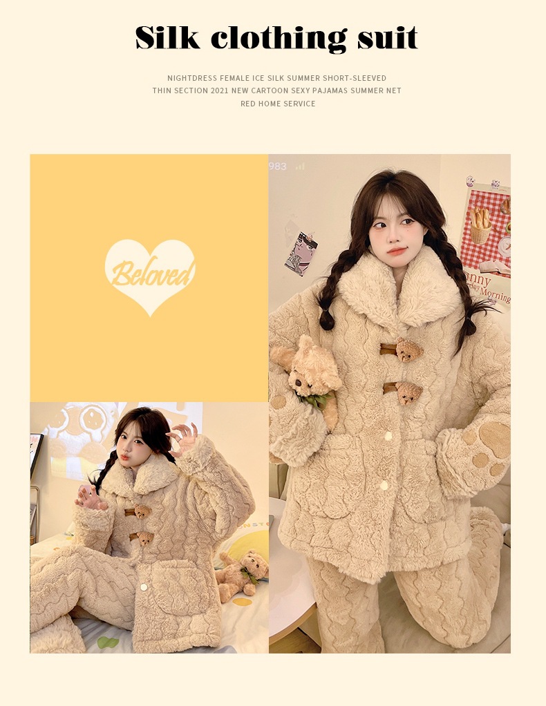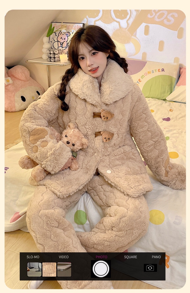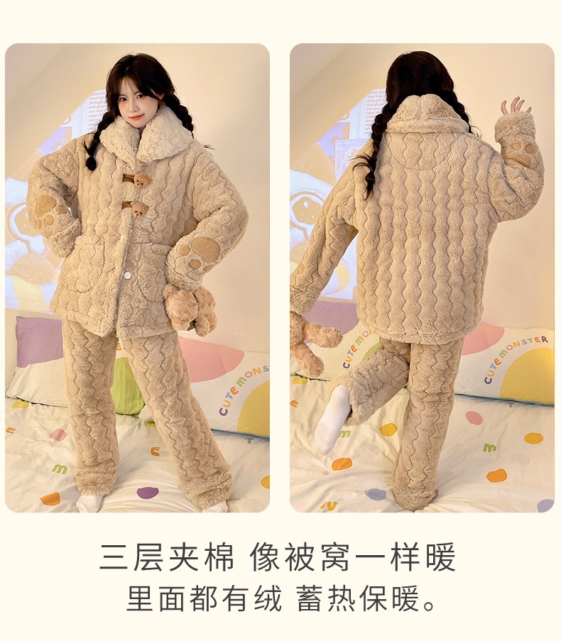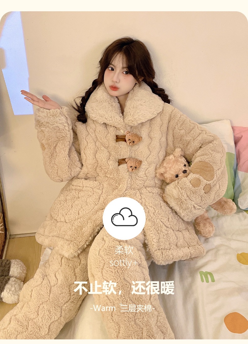 [물리 매장] 목화 토끼 모피 겨울 새 잠옷 세트 여성 3 층 면 두꺼운 귀여운 홈 옷 세트스토어 가기