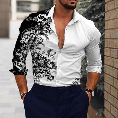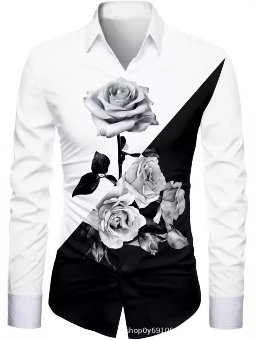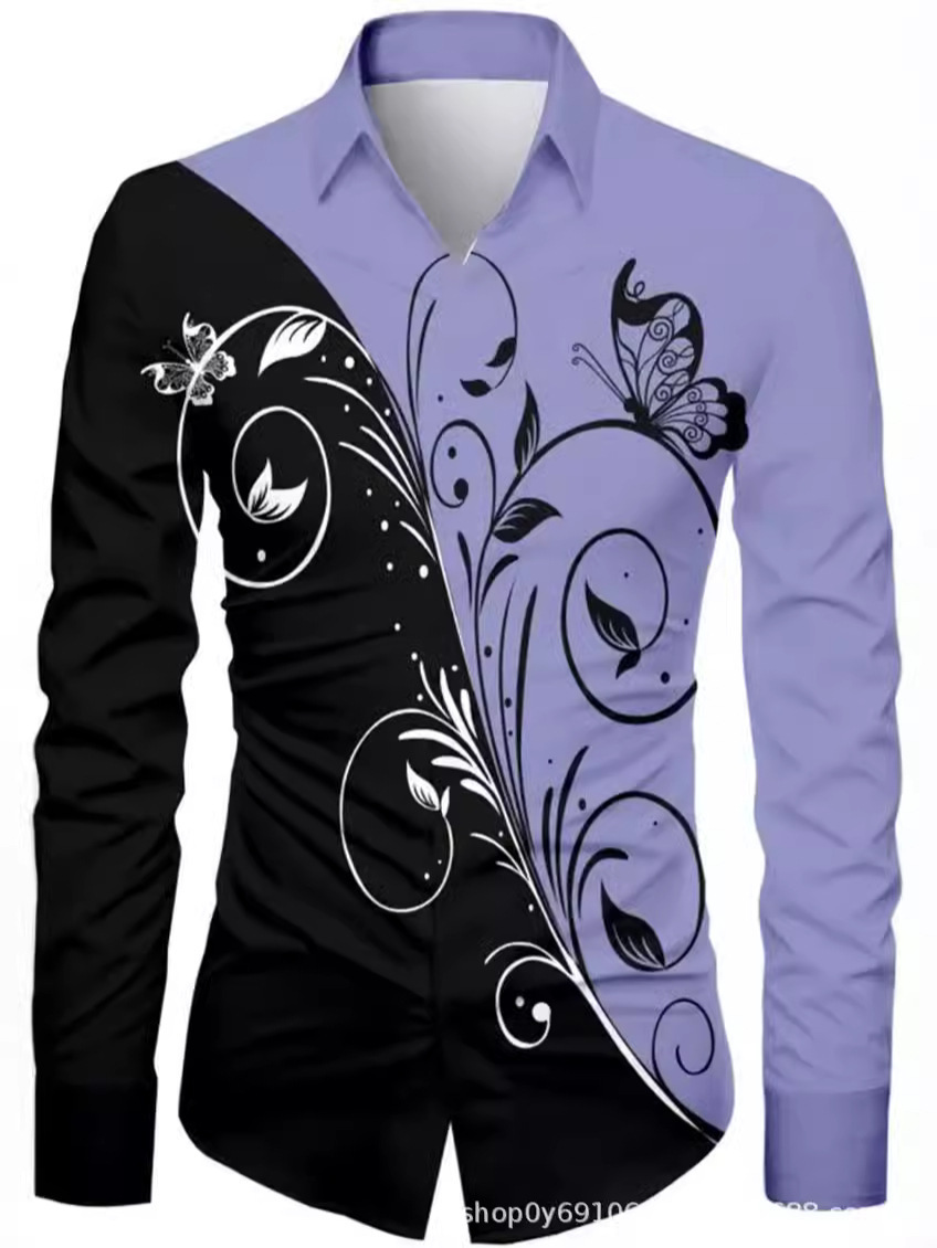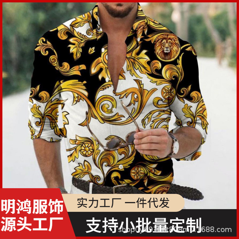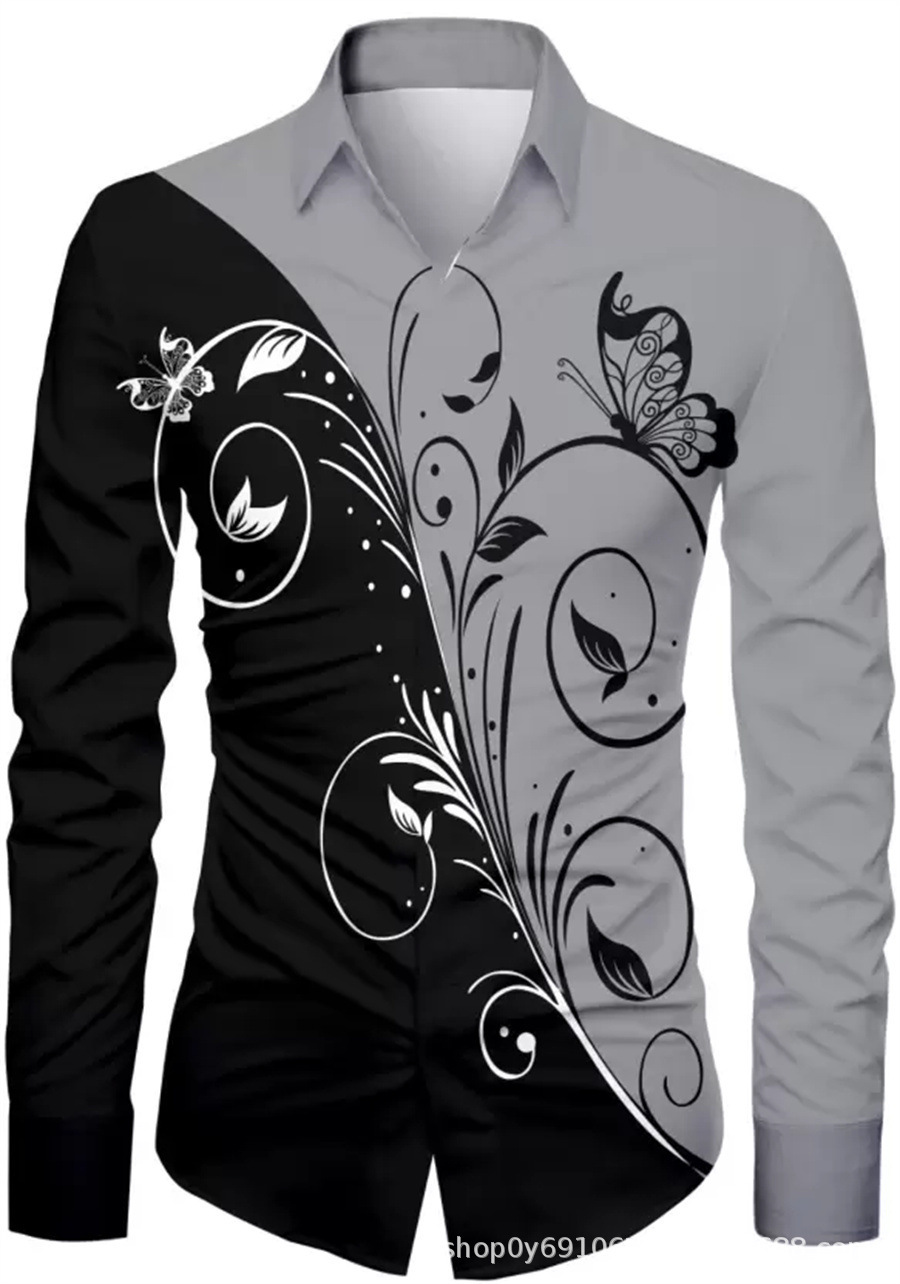 긴팔 남성 셔츠, 새로운 패션 슬림핏, 다림질 필요 없는 셔츠, 가을 하와이안 셔츠, 크로스보더 아마존 패션스토어 가기