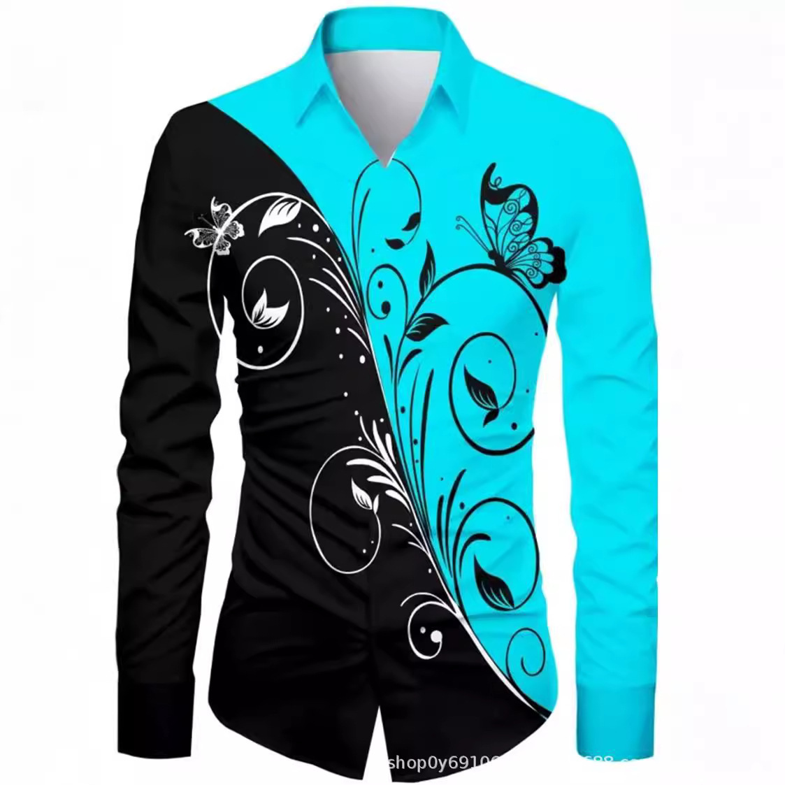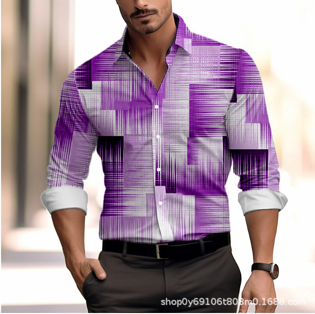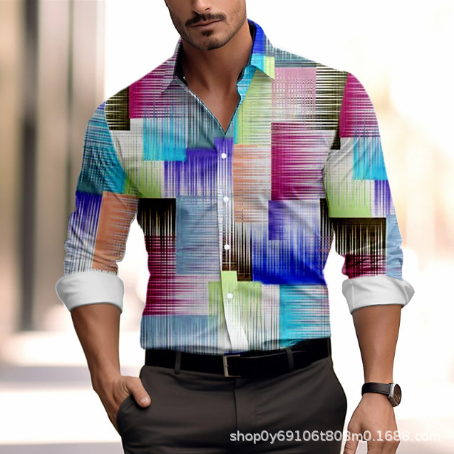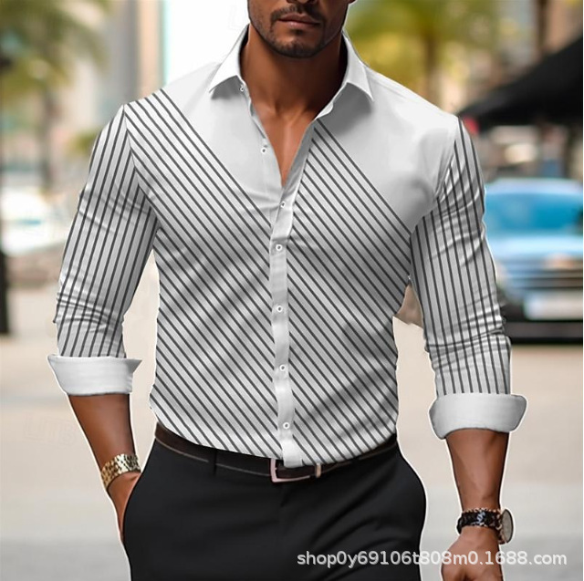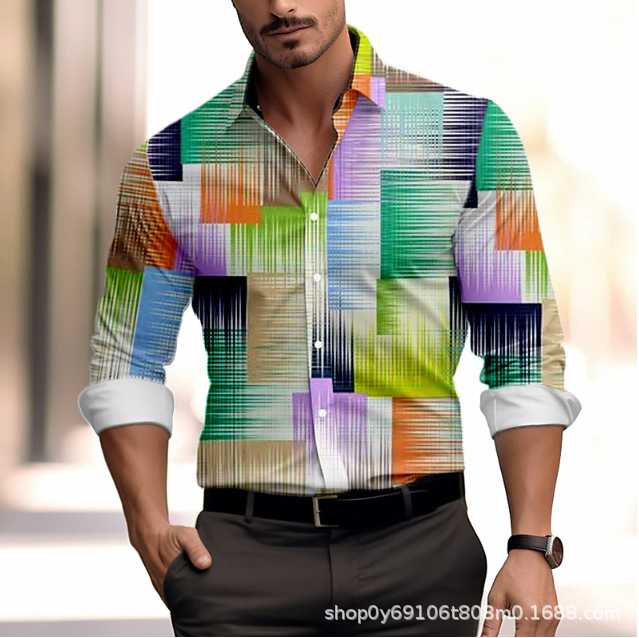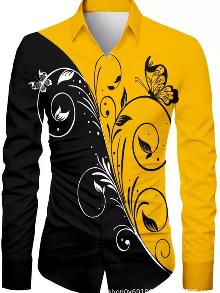 긴팔 남성 셔츠, 새로운 패션 슬림핏, 다림질 필요 없는 셔츠, 가을 하와이안 셔츠, 크로스보더 아마존 패션스토어 가기