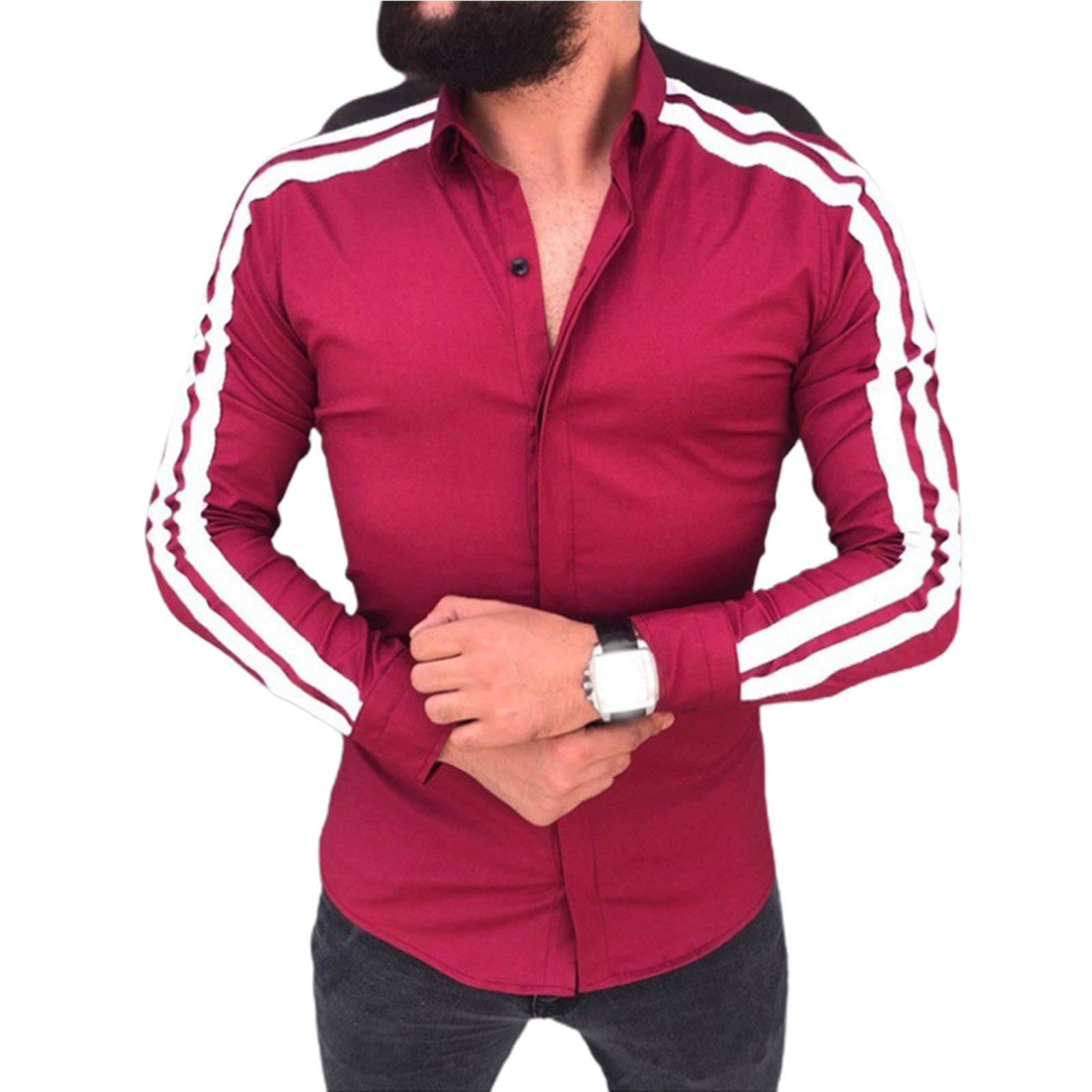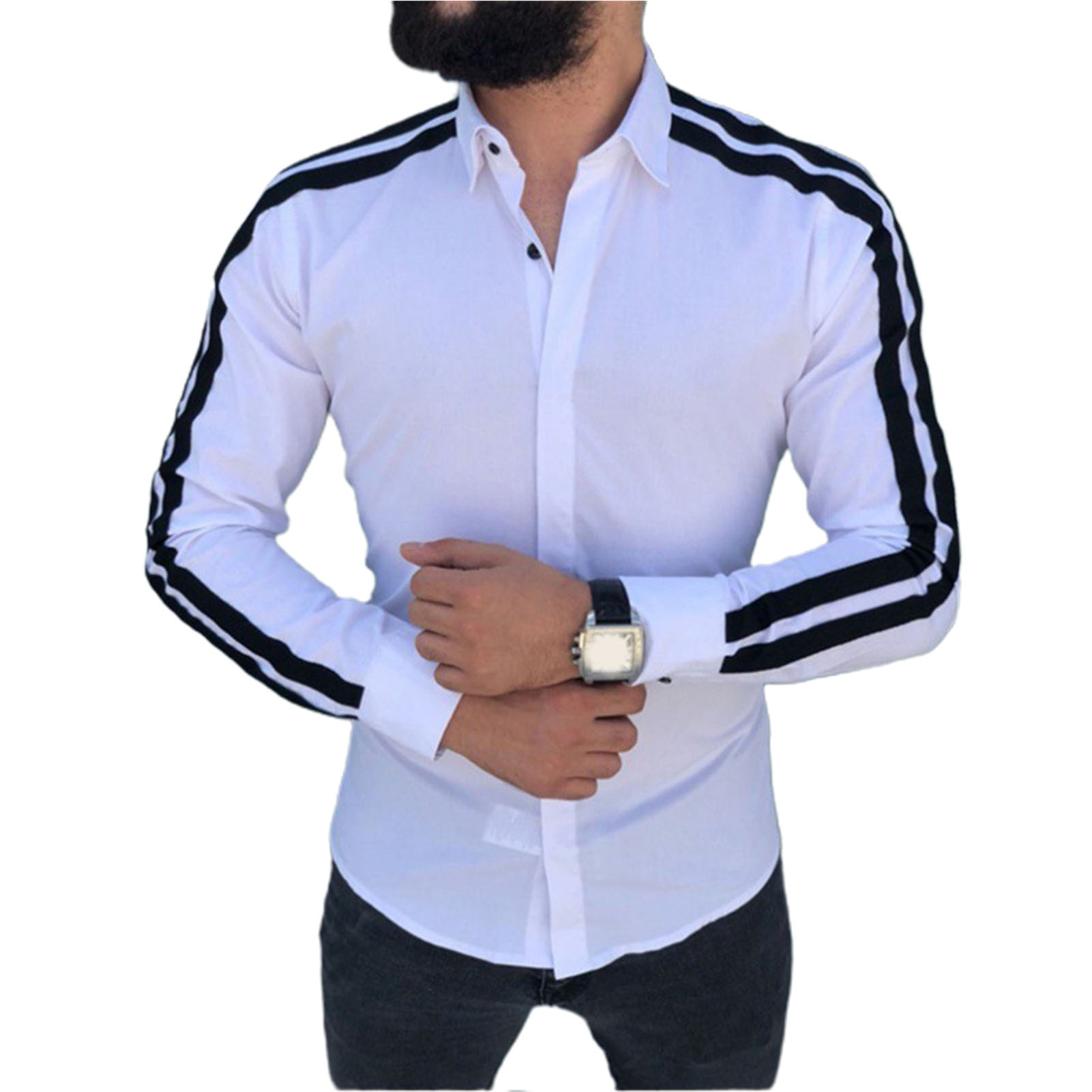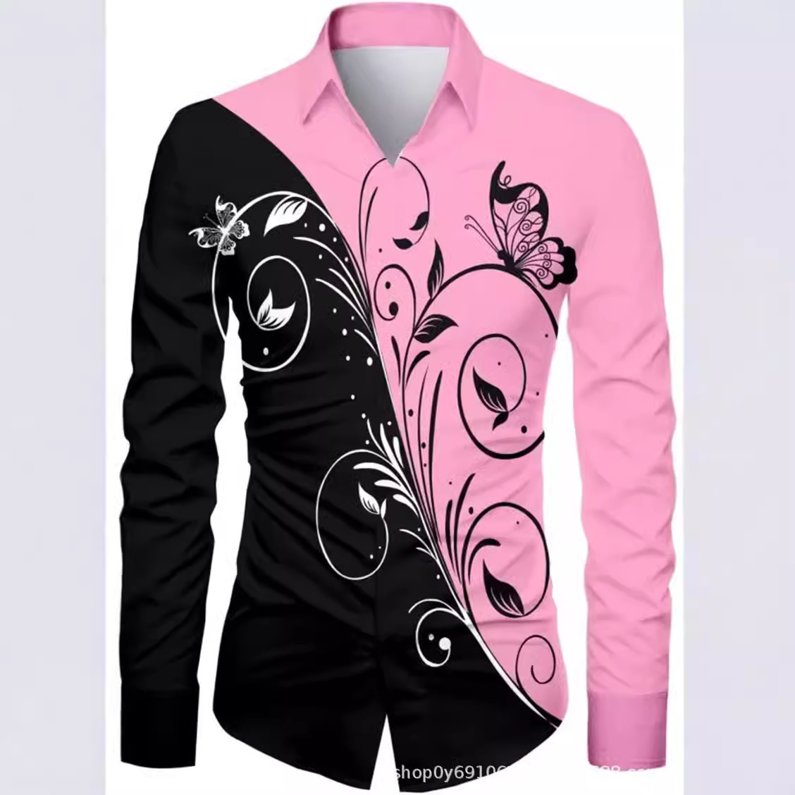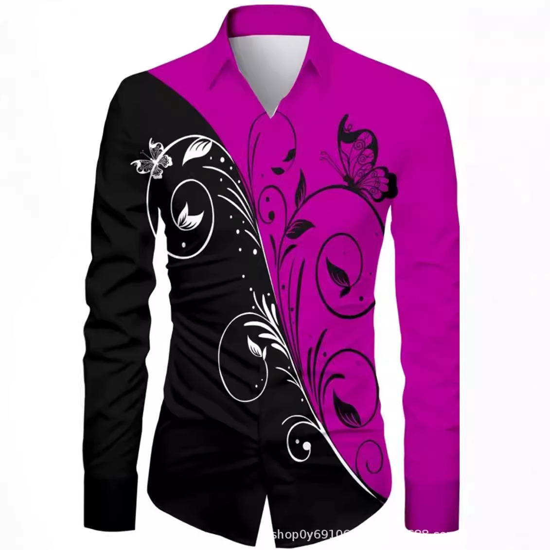 긴팔 남성 셔츠, 새로운 패션 슬림핏, 다림질 필요 없는 셔츠, 가을 하와이안 셔츠, 크로스보더 아마존 패션스토어 가기