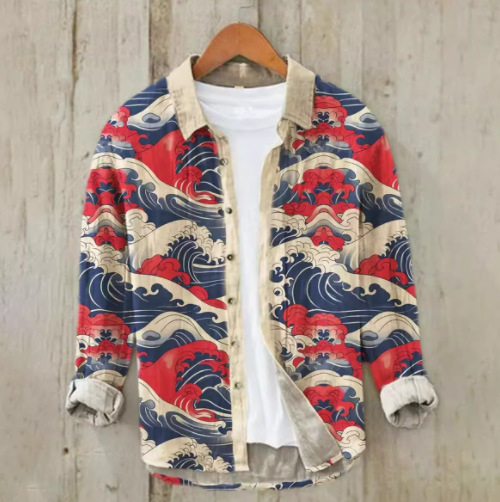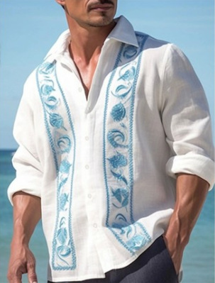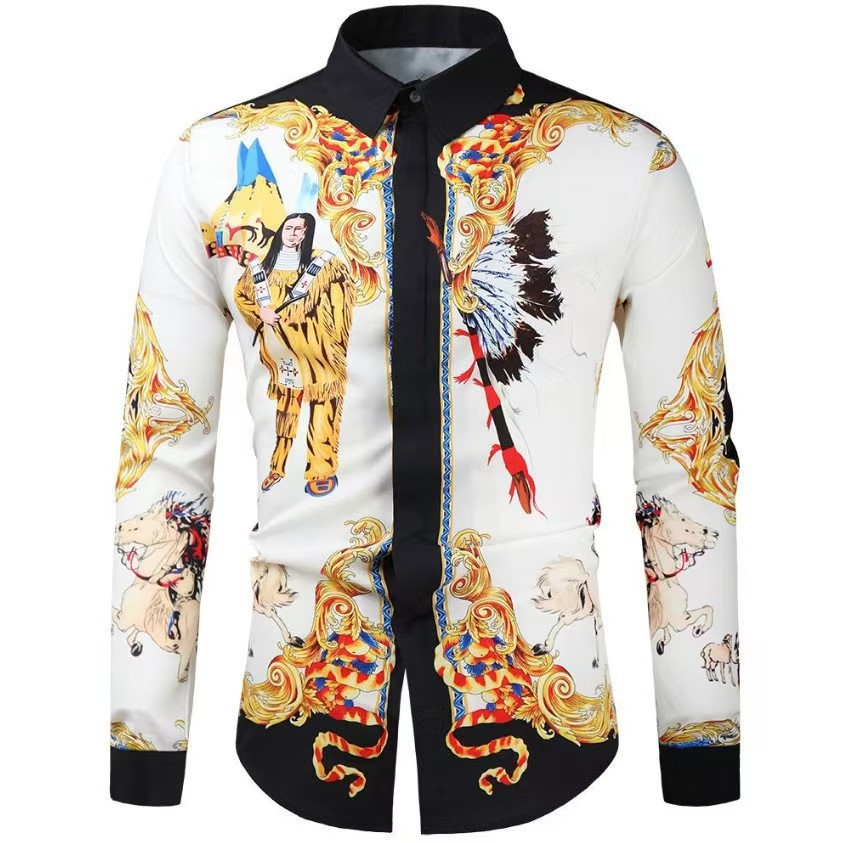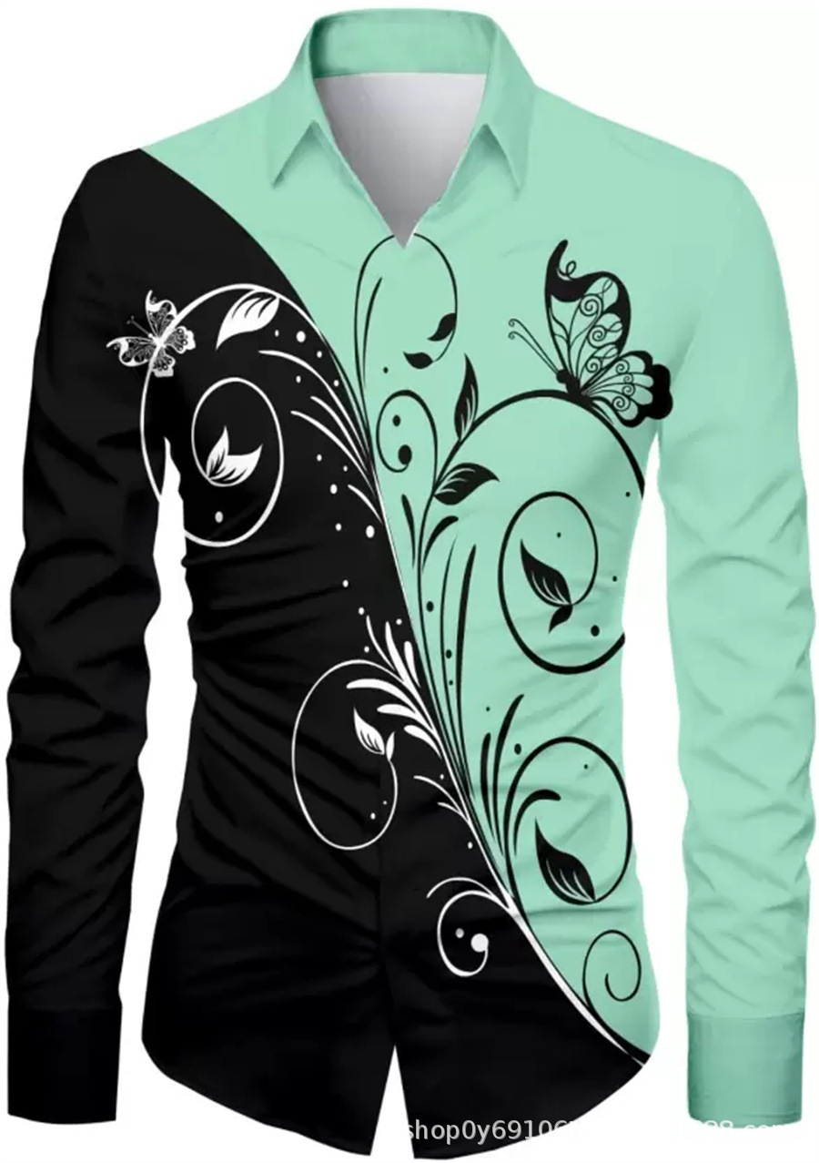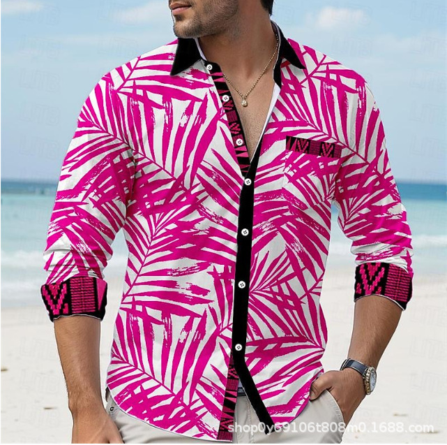 긴팔 남성 셔츠, 새로운 패션 슬림핏, 다림질 필요 없는 셔츠, 가을 하와이안 셔츠, 크로스보더 아마존 패션