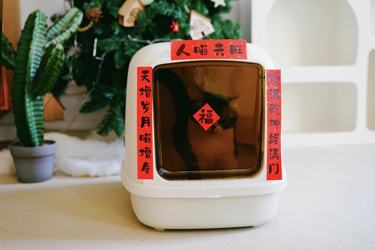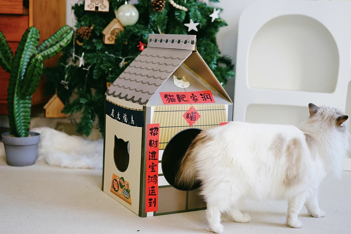 2024 애완 동물 커플 토끼 년 미니 봄 축제 커플 고양이 쓰레기 상자 새해 장식 고양이 집 개 사육장 재미 커플스토어 가기