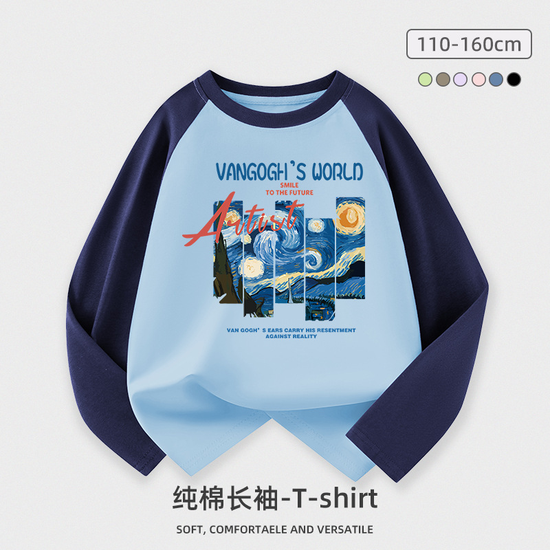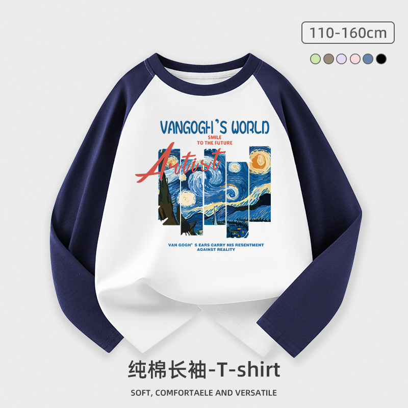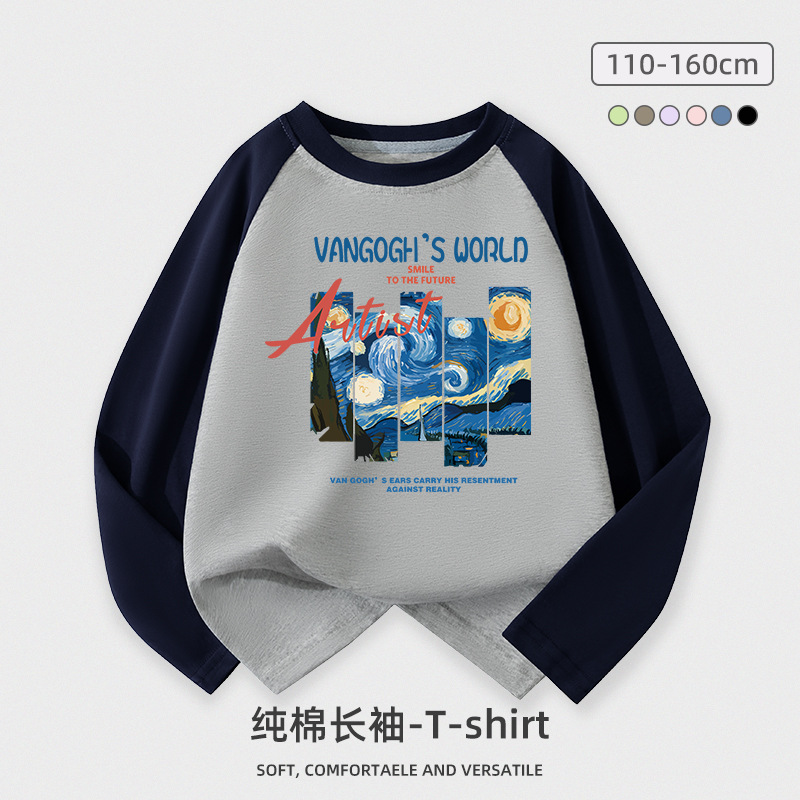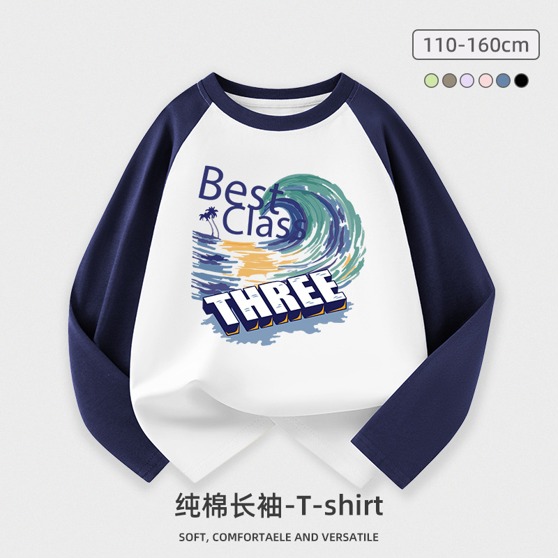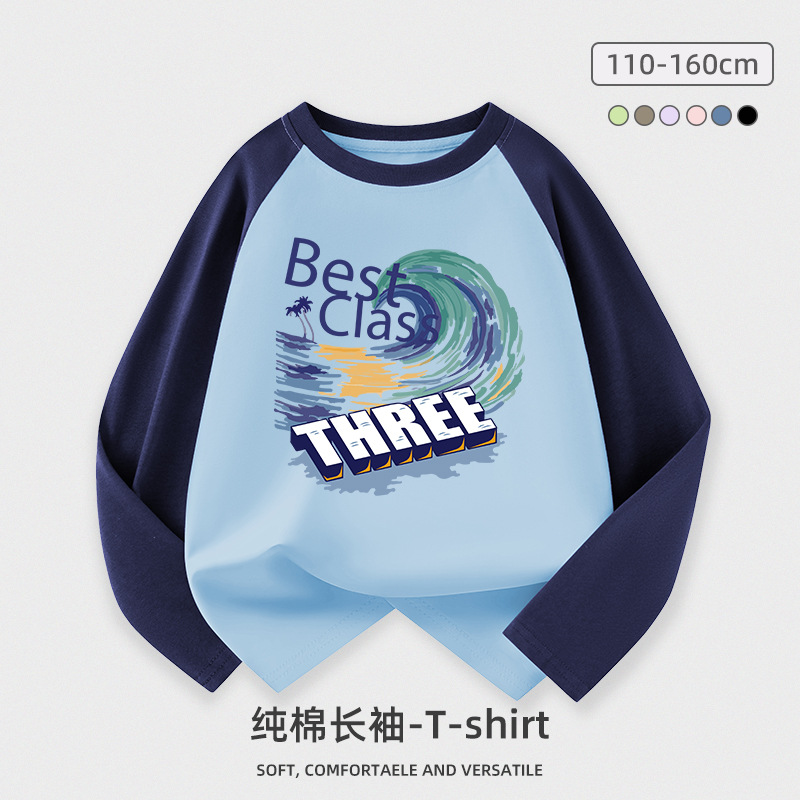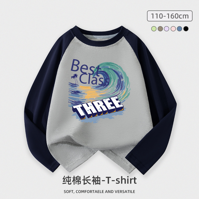 도매 소년 긴팔 티셔츠 어린이 봄과 가을 새로운 어린이 서양식 최고 중형 및 대형 어린이 순면 옷 조수 어린이스토어 가기