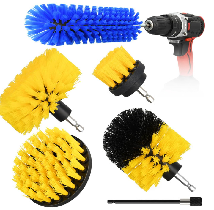 TEMU 뜨거운 전기 드릴 브러시 6 조각 세트 주방 자동차 창 욕실 세부 청소 나일론 브러시 pp 먼지 제거 세차 브러시
