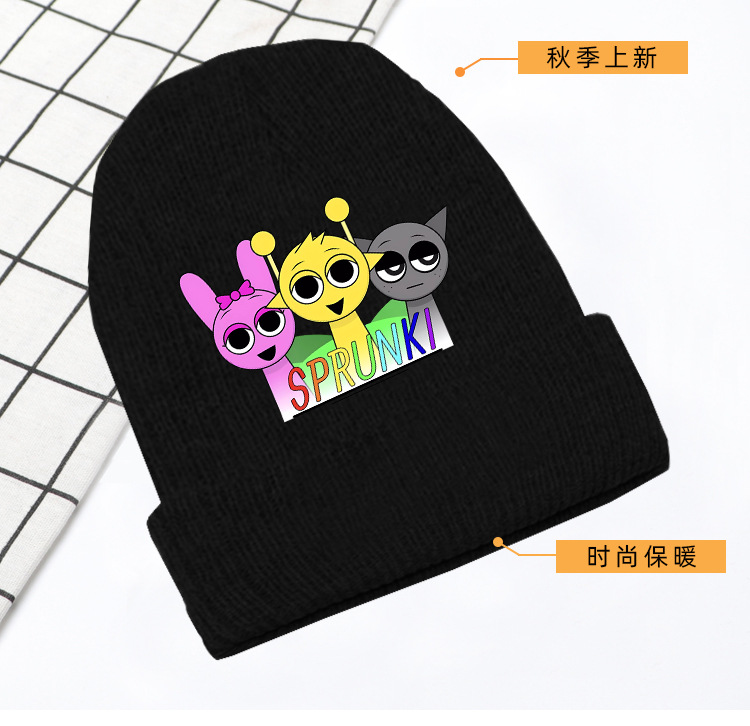 Sprunki 리듬 박스 모자 가을과 겨울 따뜻한 니트 모자 풀오버 소년 소녀 어린이 올 매치 음악 게임
