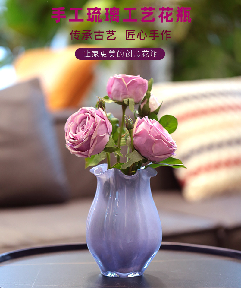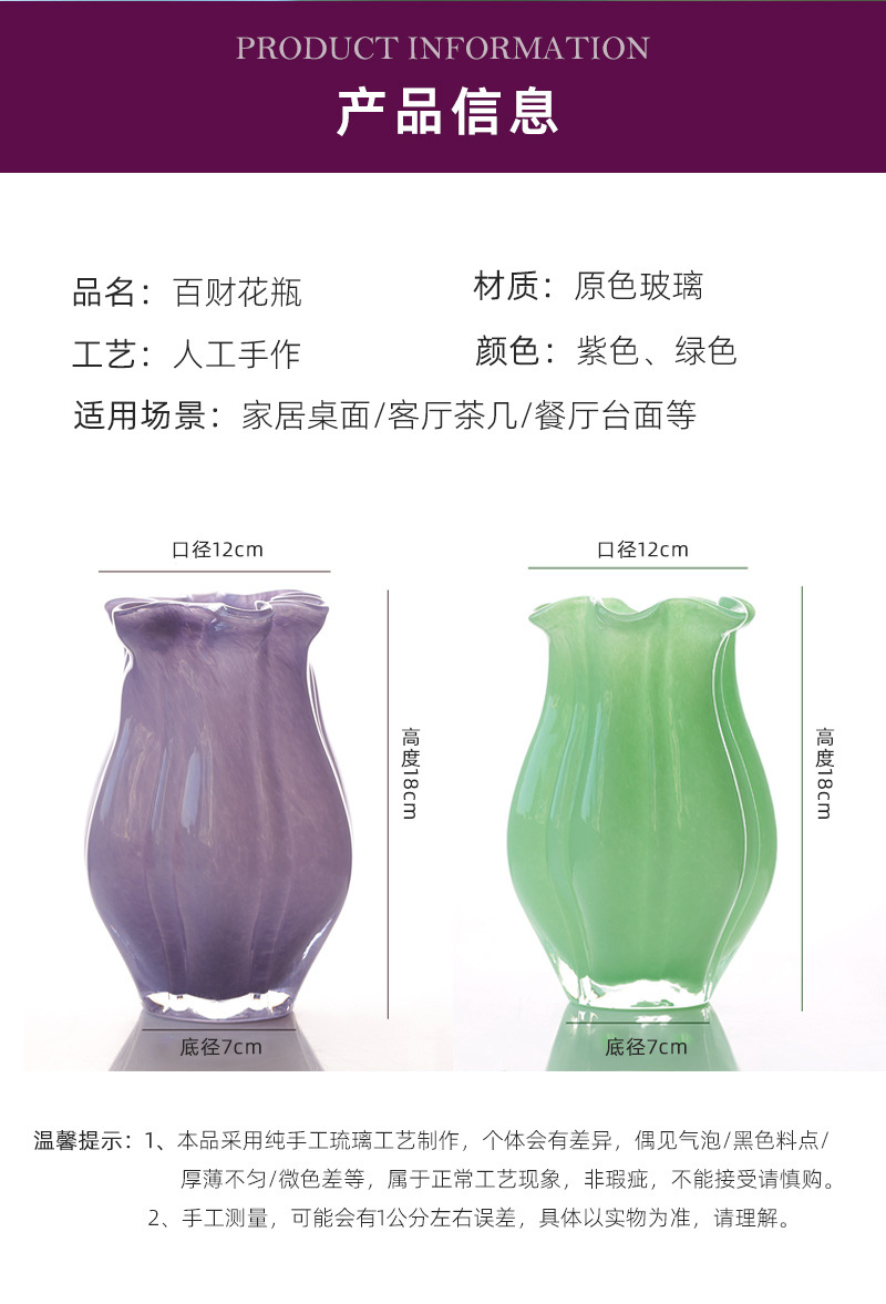 本产品是琉璃工艺花瓶,每一个都是由10年以上老工匠纯手工制作,