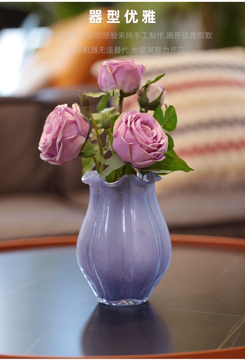 수제 고급 컬러 유약 꽃병 창조적 인 양배추 컬러 유리 꽃병 물 제기 꽃 배치 데스크탑 장식품