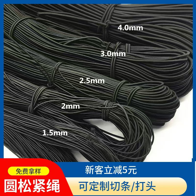 공장 도매 1mm-15mm 높은 탄성 라운드 라텍스 탄성 로프 의류 모자 로프 흑백 컬러 라운드 탄성 로프스토어 가기