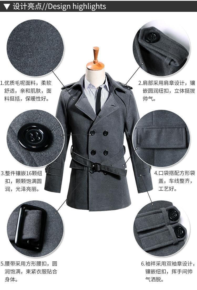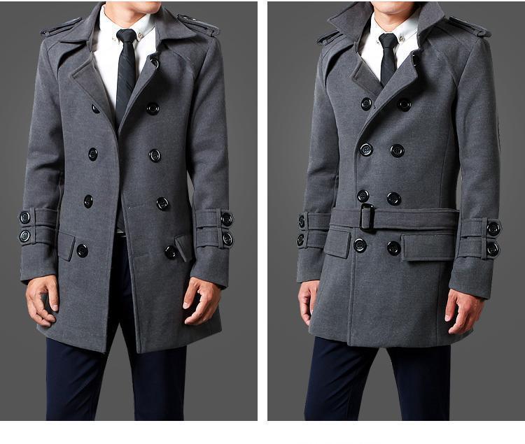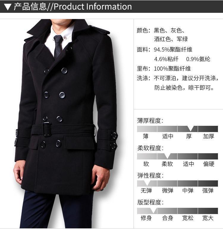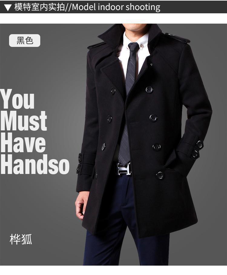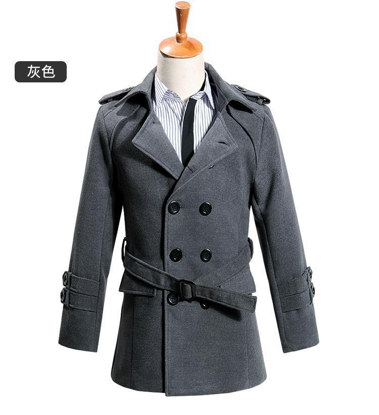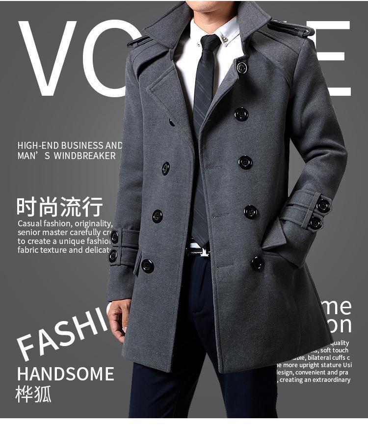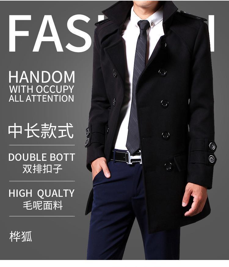 2024 가을과 겨울 새로운 남자 트렌치 코트 슬림 핏 한국 스타일 트렌디 코트 양모 더블 브레스트 청소년 두꺼운 코트