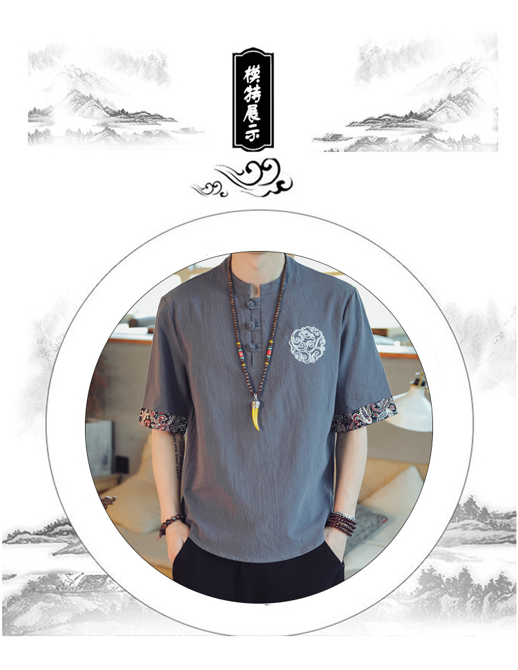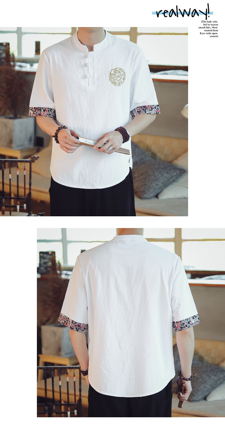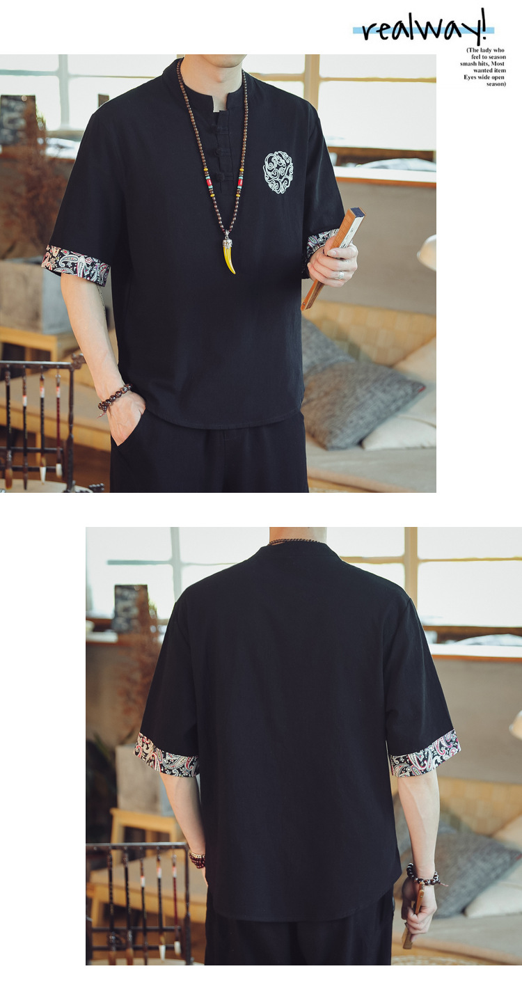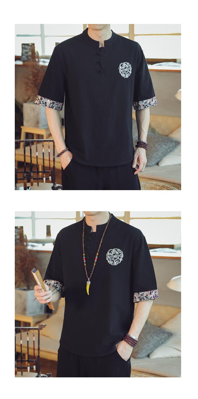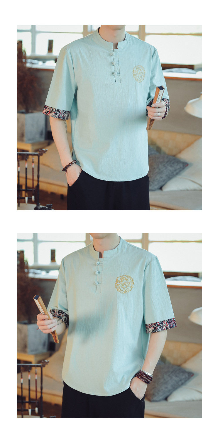 중국식 반소매 티셔츠 남성용 V 넥 솔리드 컬러 반소매 베이스 셔츠 한푸 탕 세트 남성면 내복 앤티크 남성용 여름복스토어 가기