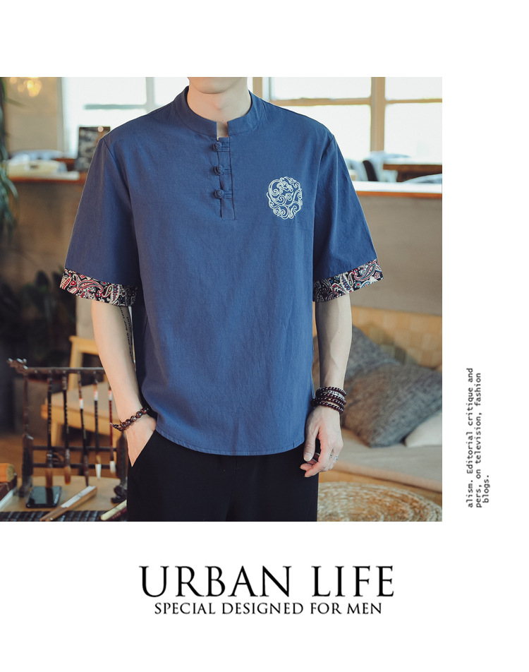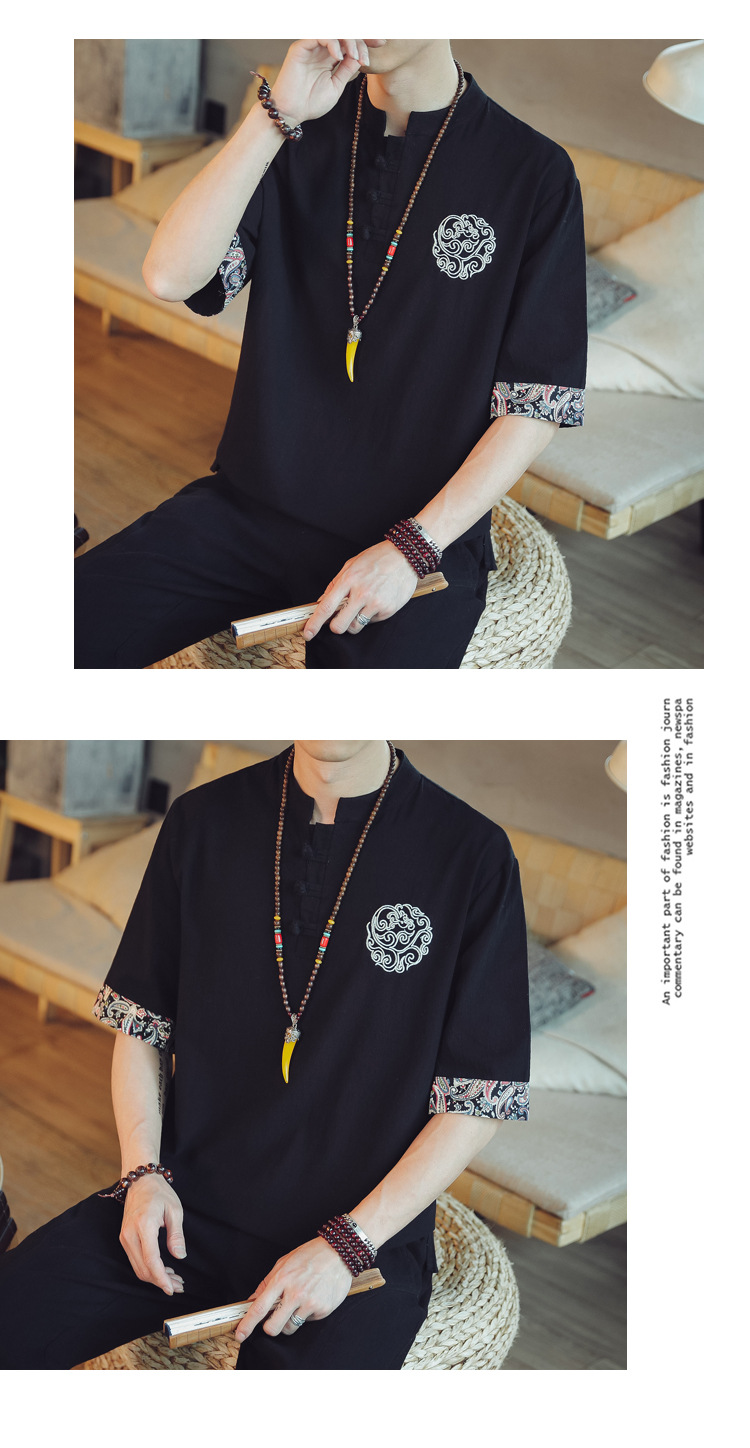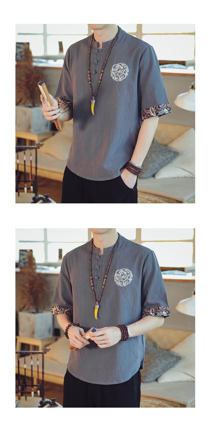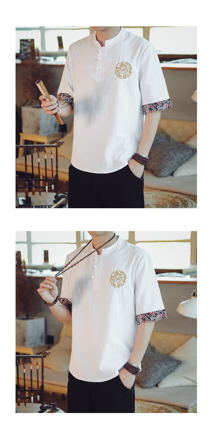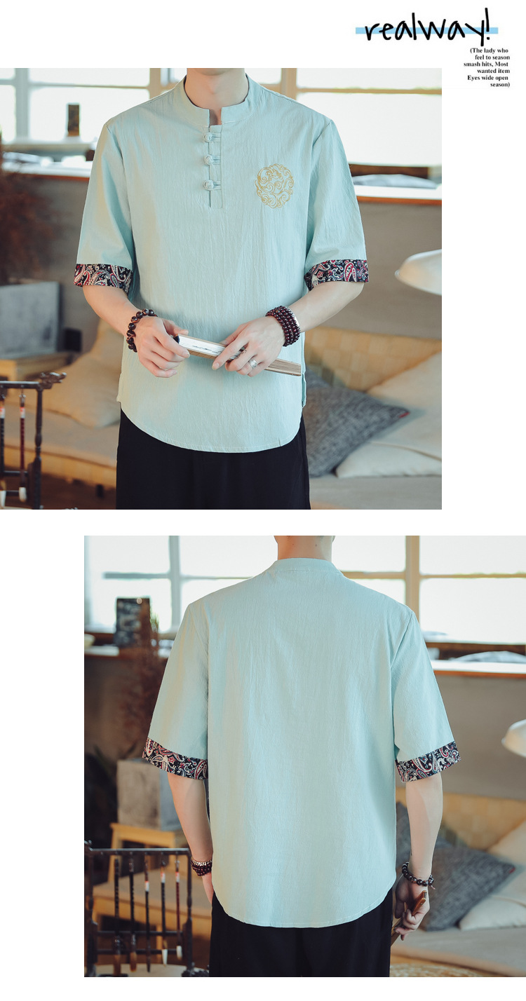 중국식 반소매 티셔츠 남성용 V 넥 솔리드 컬러 반소매 베이스 셔츠 한푸 탕 세트 남성면 내복 앤티크 남성용 여름복스토어 가기