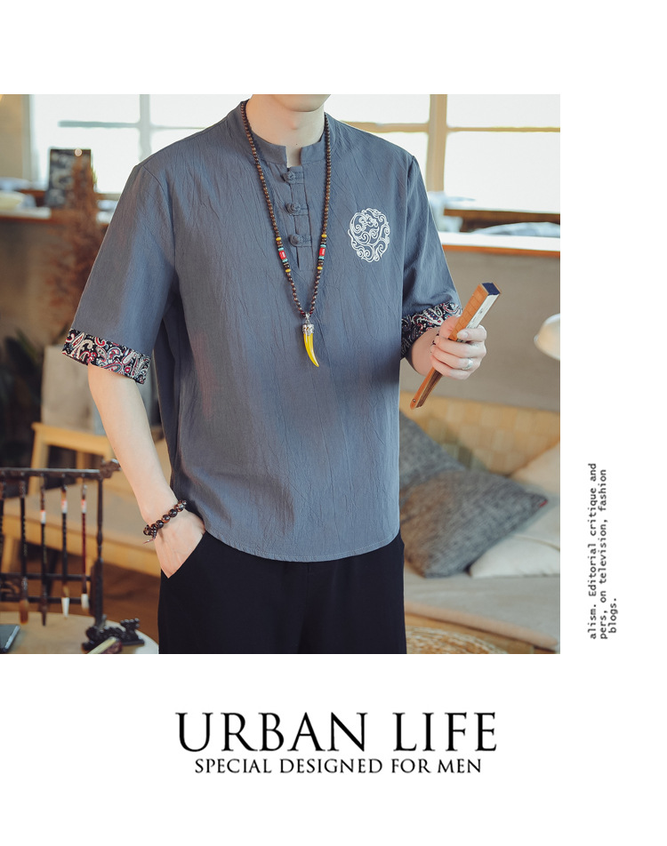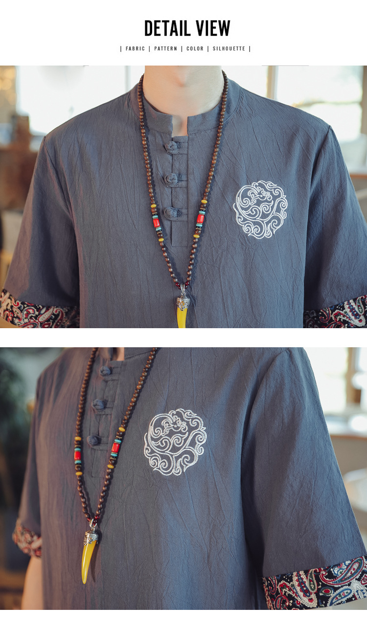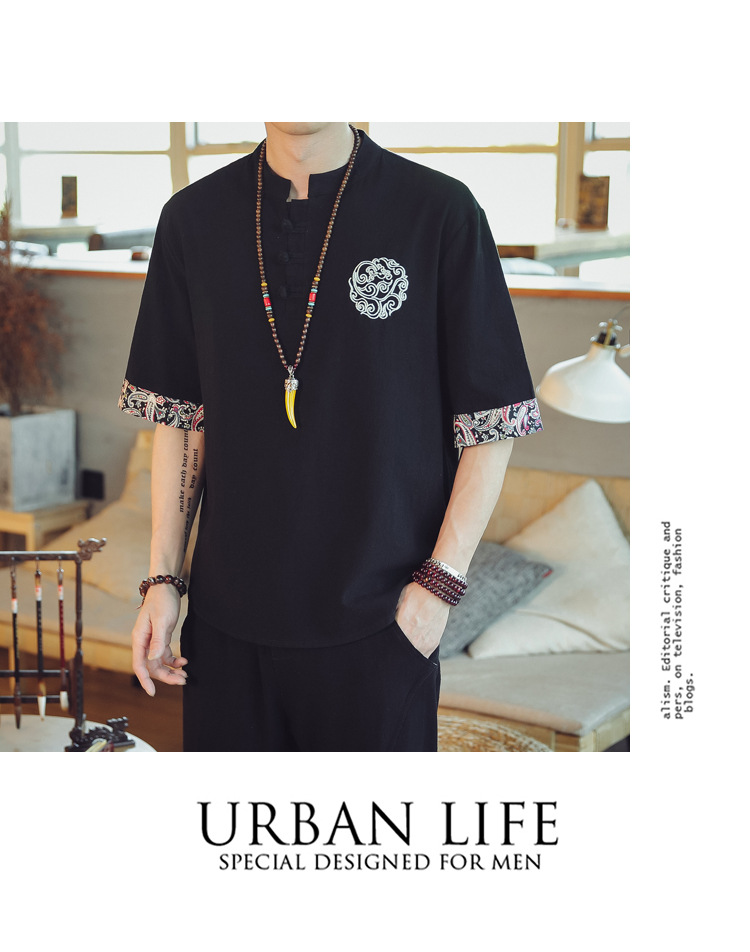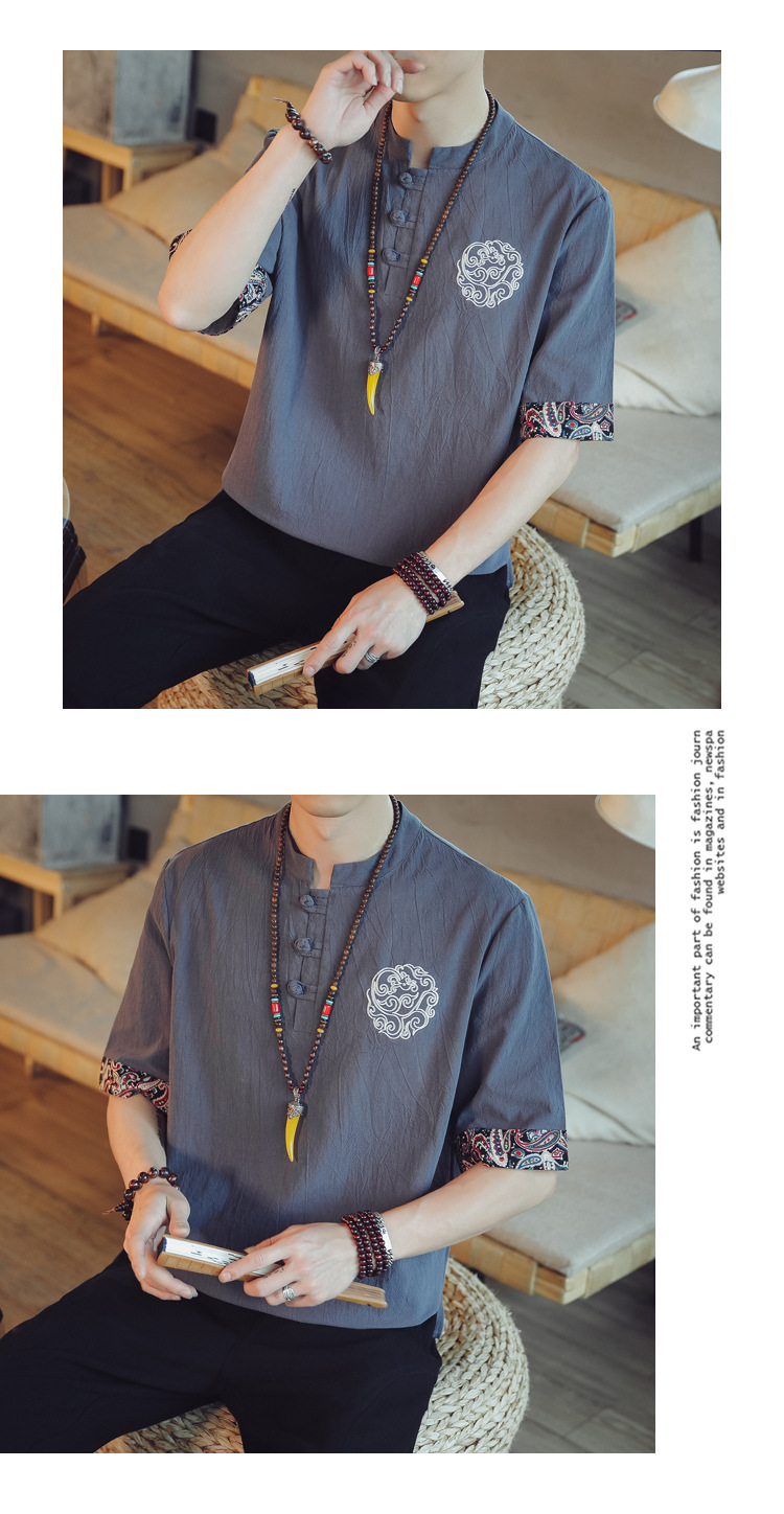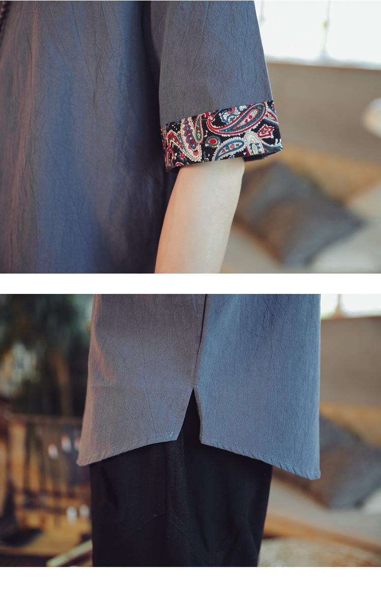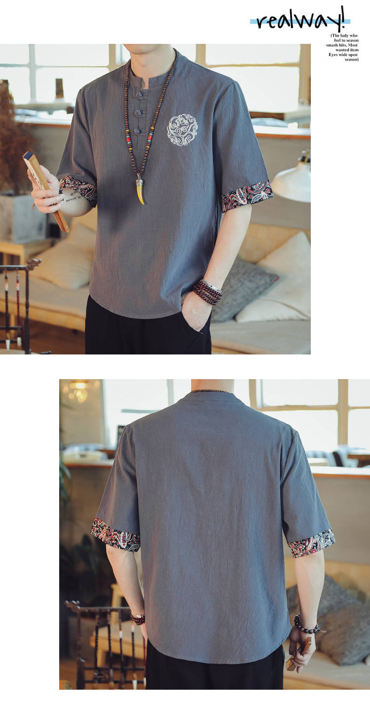 중국식 반소매 티셔츠 남성용 V 넥 솔리드 컬러 반소매 베이스 셔츠 한푸 탕 세트 남성면 내복 앤티크 남성용 여름복스토어 가기