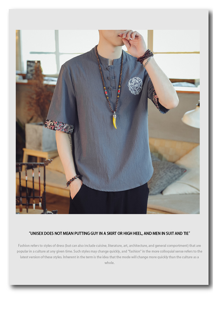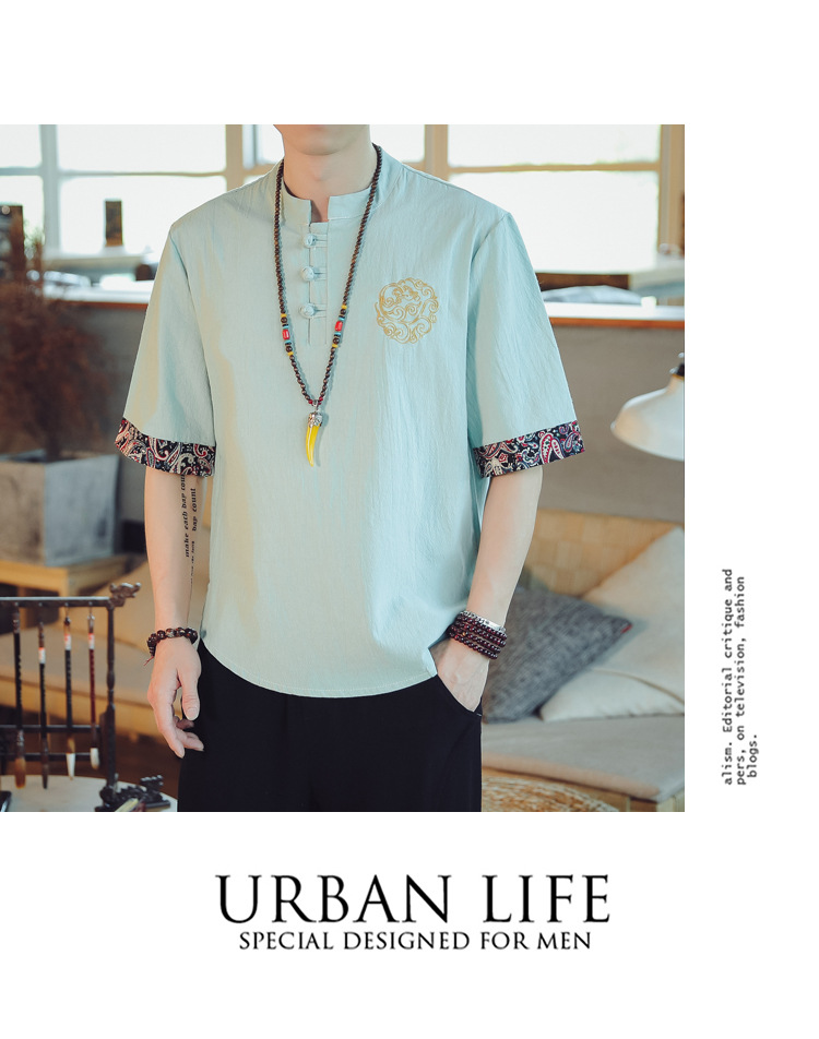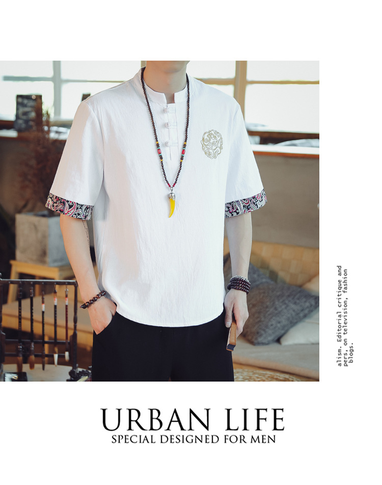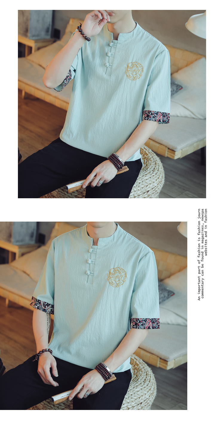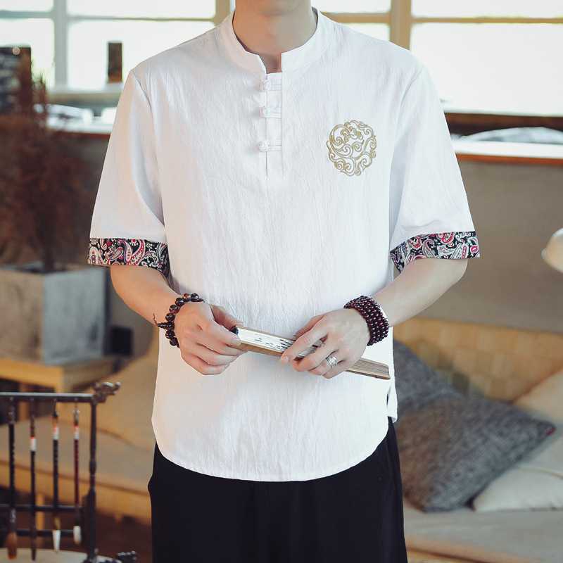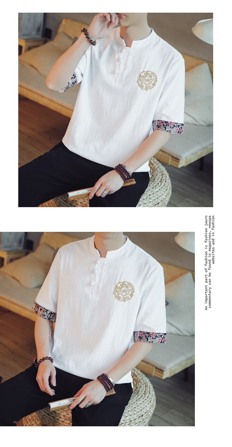 중국식 반소매 티셔츠 남성용 V 넥 솔리드 컬러 반소매 베이스 셔츠 한푸 탕 세트 남성면 내복 앤티크 남성용 여름복