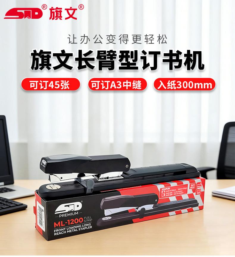 깃발 ML-1200 승마 스테이플러 사무실 무거운 긴 팔 스테이플러 두꺼운 45 페이지 중간 스티치 스테이플러