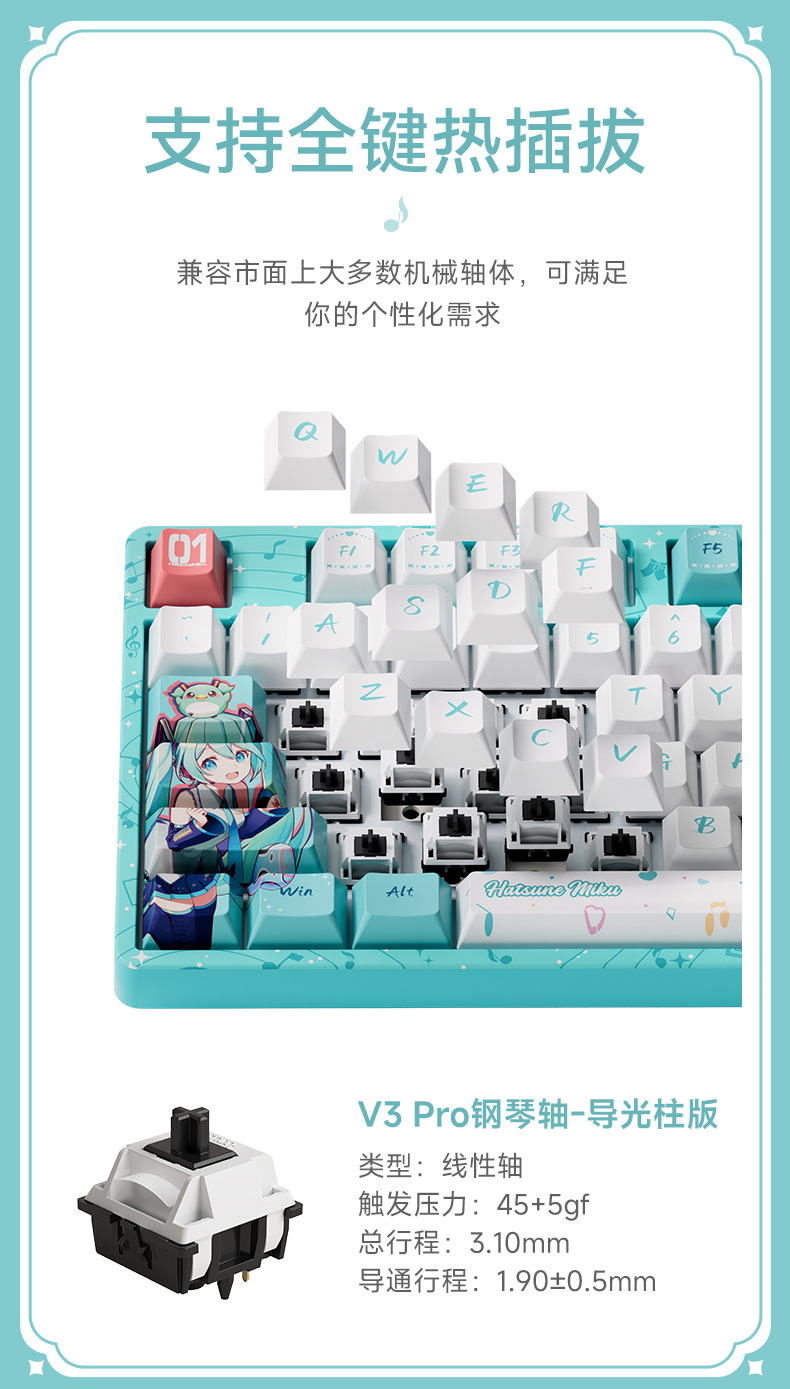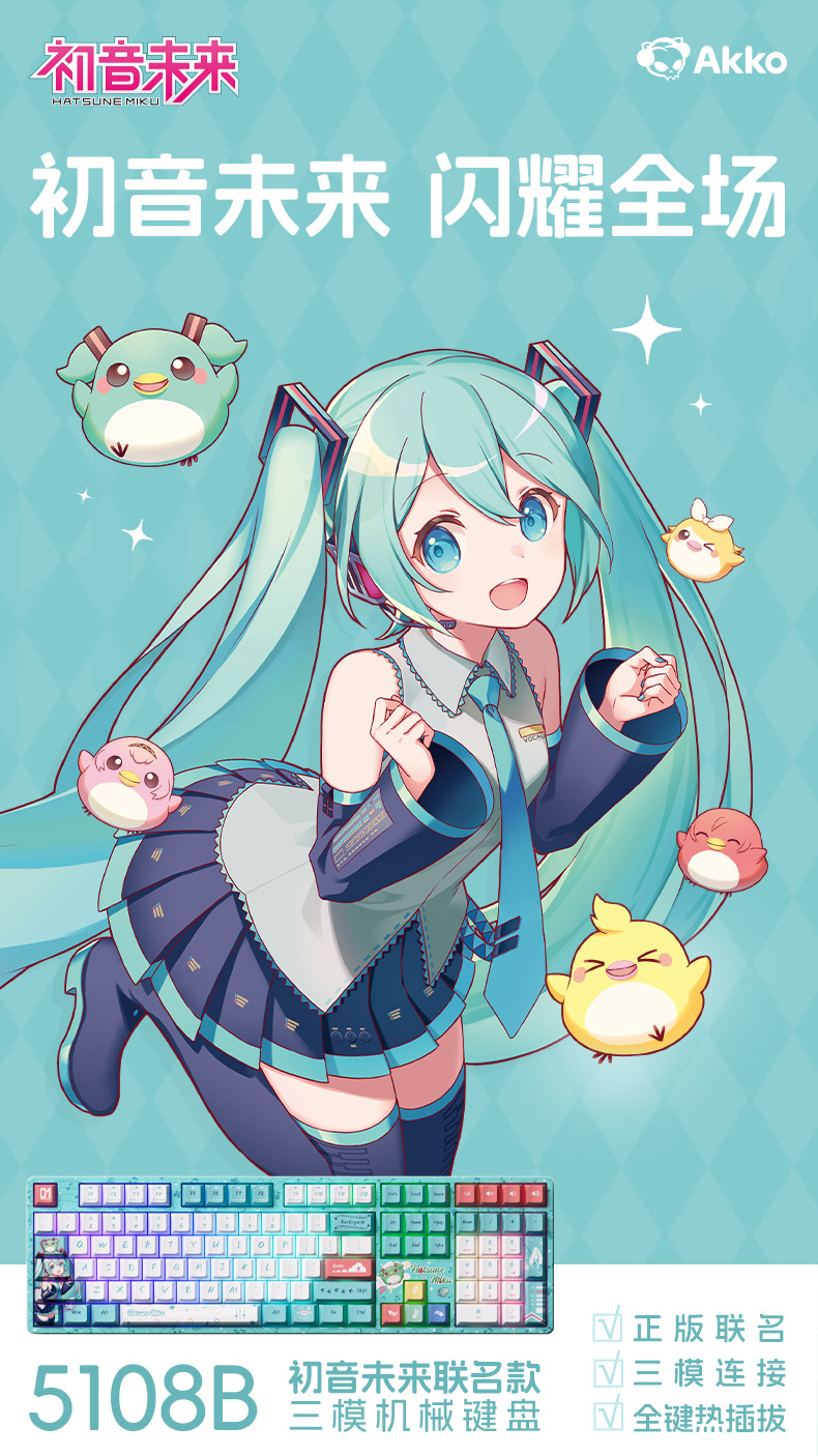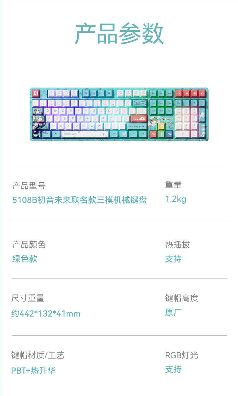 • 5108B Plus 하츠네 미쿠 3모드 키보드 - 밀크 그린 스위치
