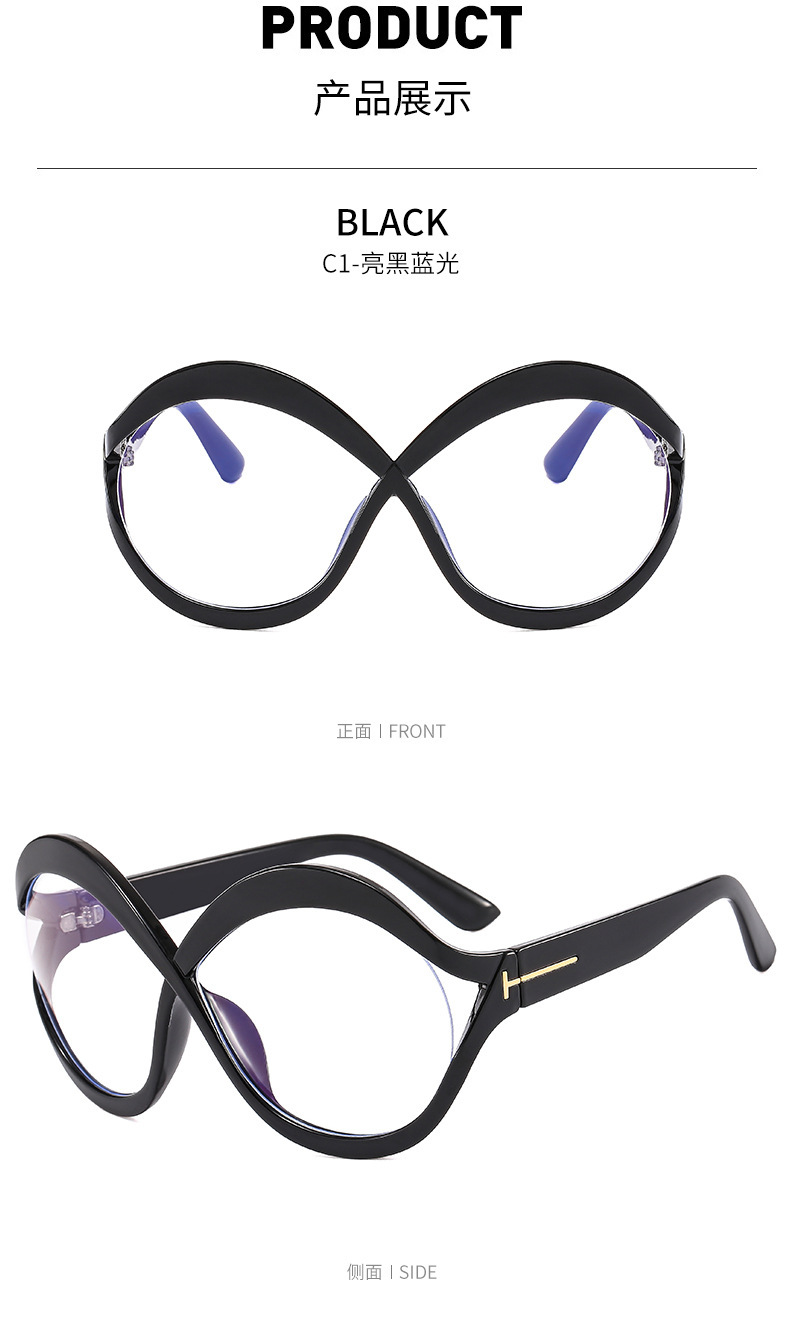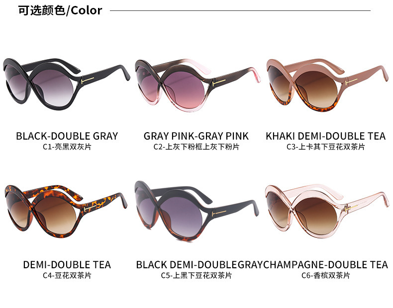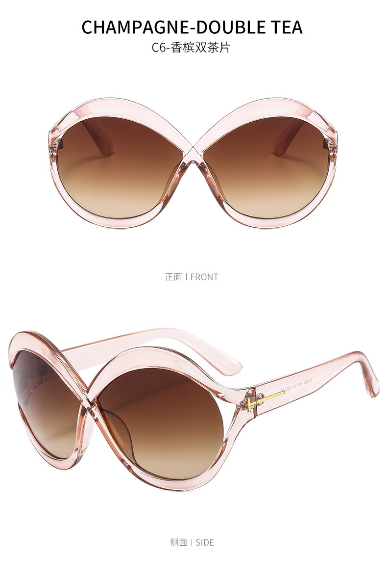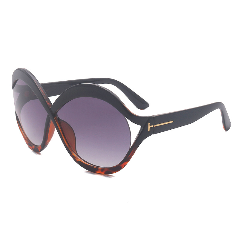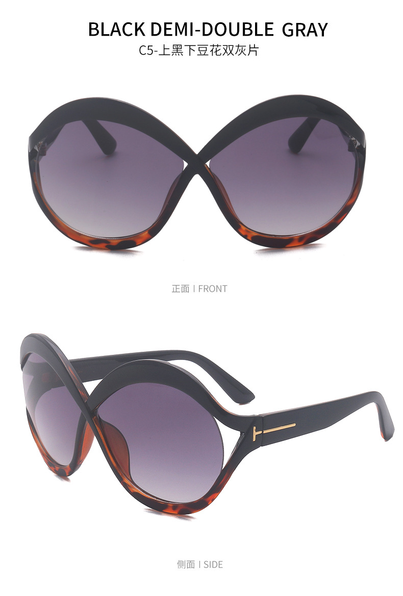 새로운 대형 프레임 T 선글라스 8 자 라운드 맞춤형 선글라스 남녀 크로스 프레임 중공 스트리트 비트 안경 크로스 국경스토어 가기