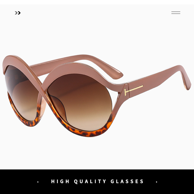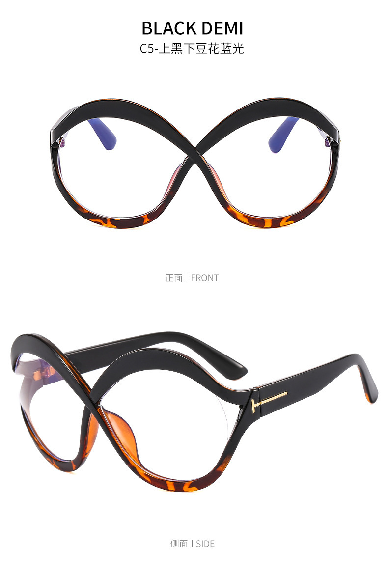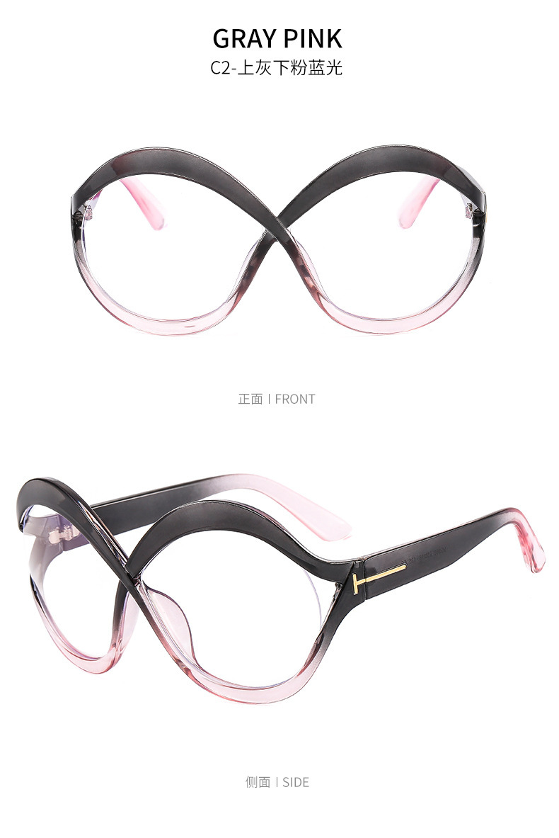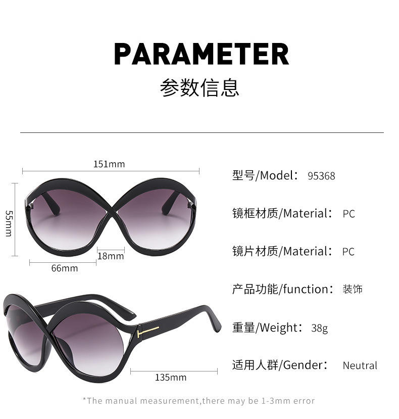 새로운 대형 프레임 T 선글라스 8 자 라운드 맞춤형 선글라스 남녀 크로스 프레임 중공 스트리트 비트 안경 크로스 국경스토어 가기