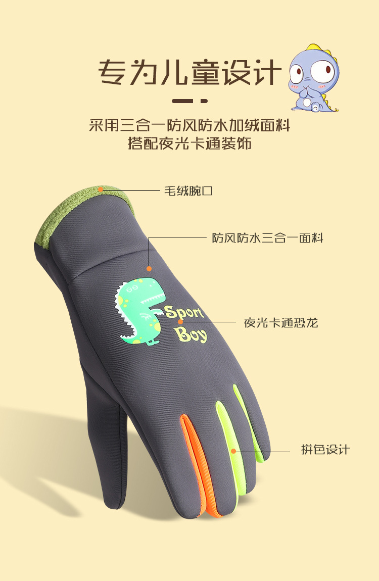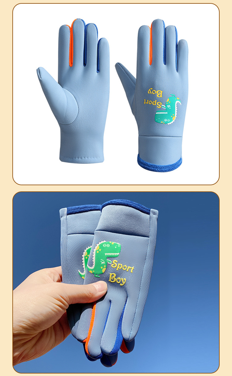 따뜻한 초등학교 소년 소녀 두꺼운 자전거 방수 귀여운 야외 눈을 기모 어린이 가을과 겨울 장갑스토어 가기