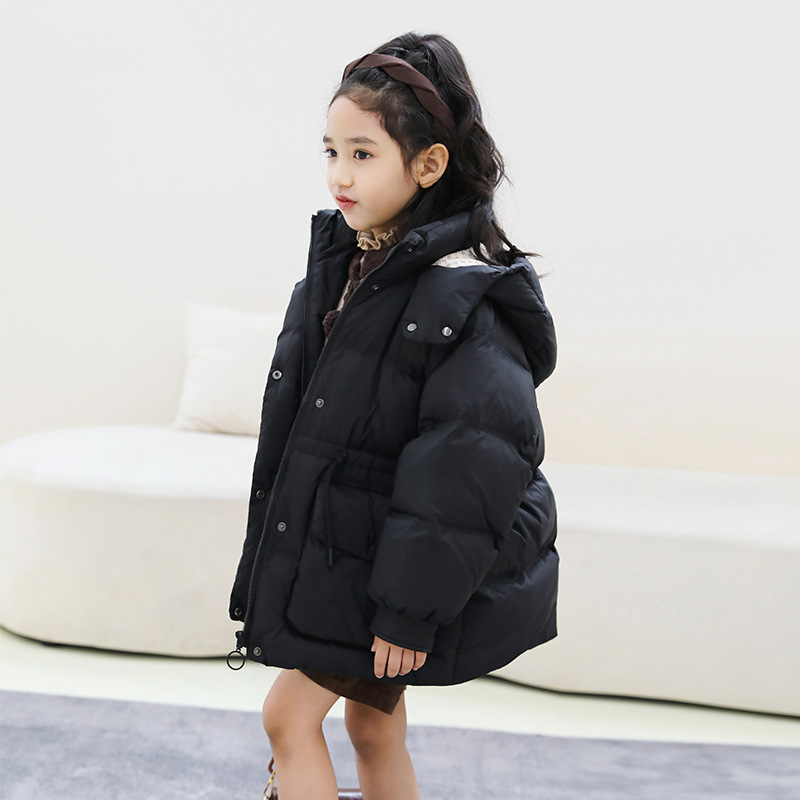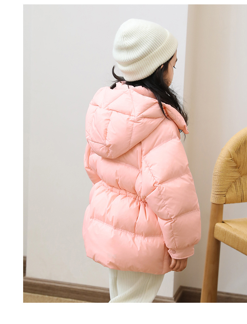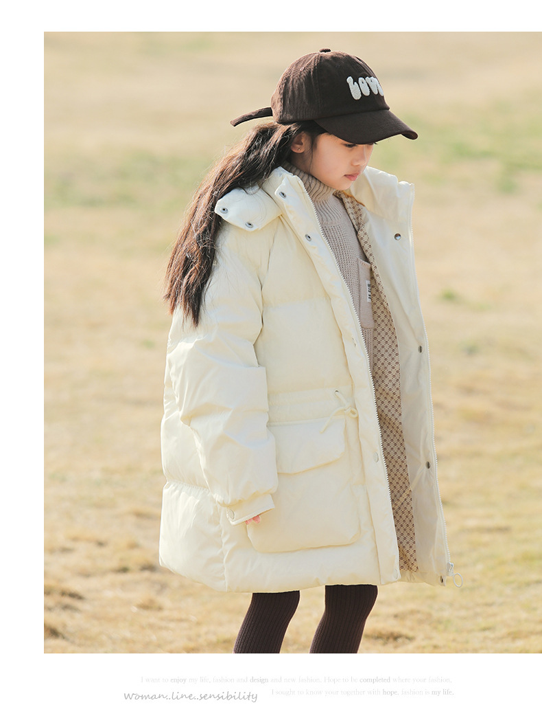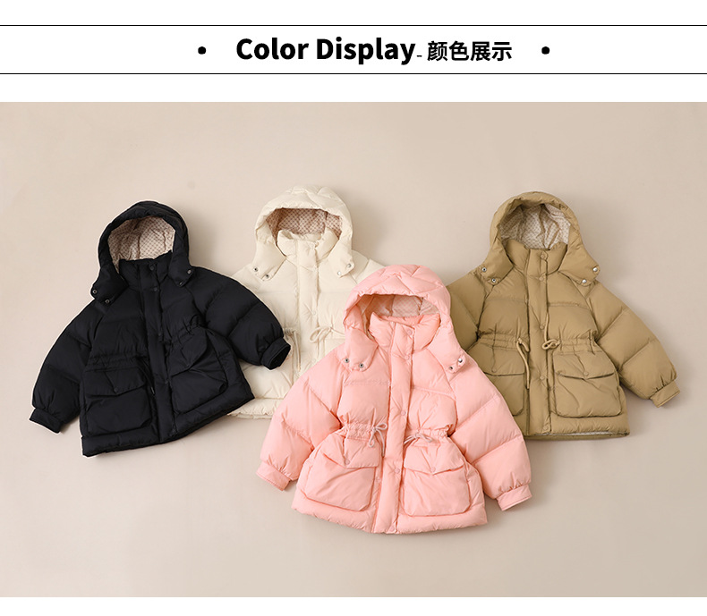 어린이 다운 재킷 소녀 중 및 긴 2024 새로운 아기의 다운 재킷 작고 중간 어린이의 두꺼운 겨울 90 벨벳 2305