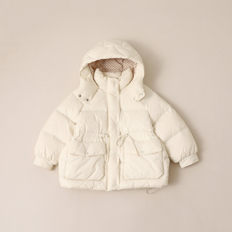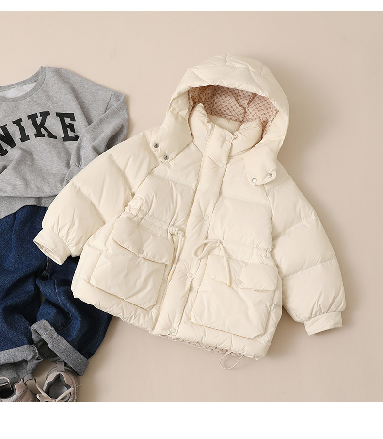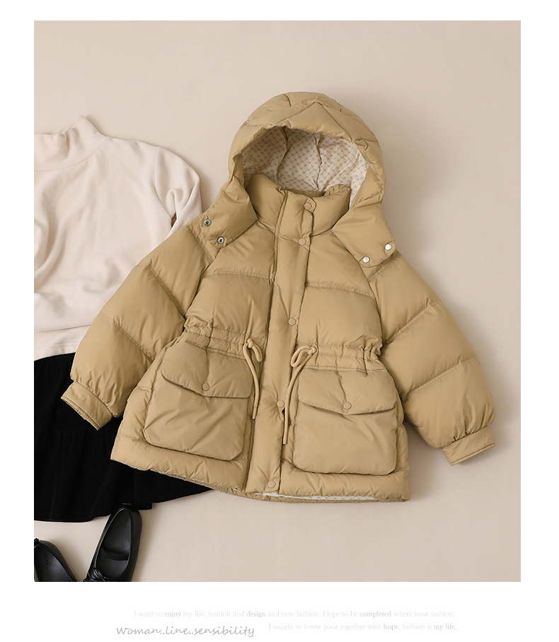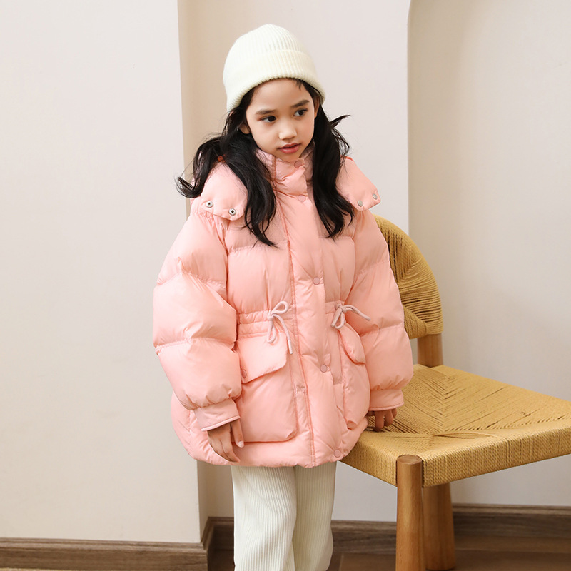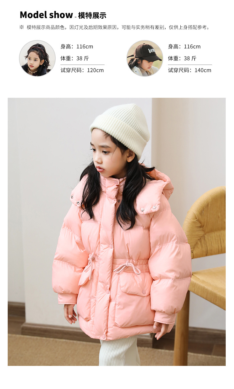 어린이 다운 재킷 소녀 중 및 긴 2024 새로운 아기의 다운 재킷 작고 중간 어린이의 두꺼운 겨울 90 벨벳 2305
