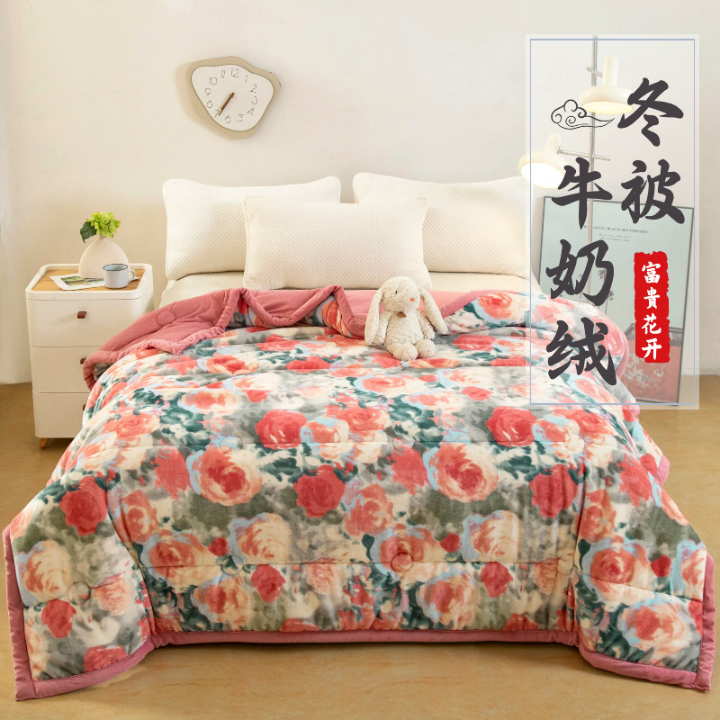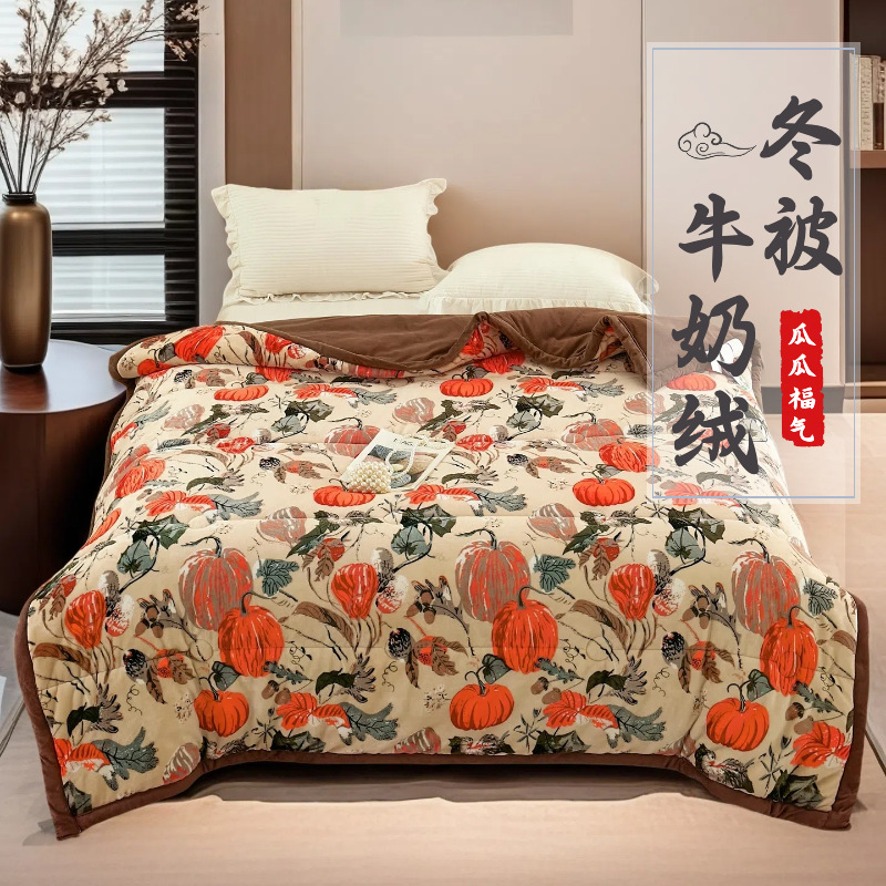 2025년 라이브 방송 인기 상품 가을 겨울 신상품 밀크 벨벳 프린트 겨울 이불 양면 두꺼운 보온성 프렌치 벨벳 침대 시트 이불