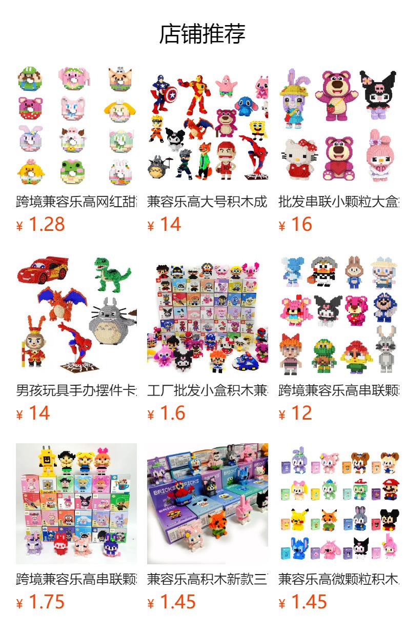 공장 도매 마블 조립 빌딩 블록 레고 작은 입자 애니메이션 핸드 헬드 인형 장식품 크로스 보더 핫 세일과 호환스토어 가기