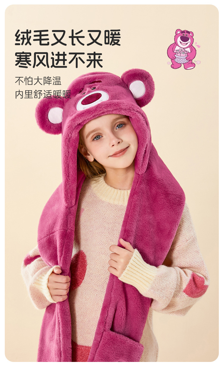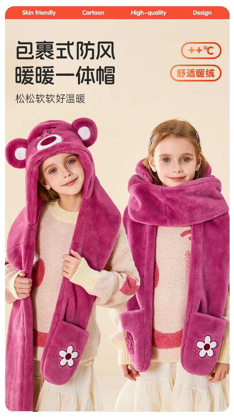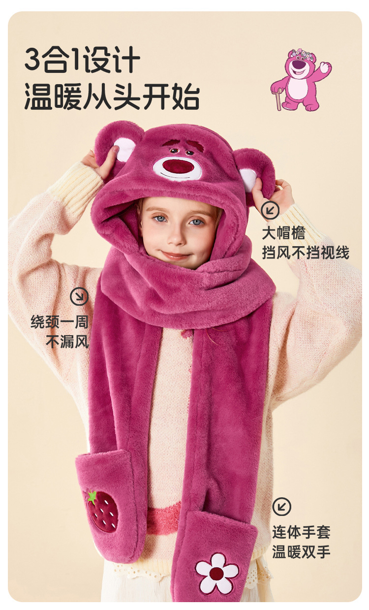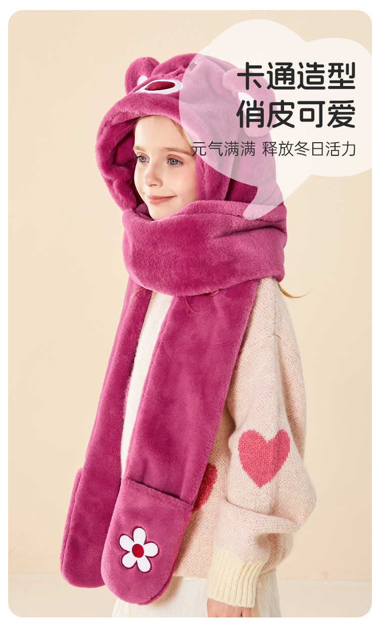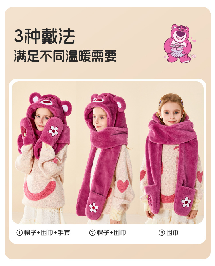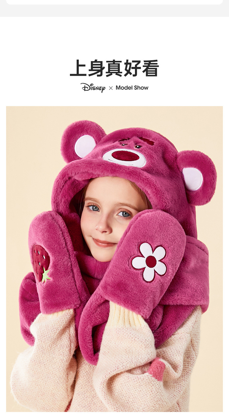딸기 곰 소녀 봉제 스카프 장갑 모자 24 겨울 어린이 따뜻한 목 장갑 귀 보호 모자스토어 가기