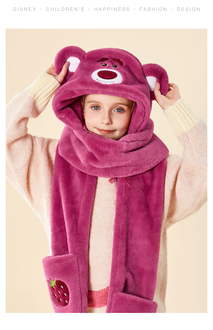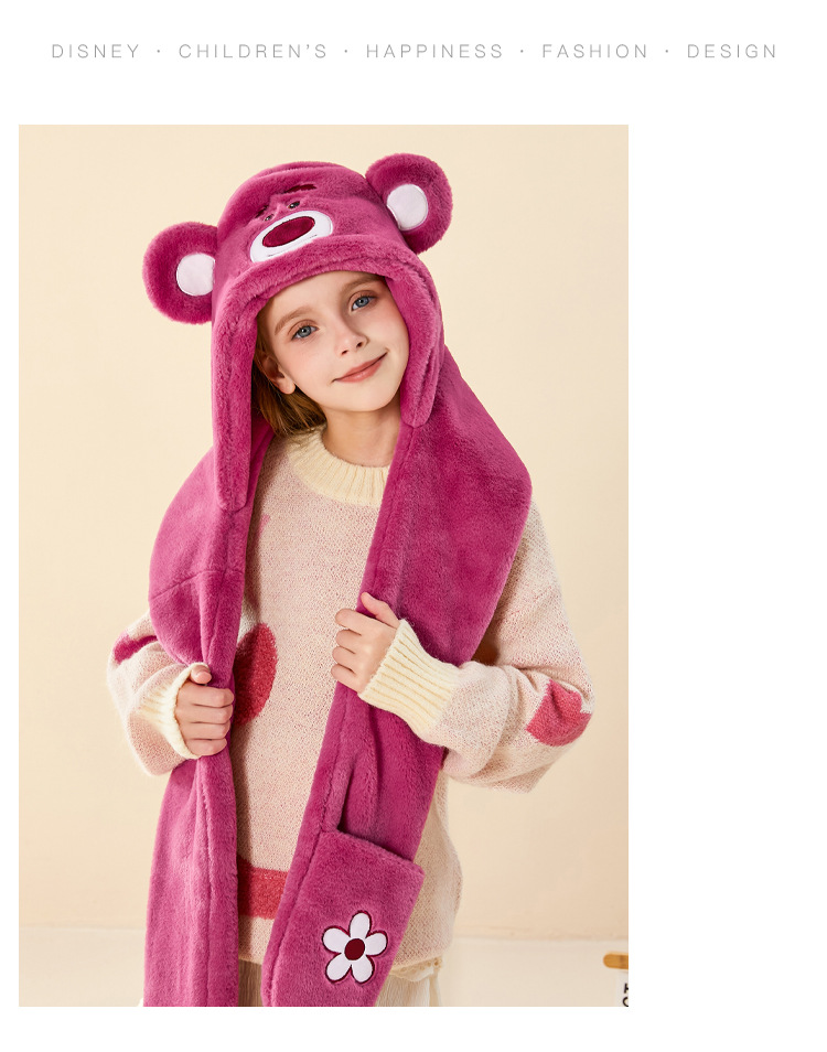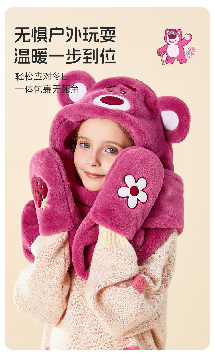 딸기 곰 소녀 봉제 스카프 장갑 모자 24 겨울 어린이 따뜻한 목 장갑 귀 보호 모자