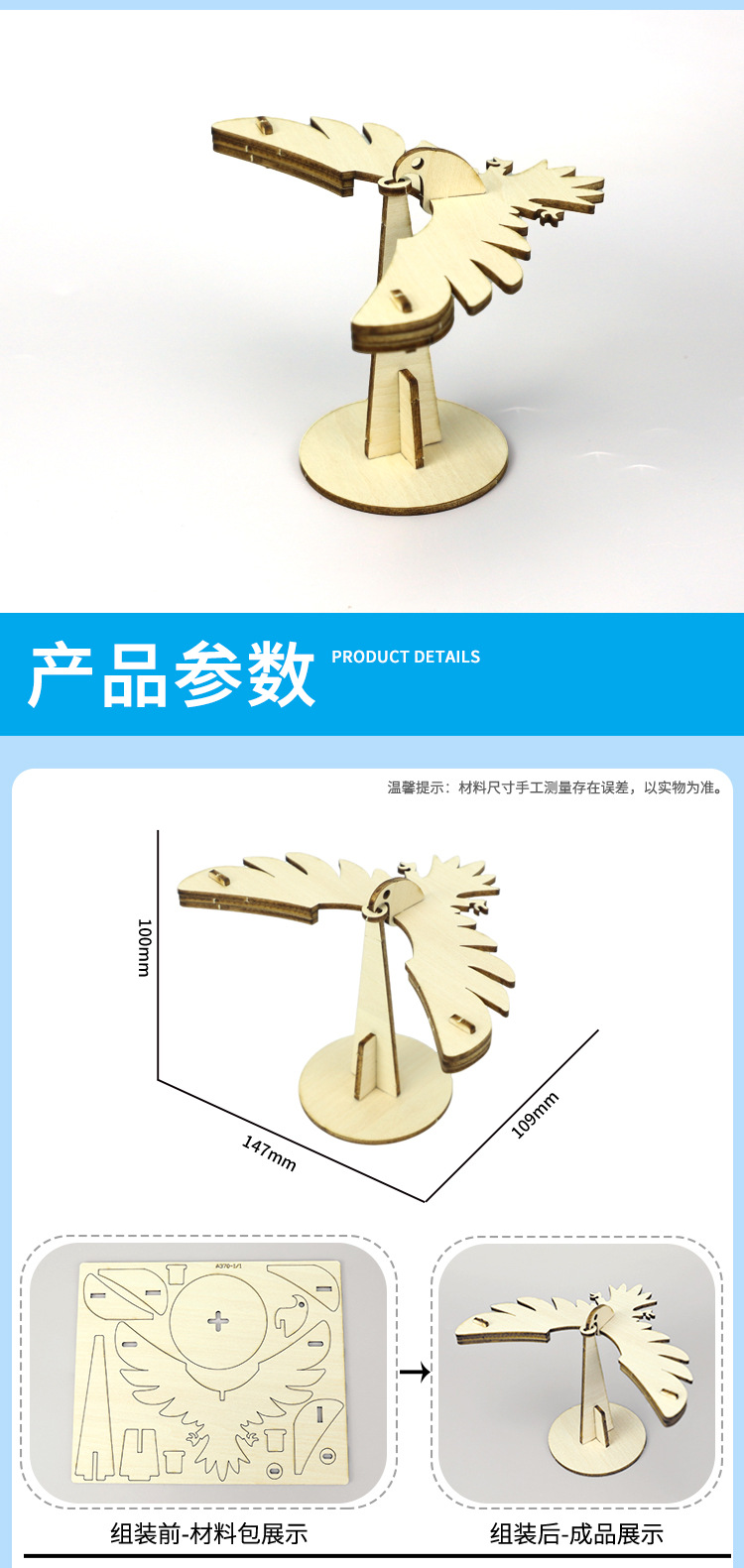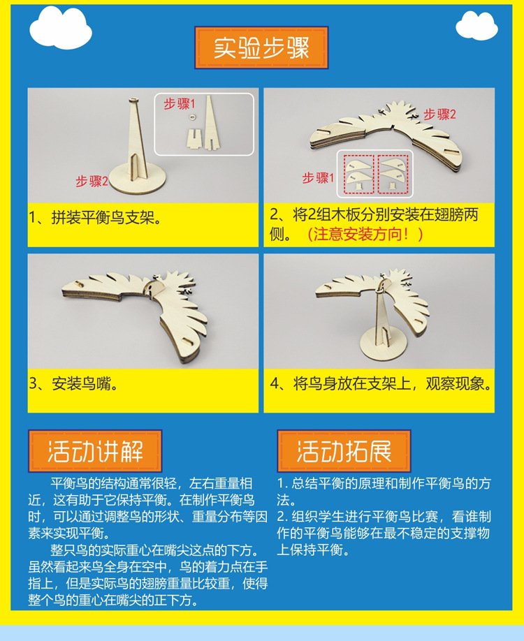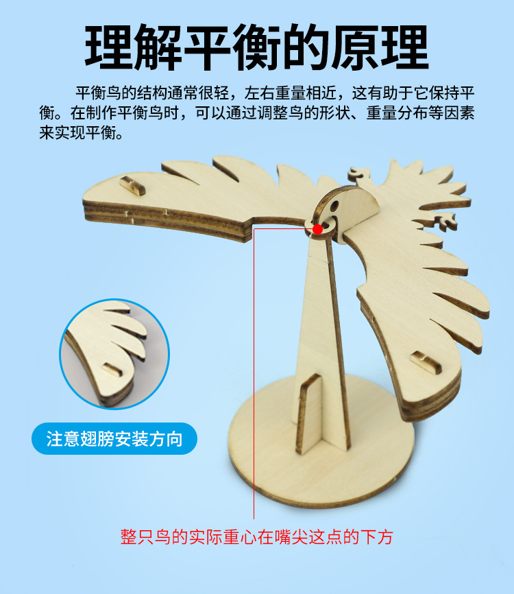 DIY 균형 새 모델 기술 작은 생산 중력 독수리 과학 장난감 나무 손으로 조립 모델 재료스토어 가기