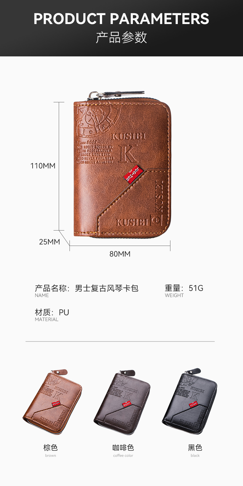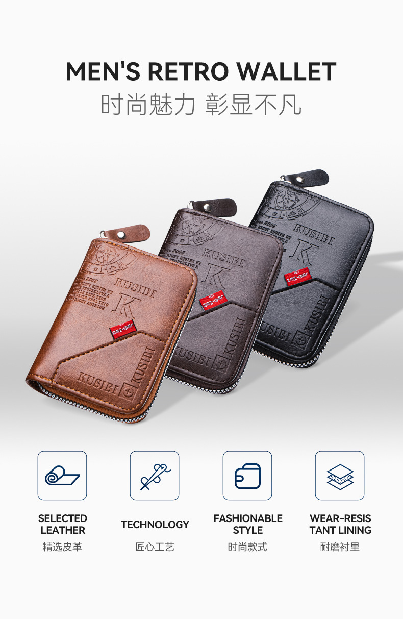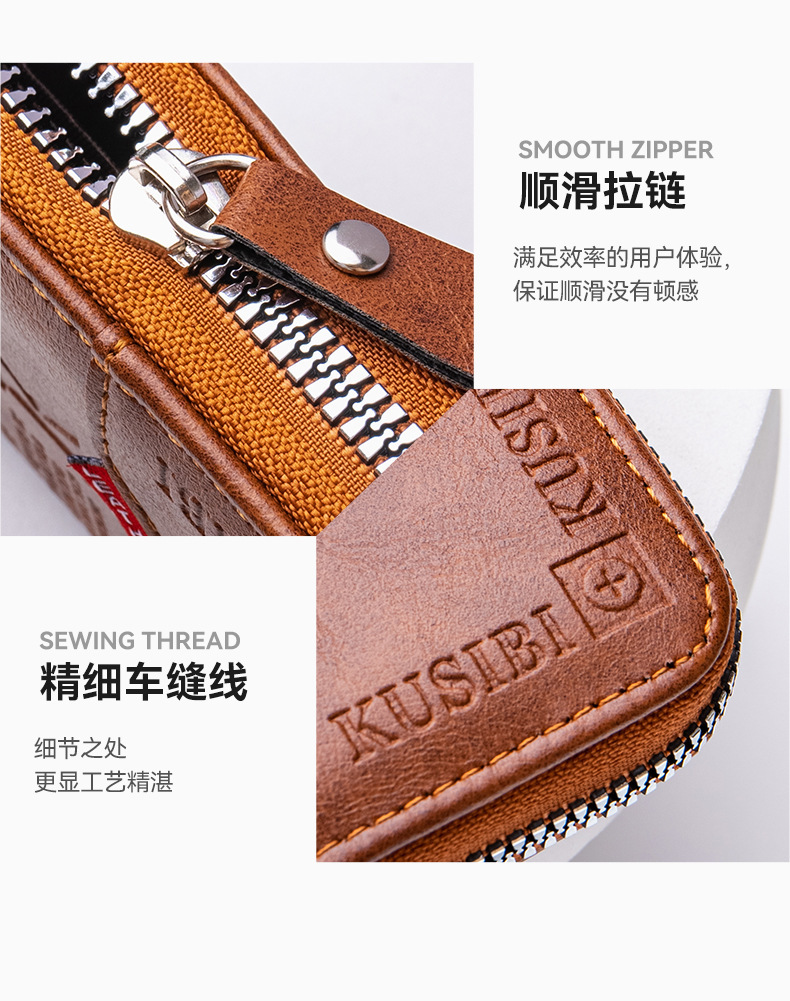 국경 간 남성 장기 카드 가방 정품 가죽 섬유 ID 가방 지퍼 레트로 한국 스타일 유행 남성 지갑스토어 가기