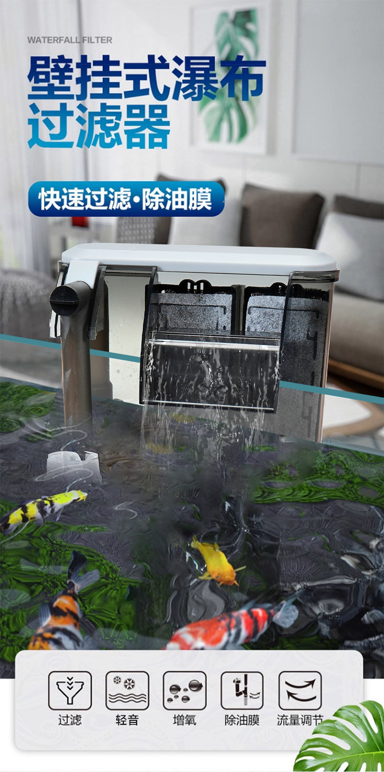 어항 필터 생태 어항 산소 공급 여과 시스템 수족관 거북이 탱크 외부 기름 제거 막 폭포 필터스토어 가기
