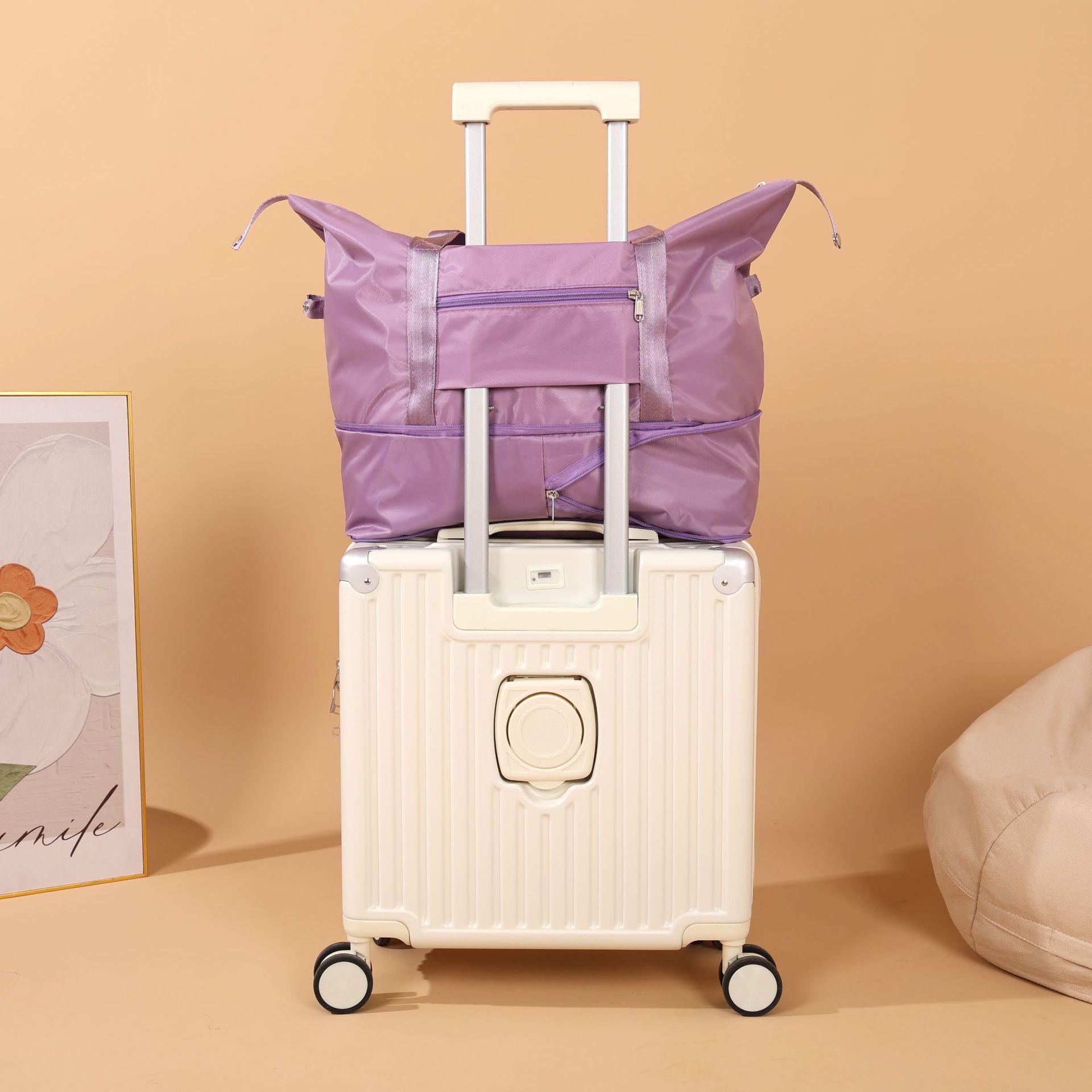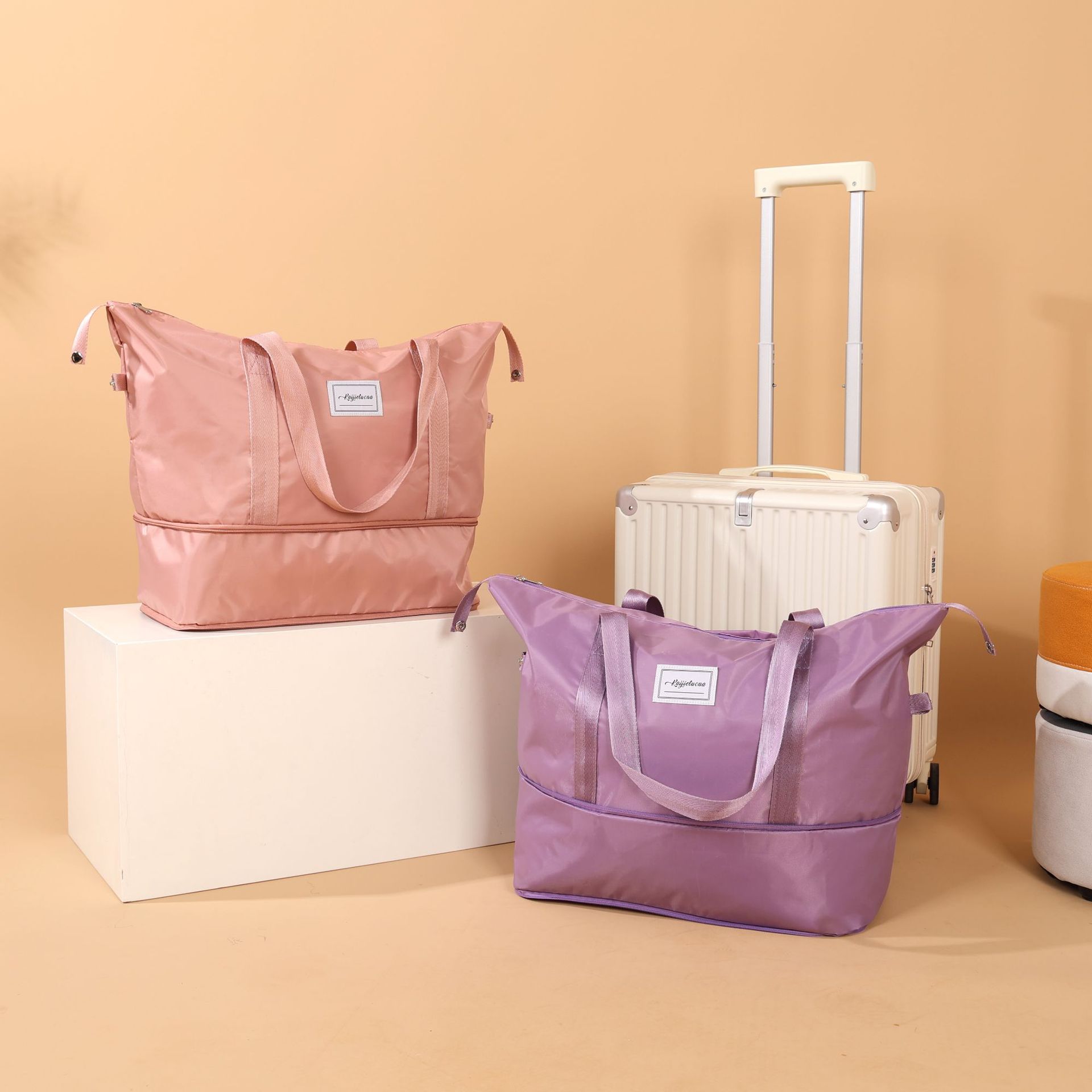 공장 도매 재고 옥스포드 천 pvc 여행 가방 생산 저장 가방 다기능 세트 트롤리 케이스 확장 가방