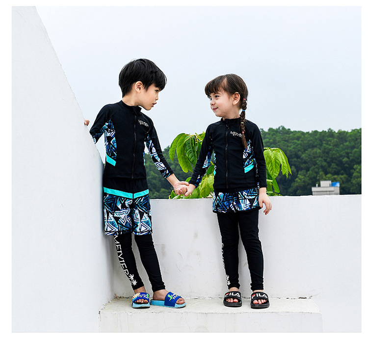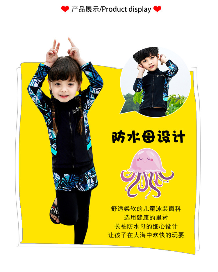 2024 어린이 수영복 큰 어린이 분할 수영복 남자 긴 소매 바지 큰 어린이 여자 수영복 해파리 다이빙 세트스토어 가기