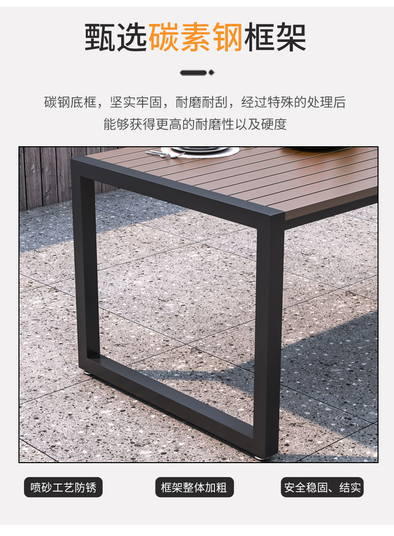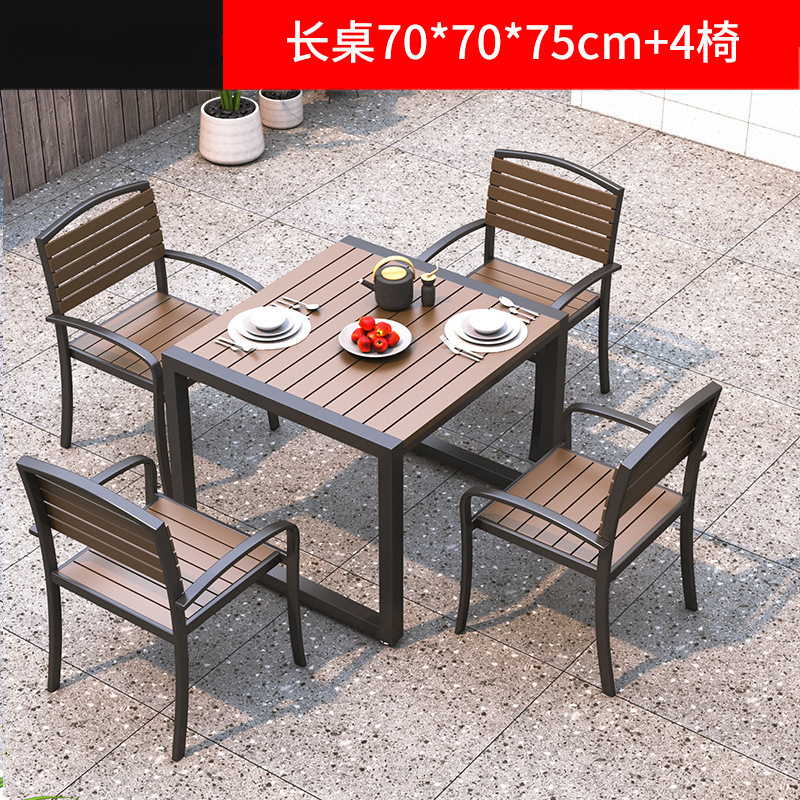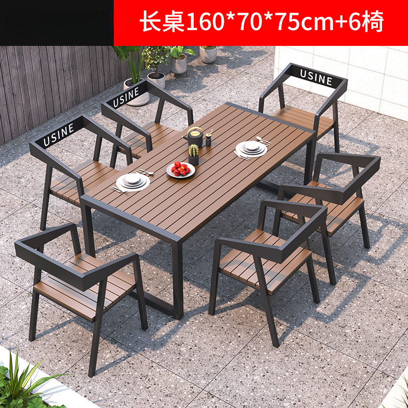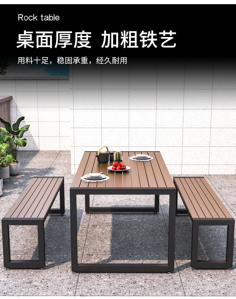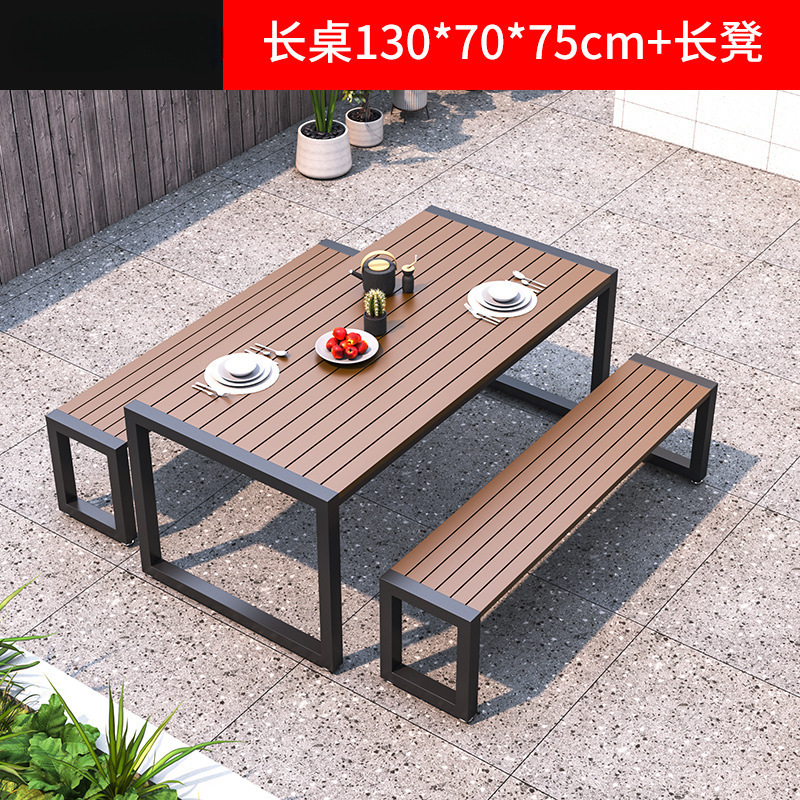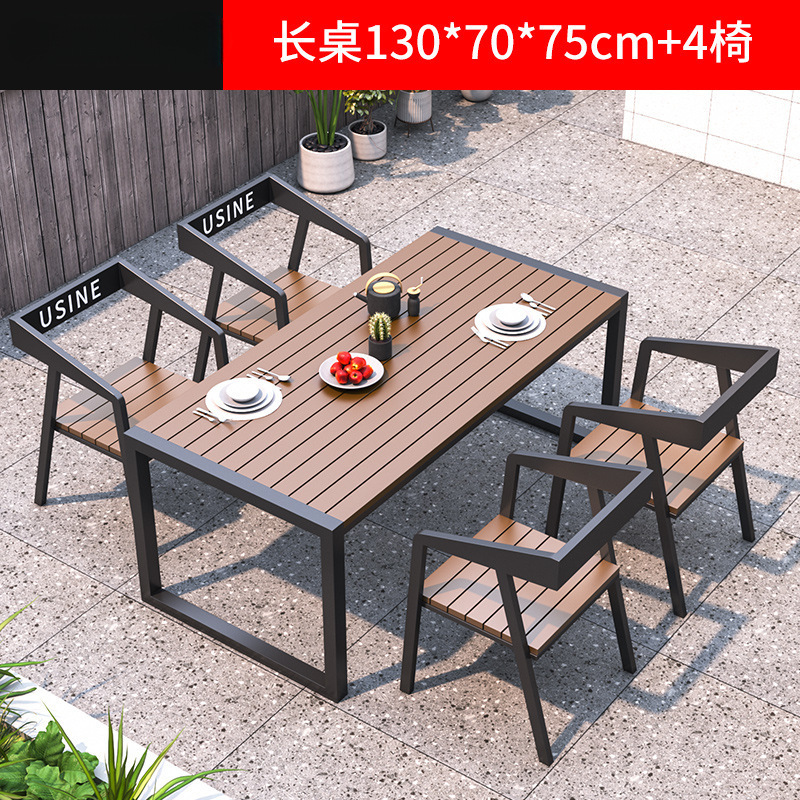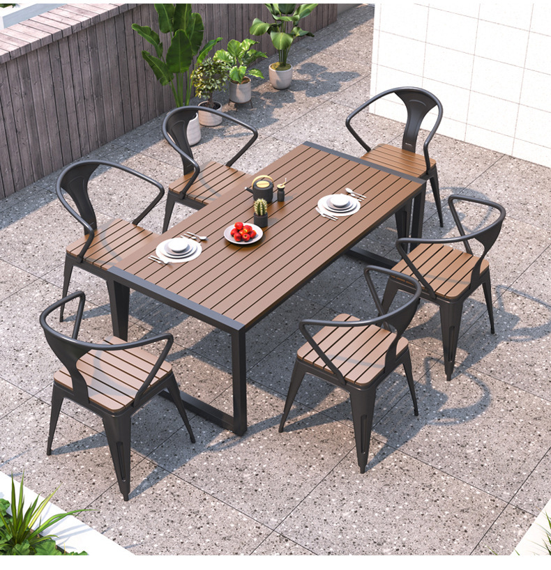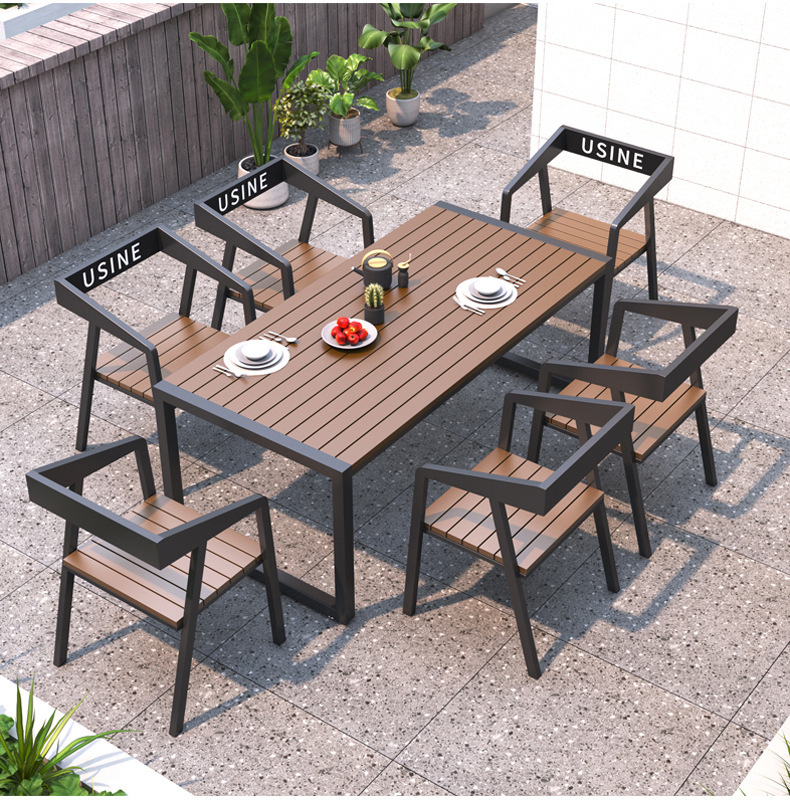 공원 레저 발코니 철 플라스틱 목재 바베큐 테이블과 의자 조합 야외 안뜰 테이블과 의자 야외 방수 선 스크린 다이닝 테이블