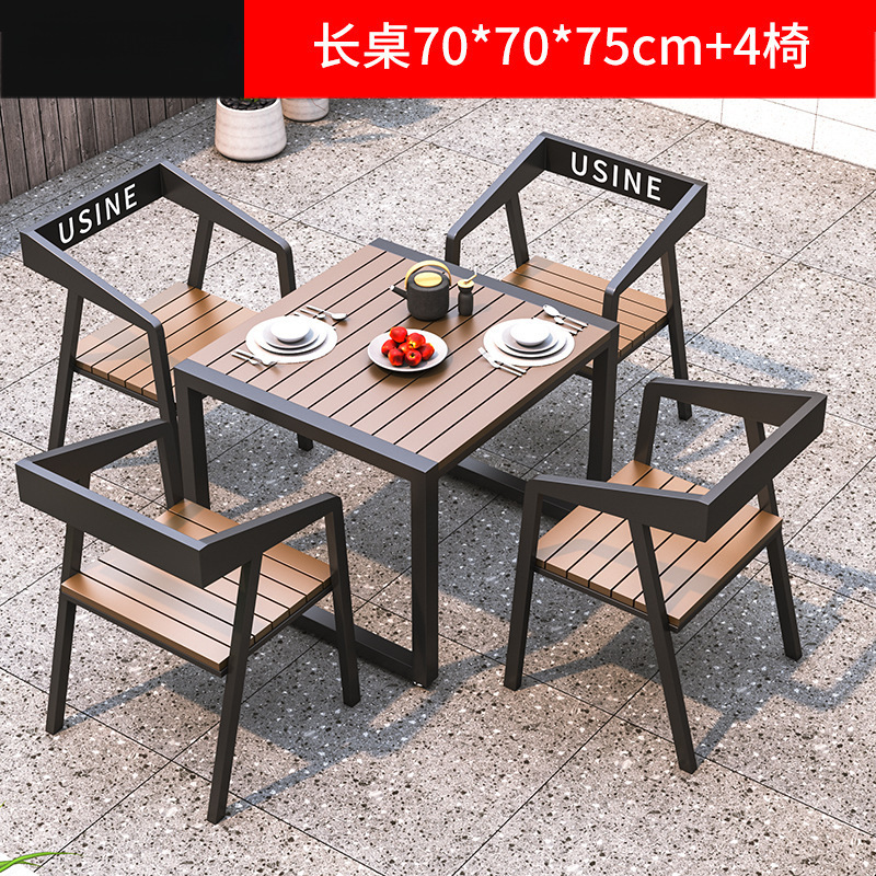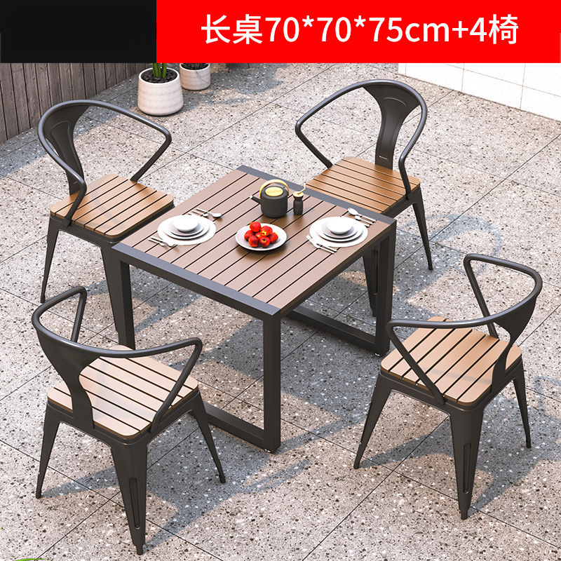 공원 레저 발코니 철 플라스틱 목재 바베큐 테이블과 의자 조합 야외 안뜰 테이블과 의자 야외 방수 선 스크린 다이닝 테이블스토어 가기