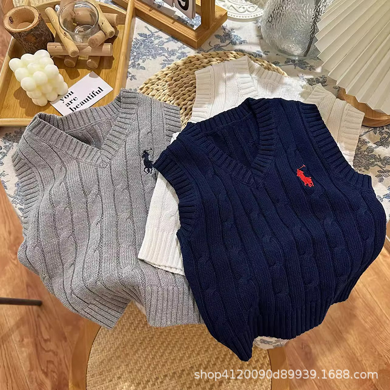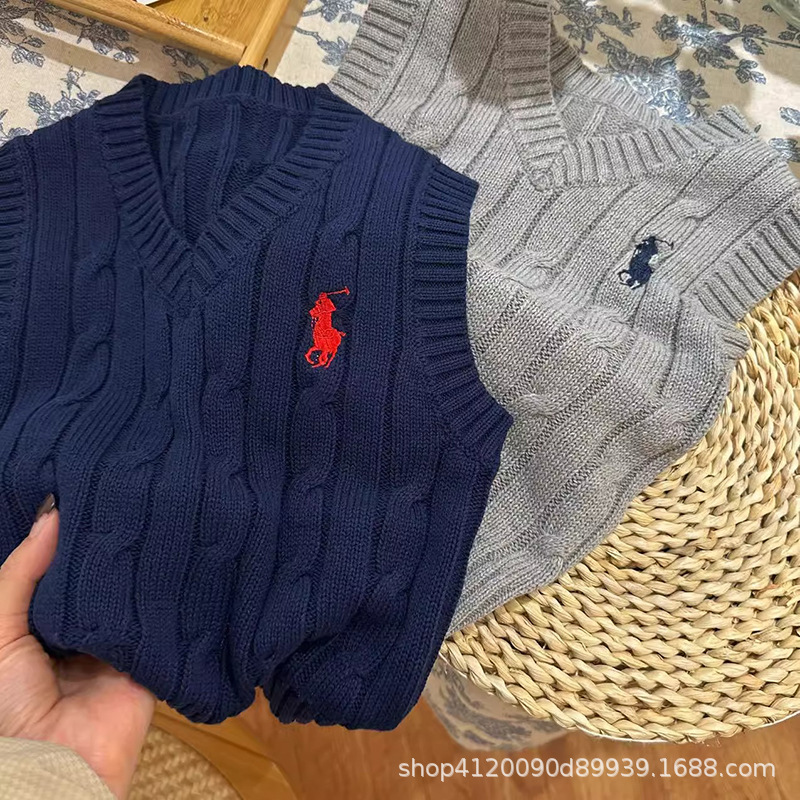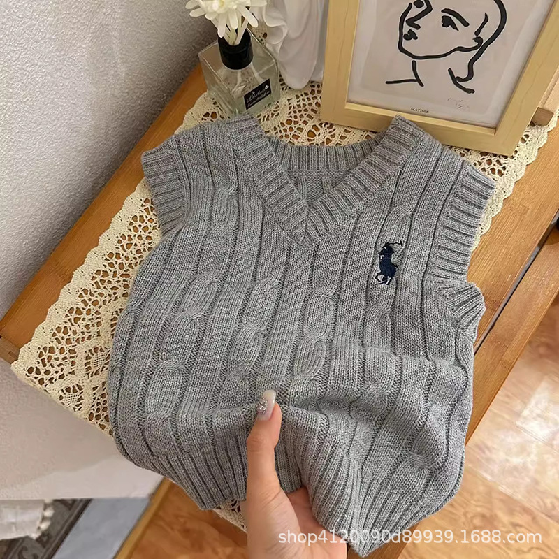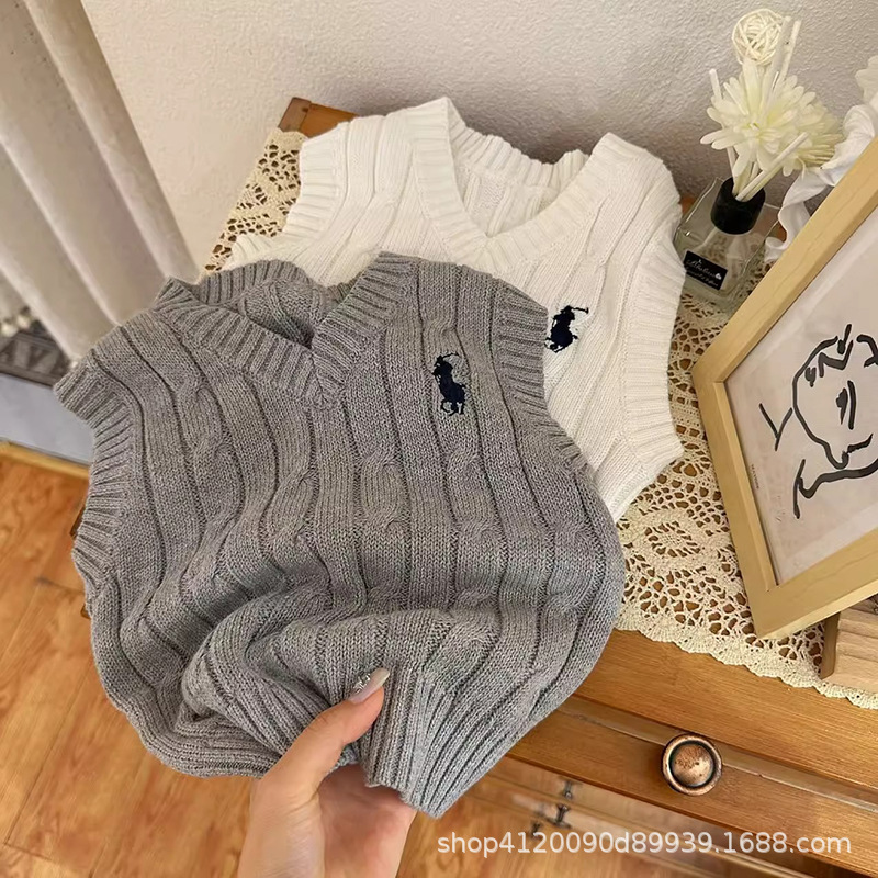 국경 간 어린이 조끼 가을 잘 생긴 소년의 트위스트 니트 조끼 아기의 봄 원피스 소녀의 자수 스웨터 조끼