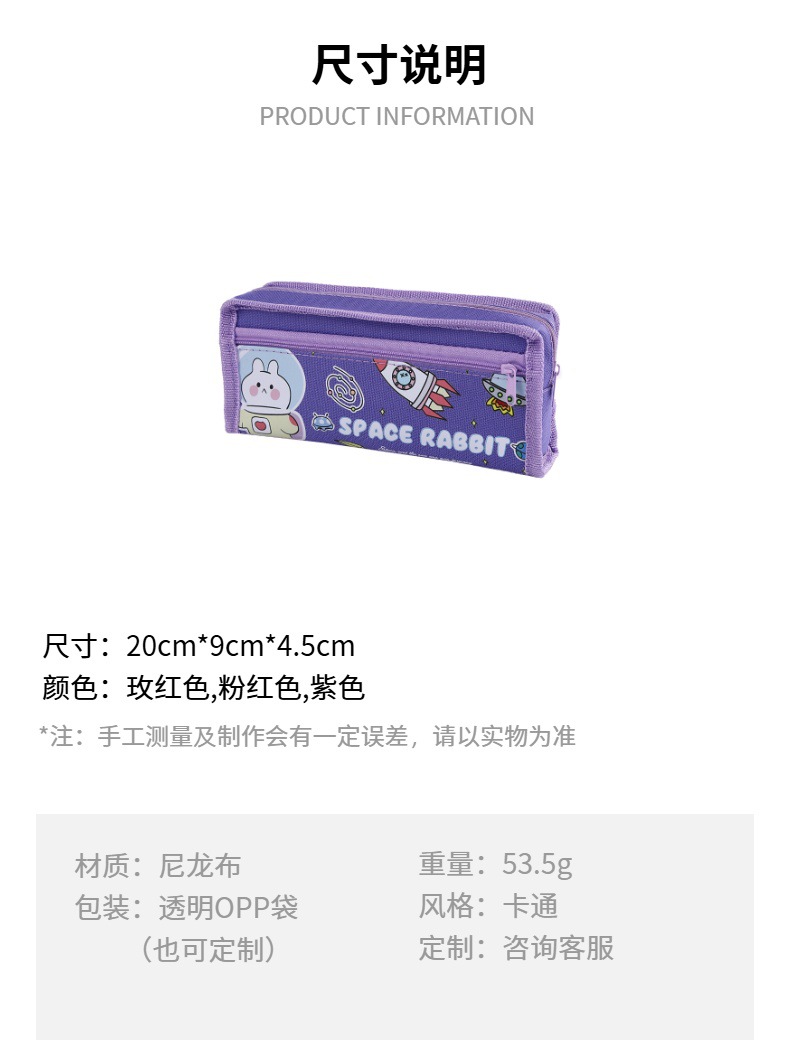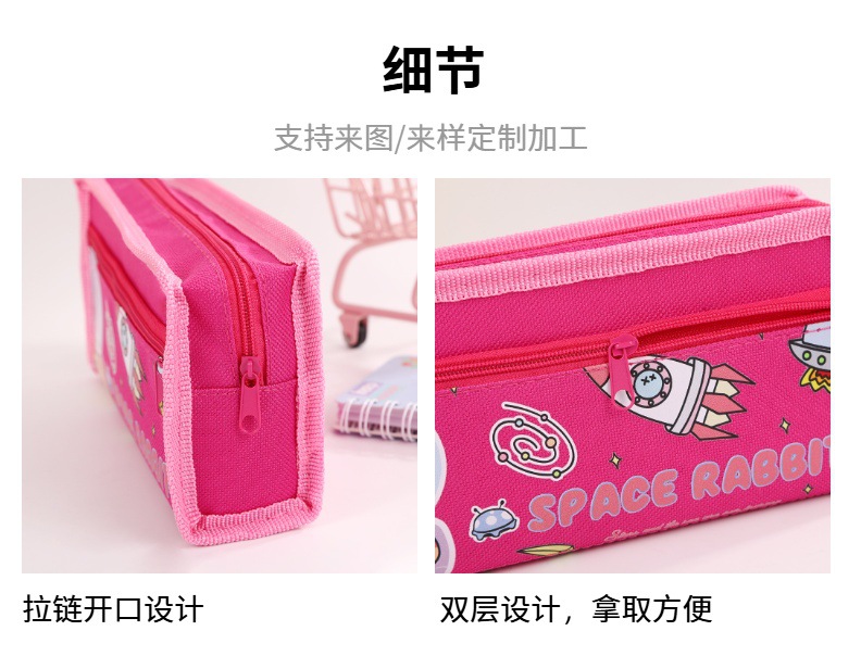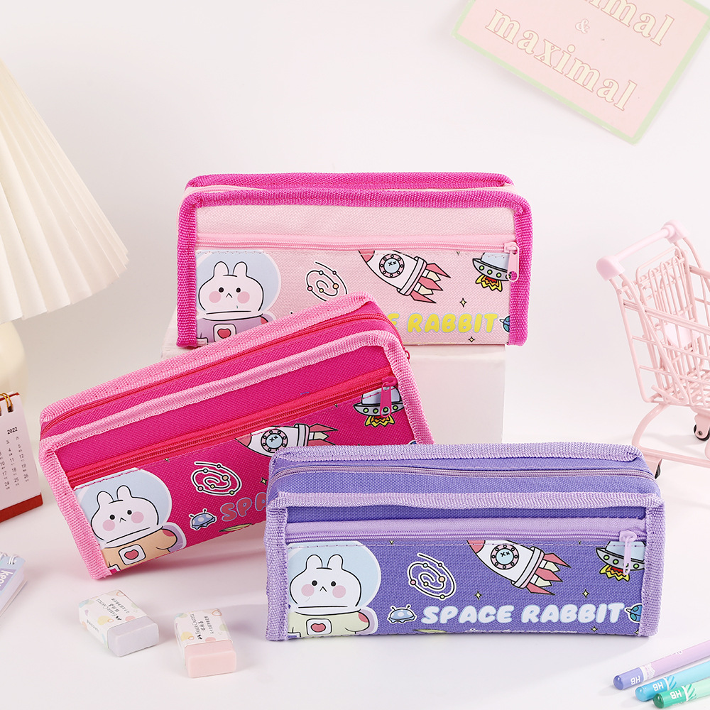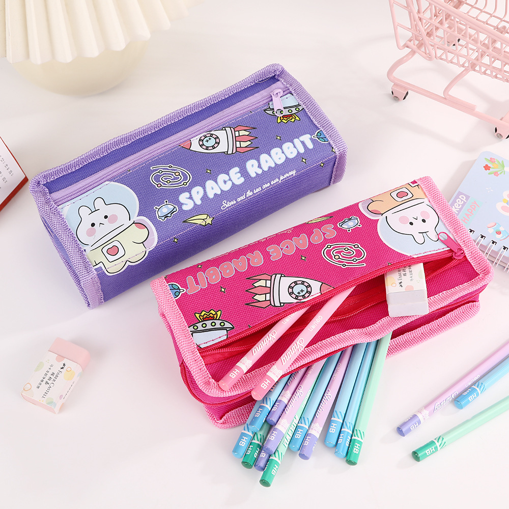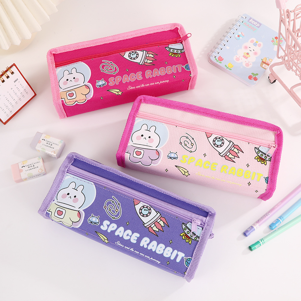 새로운 대용량 필통, 만화풍 귀여운 우주 토끼 문구 필통, 나일론 천 학생용 필통