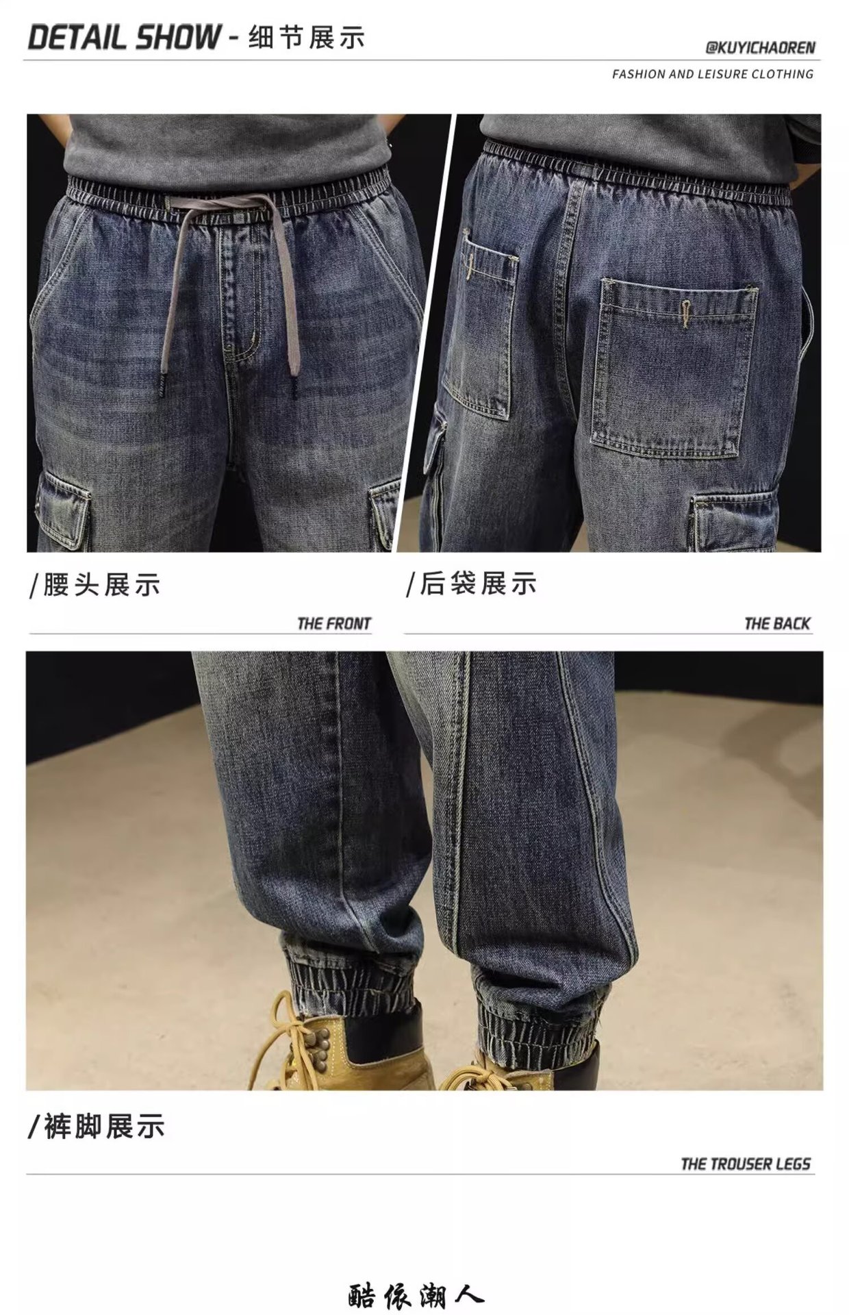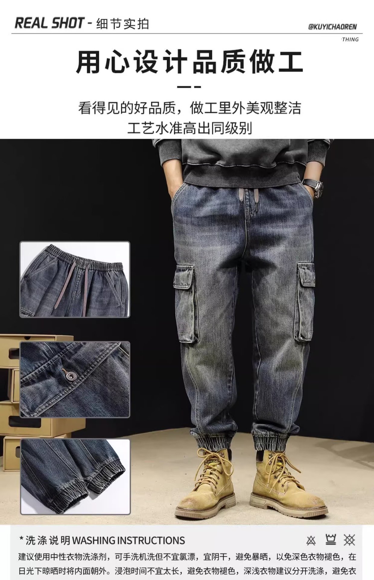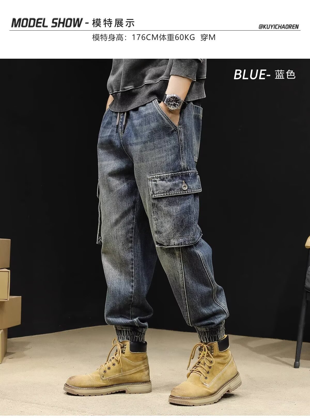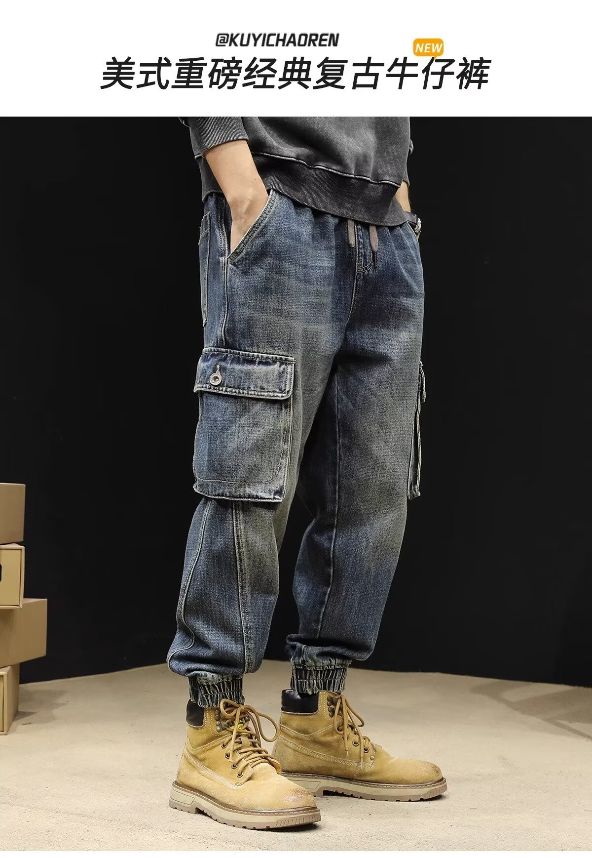 트렌디 한 브랜드 청바지 남자 가을 2024 가을과 겨울을위한 새로운 느슨한 다리 플러스 사이즈 남자 바지스토어 가기