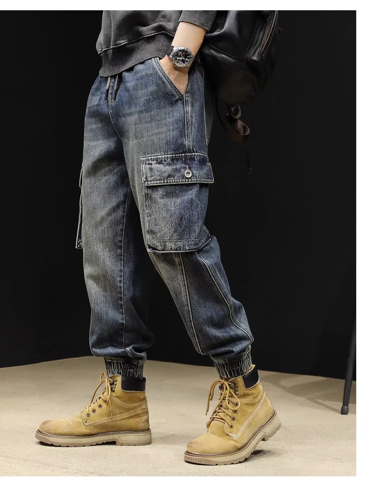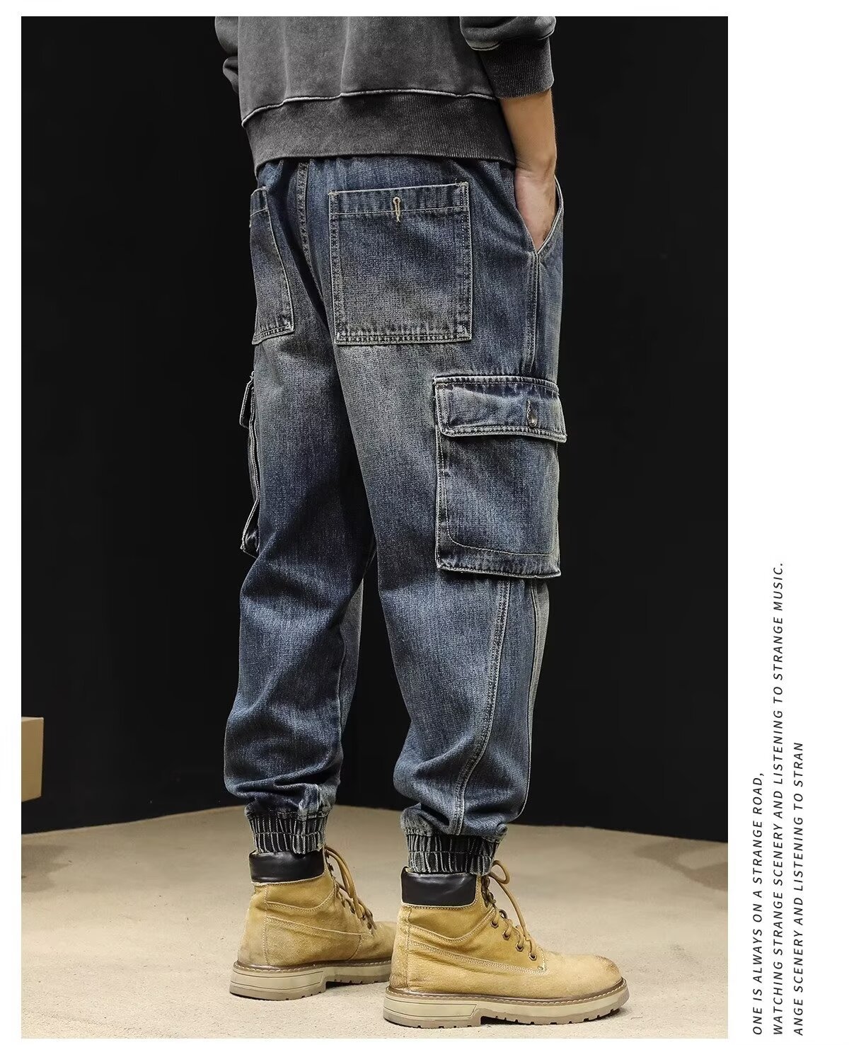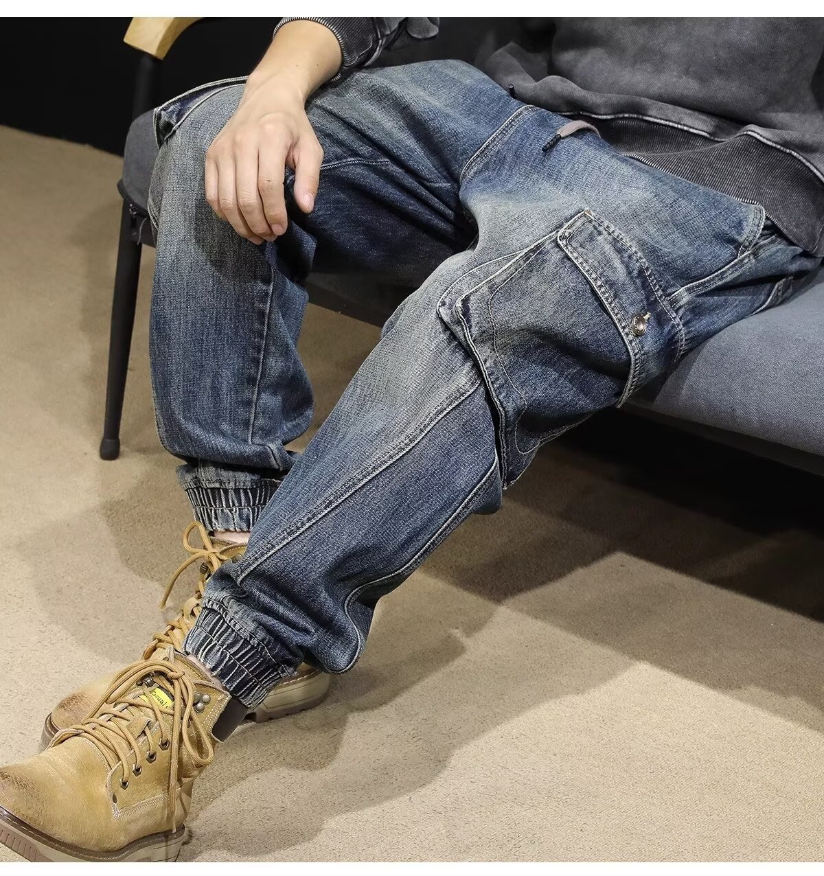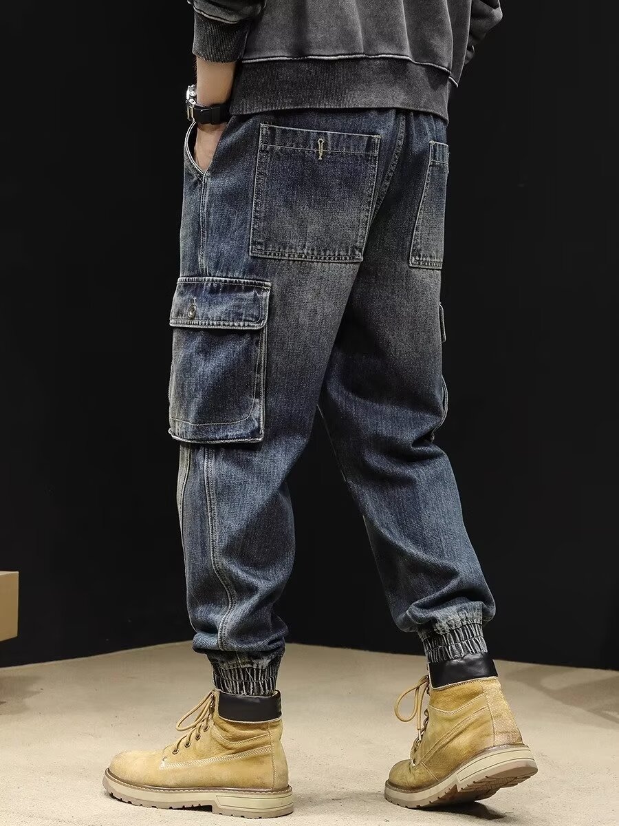 트렌디 한 브랜드 청바지 남자 가을 2024 가을과 겨울을위한 새로운 느슨한 다리 플러스 사이즈 남자 바지스토어 가기