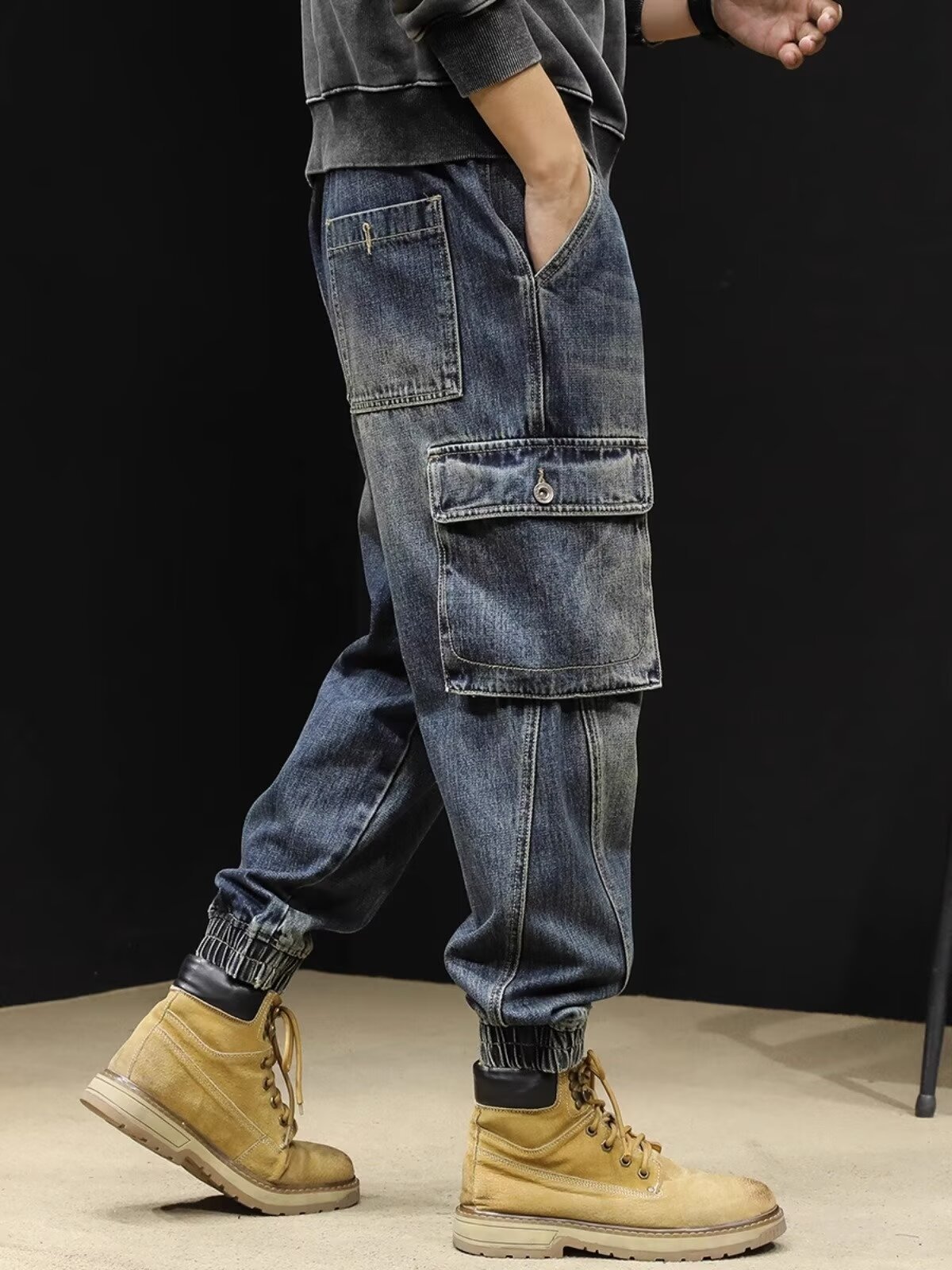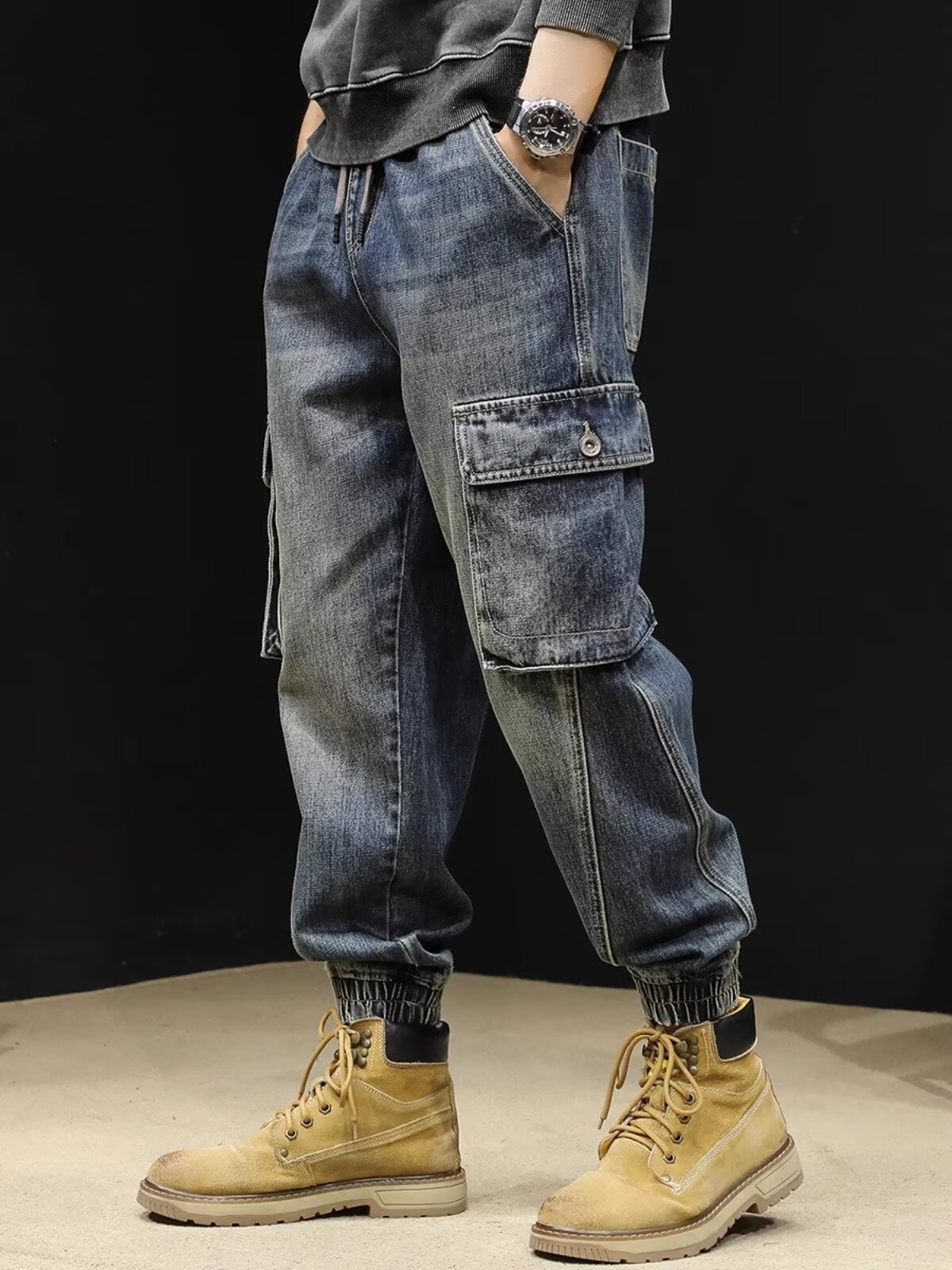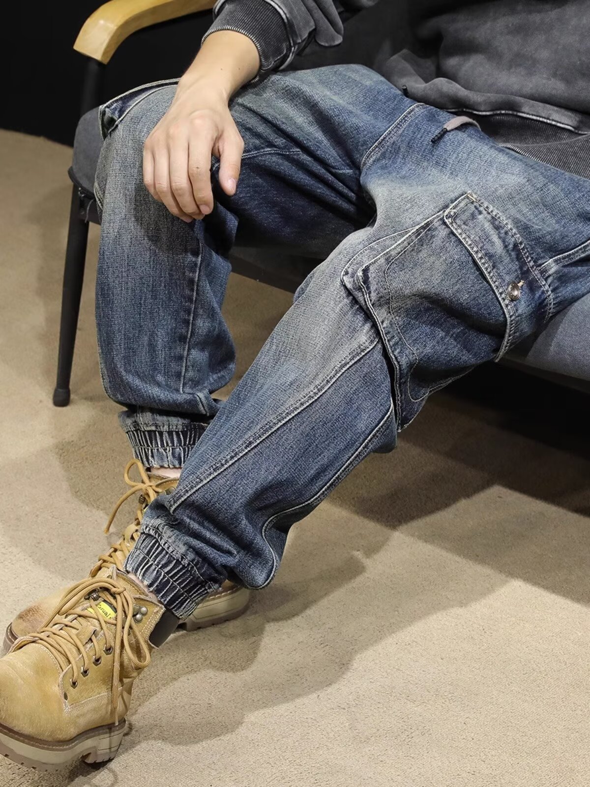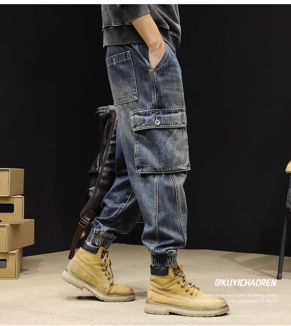 트렌디 한 브랜드 청바지 남자 가을 2024 가을과 겨울을위한 새로운 느슨한 다리 플러스 사이즈 남자 바지스토어 가기