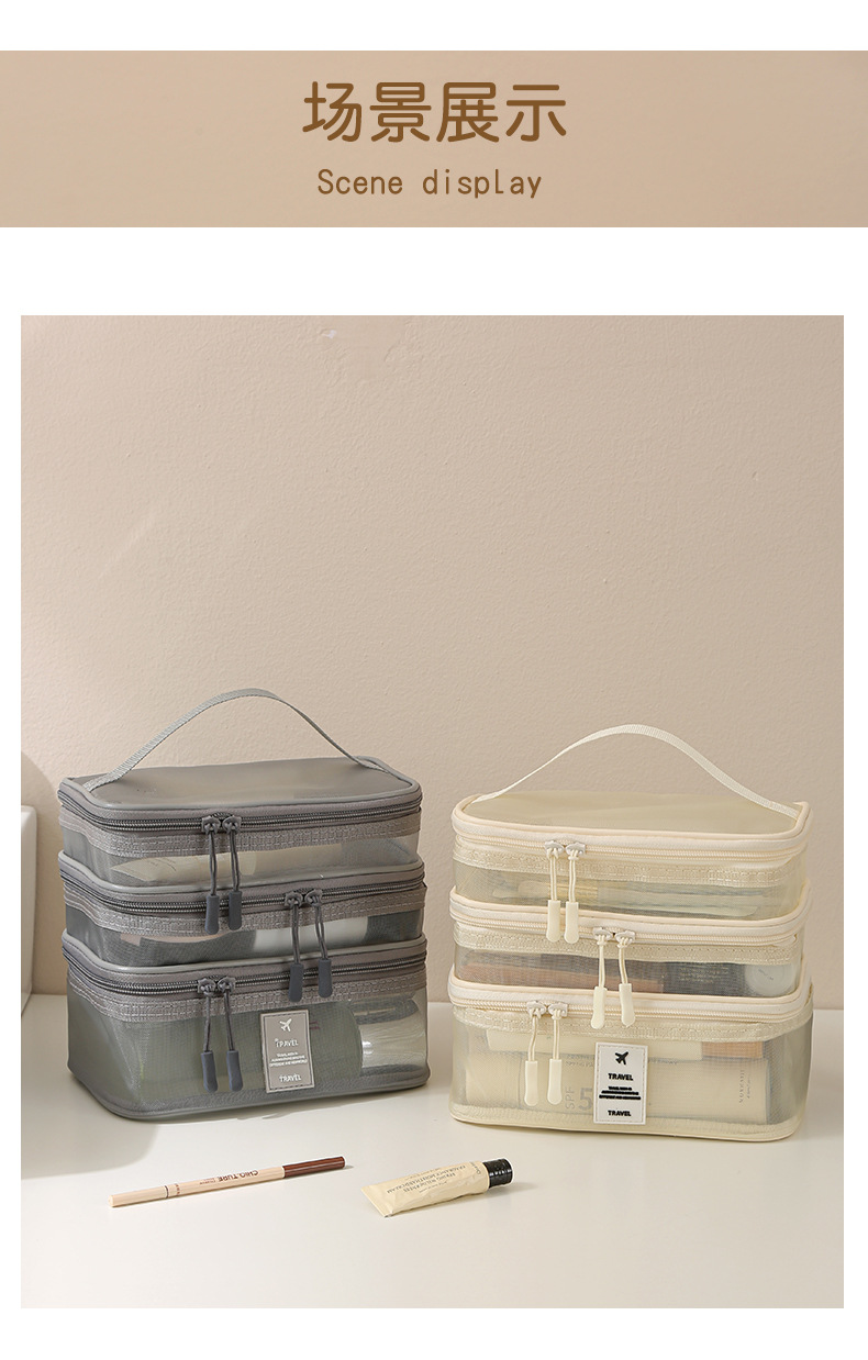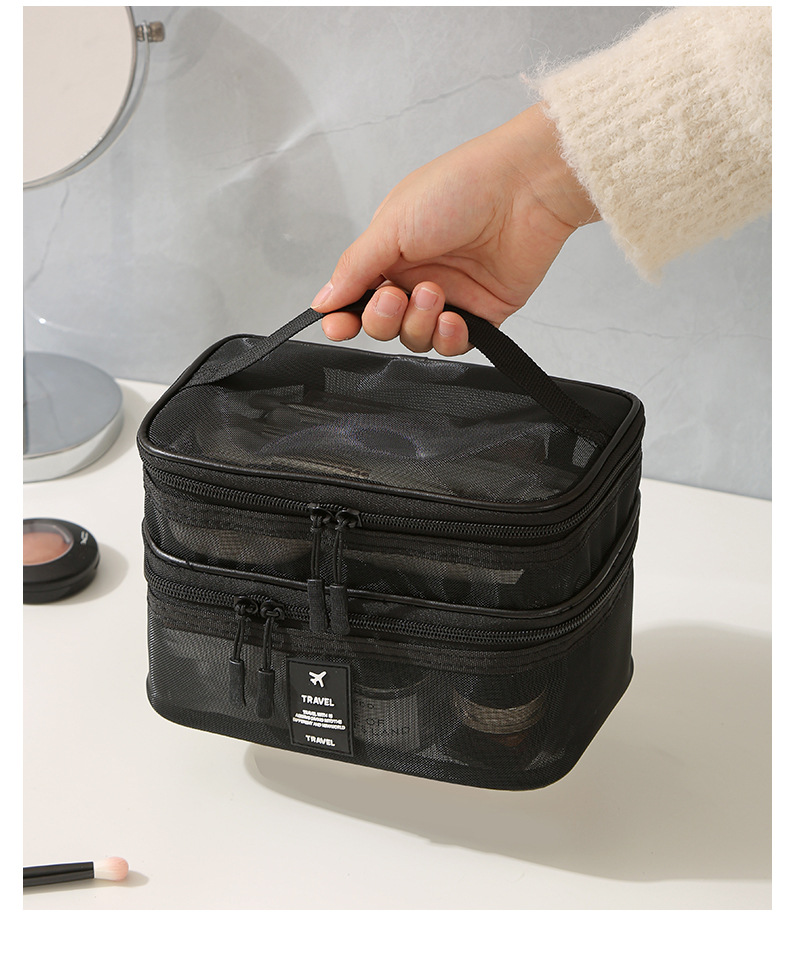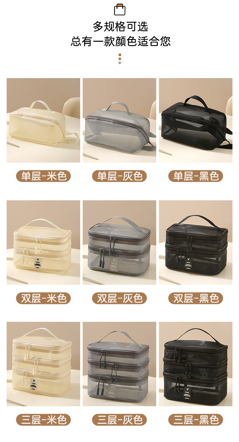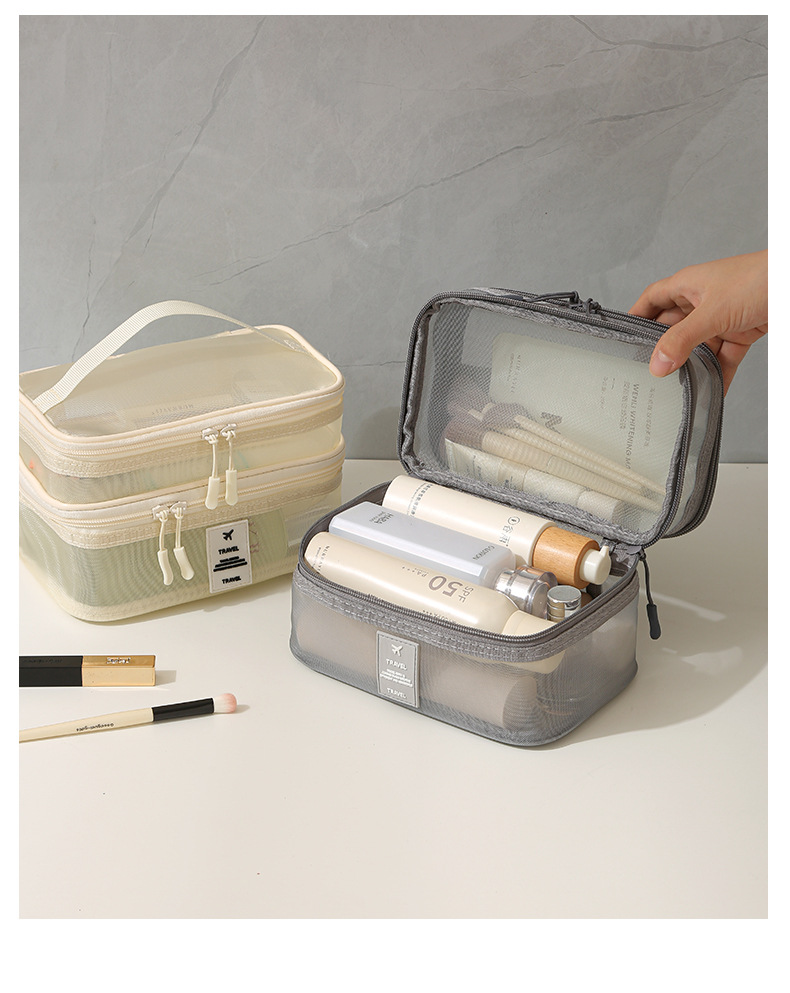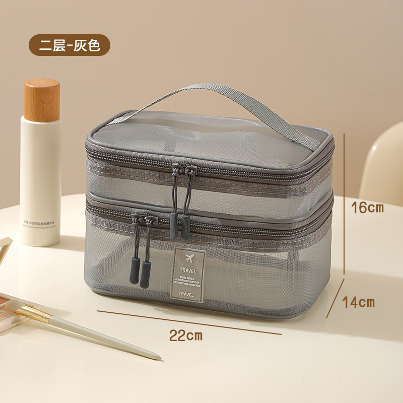 가정용 메쉬 투명 멀티 레이어 화장품 보관 가방 여행 핸들 휴대용 대용량 화장실 보관 가방스토어 가기