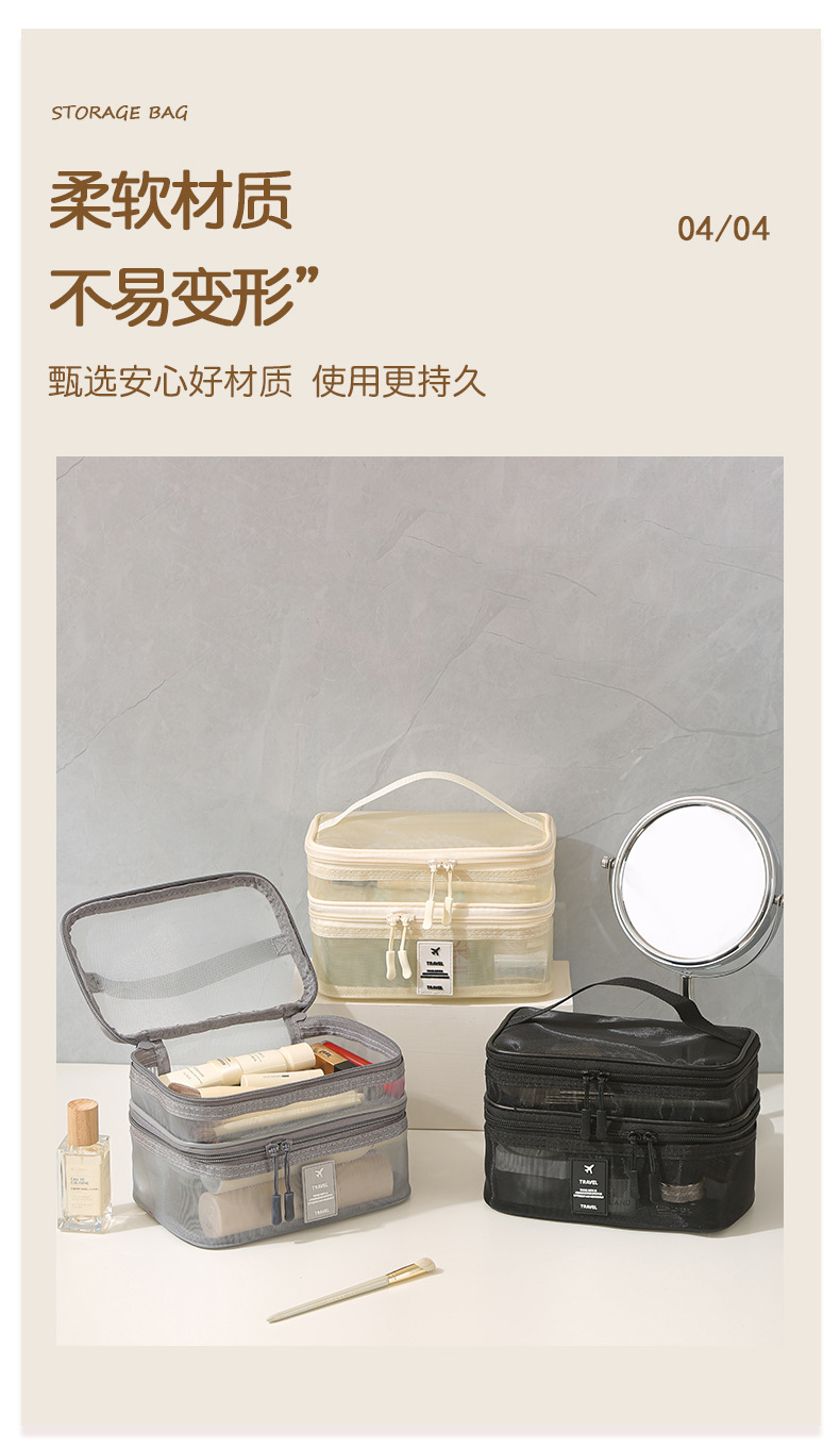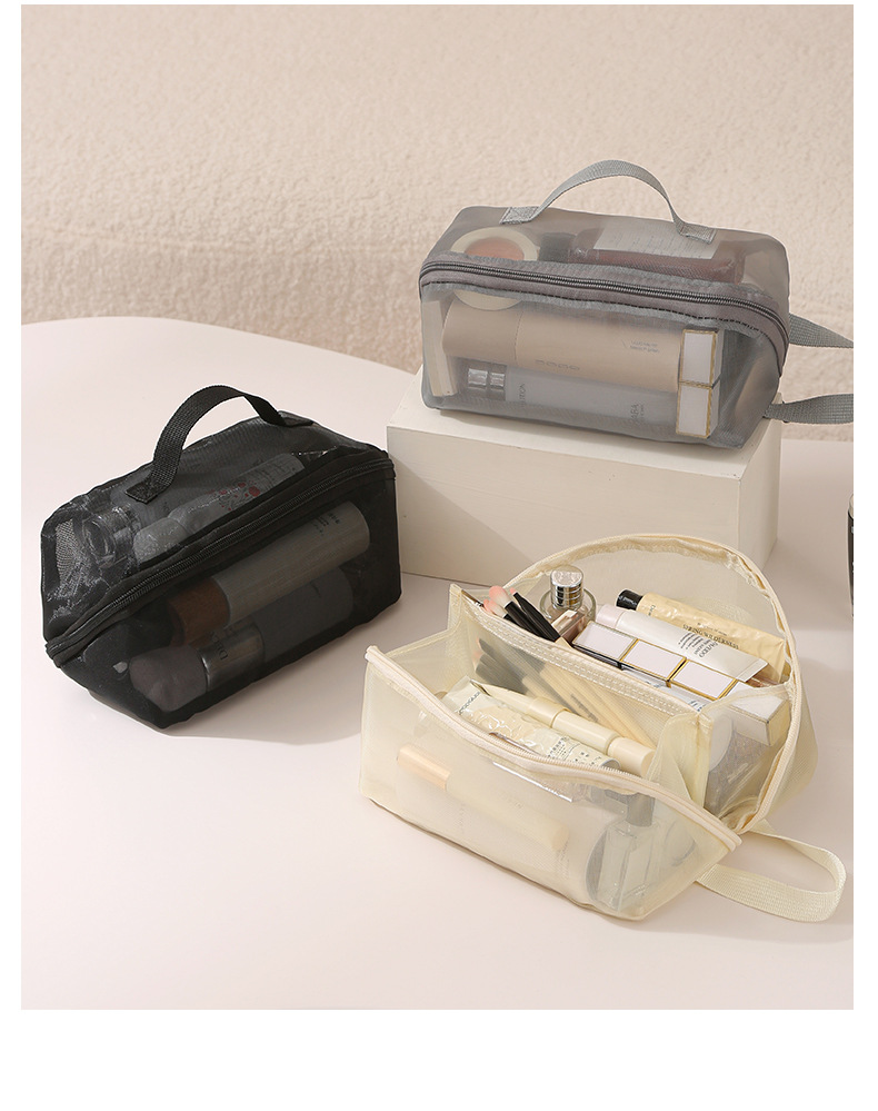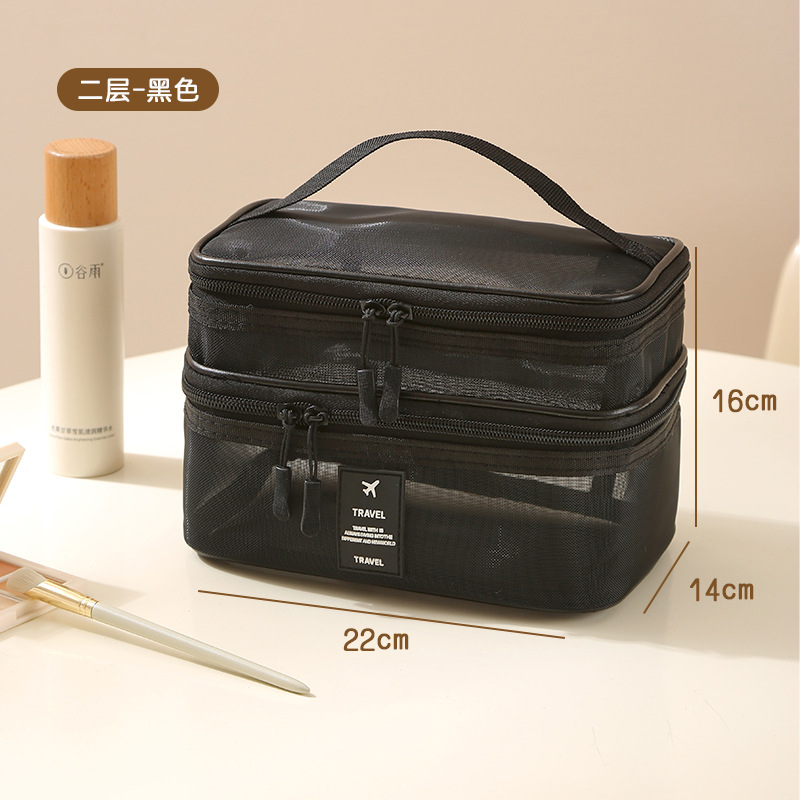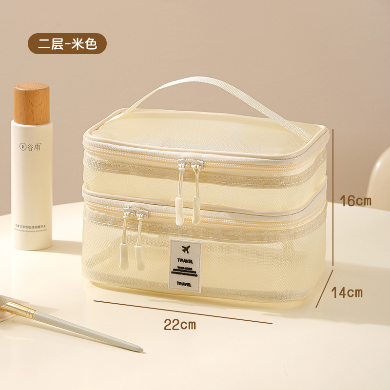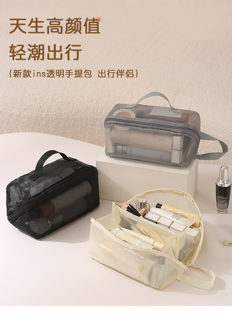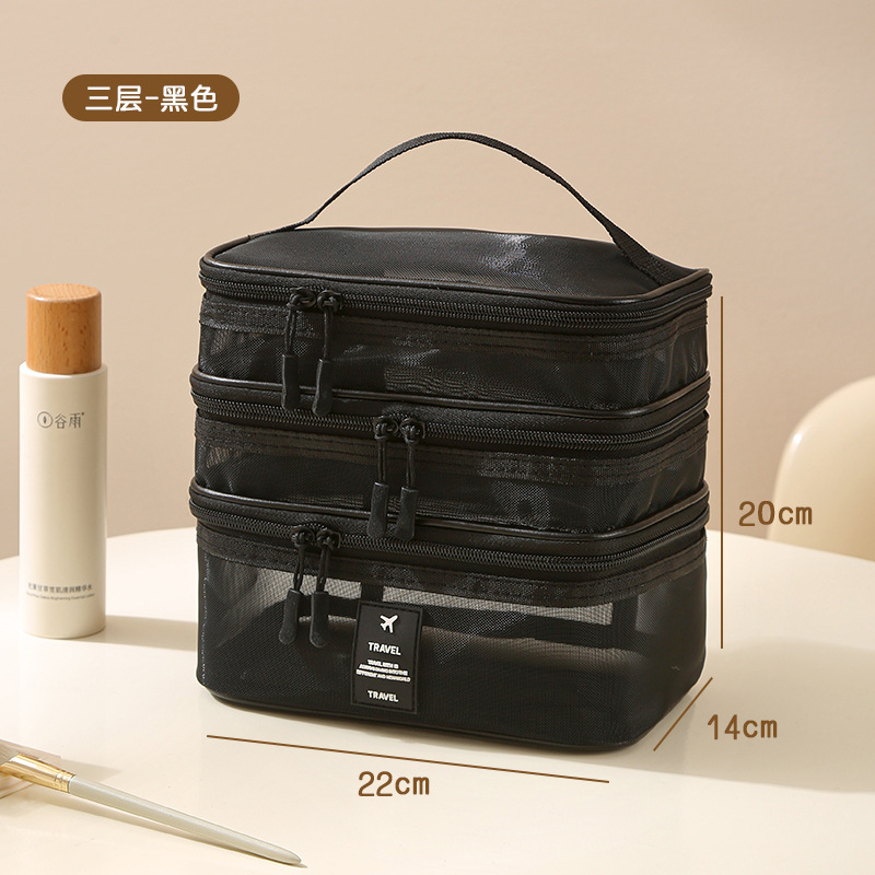 가정용 메쉬 투명 멀티 레이어 화장품 보관 가방 여행 핸들 휴대용 대용량 화장실 보관 가방스토어 가기