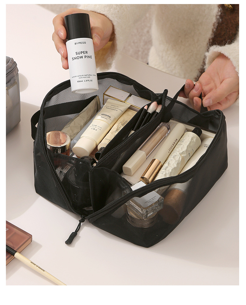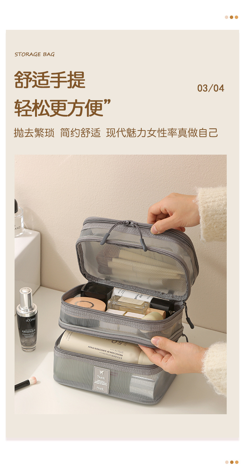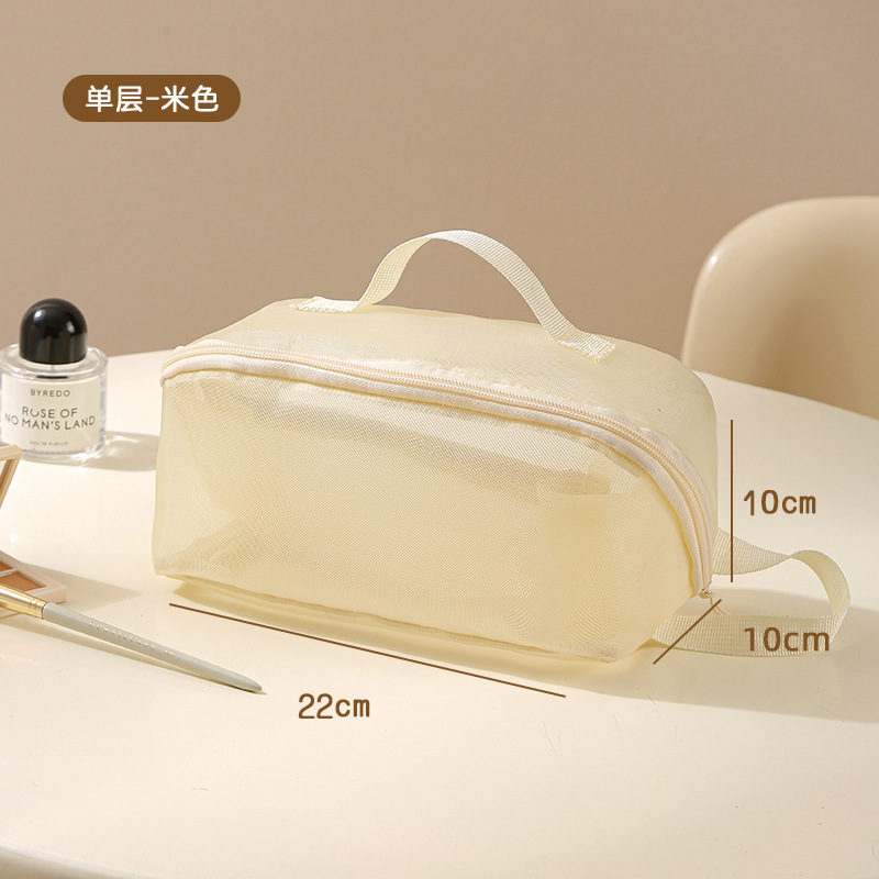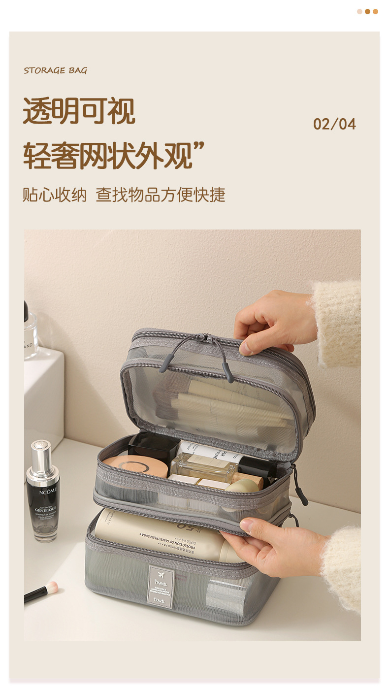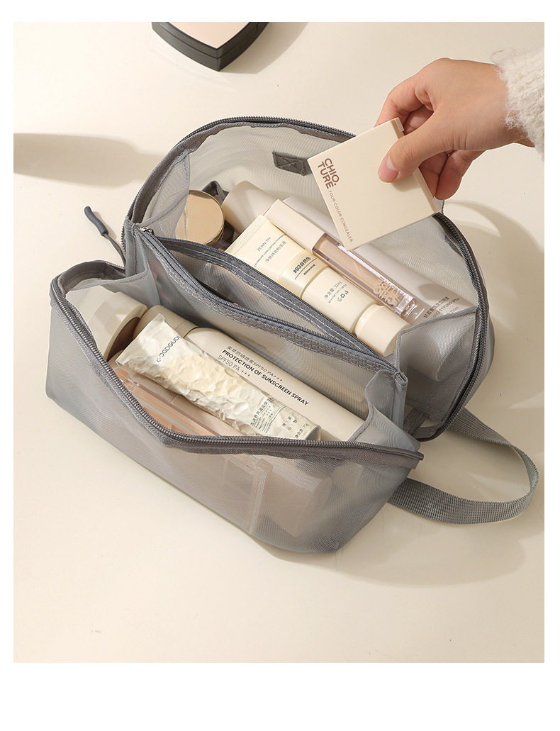 가정용 메쉬 투명 멀티 레이어 화장품 보관 가방 여행 핸들 휴대용 대용량 화장실 보관 가방스토어 가기