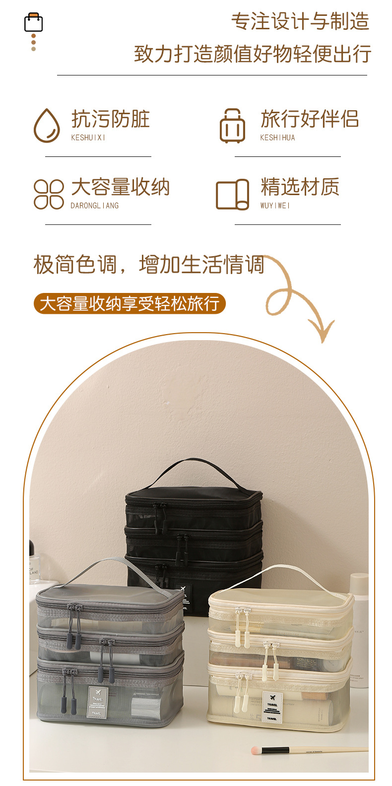 • 화장품 가방 - 베이지 3겹