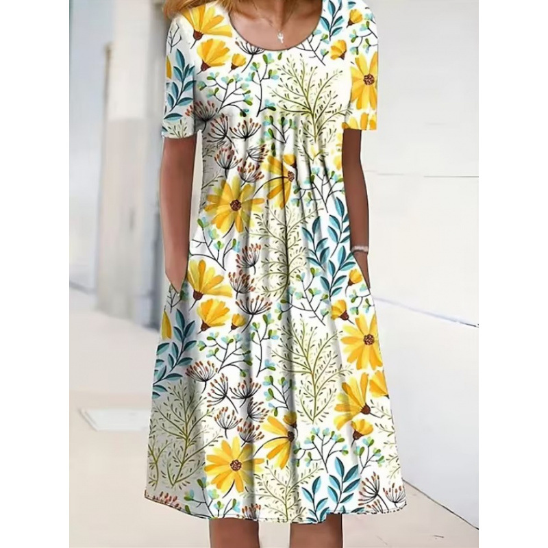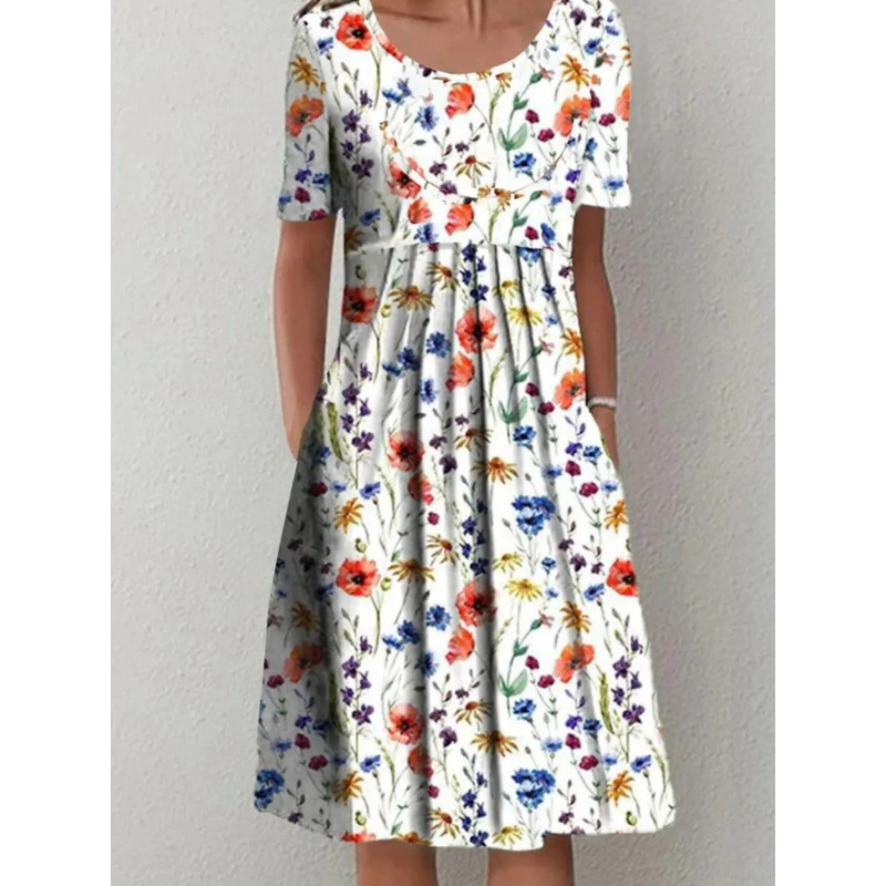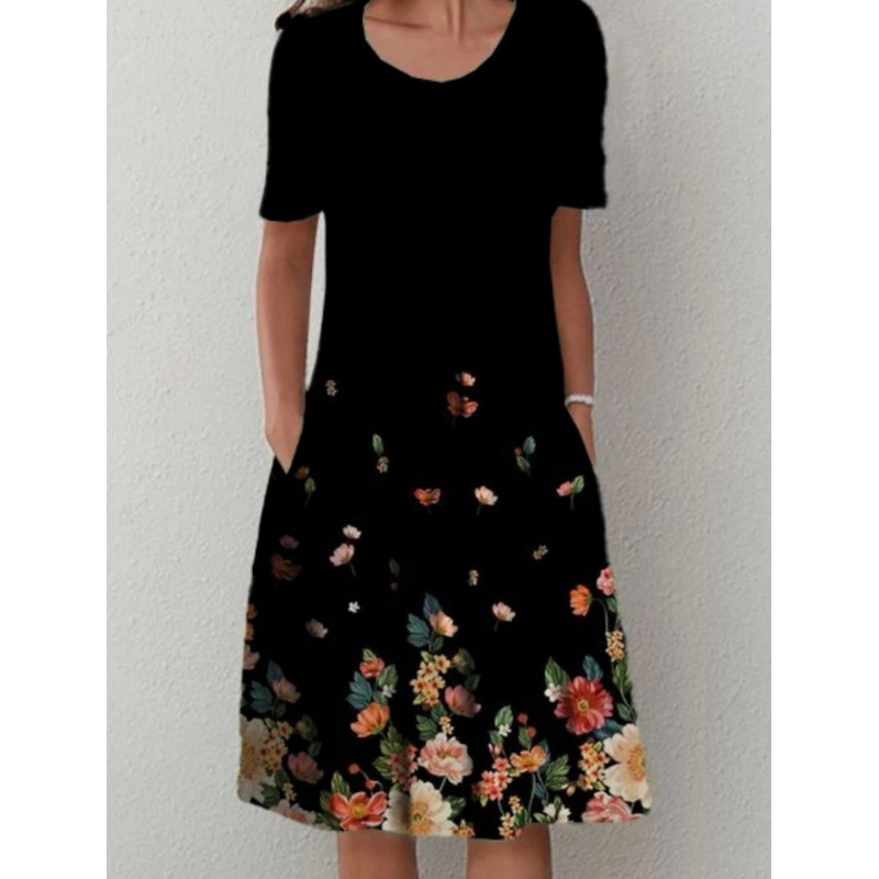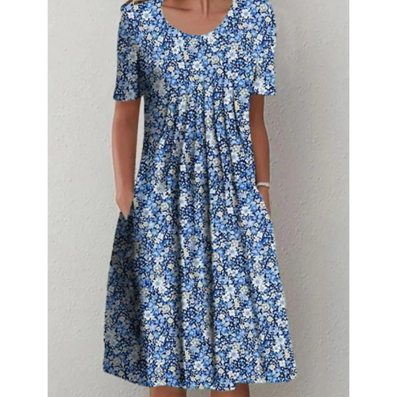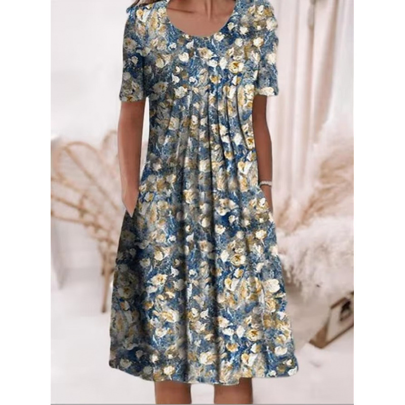 국경 간 대외 무역 2023 이베이 아마존 소원 봄과 여름 꽃 인쇄 둥근 목 포켓 긴 원피스 여성 의류스토어 가기