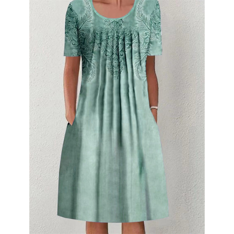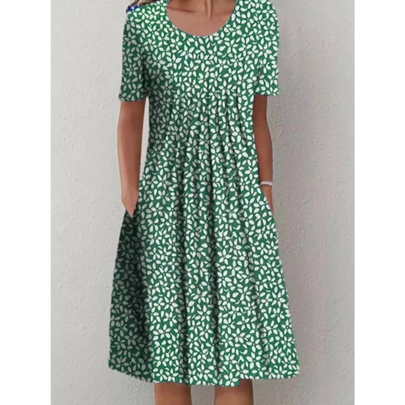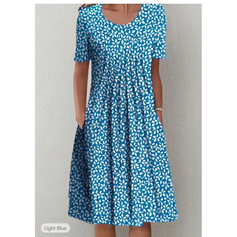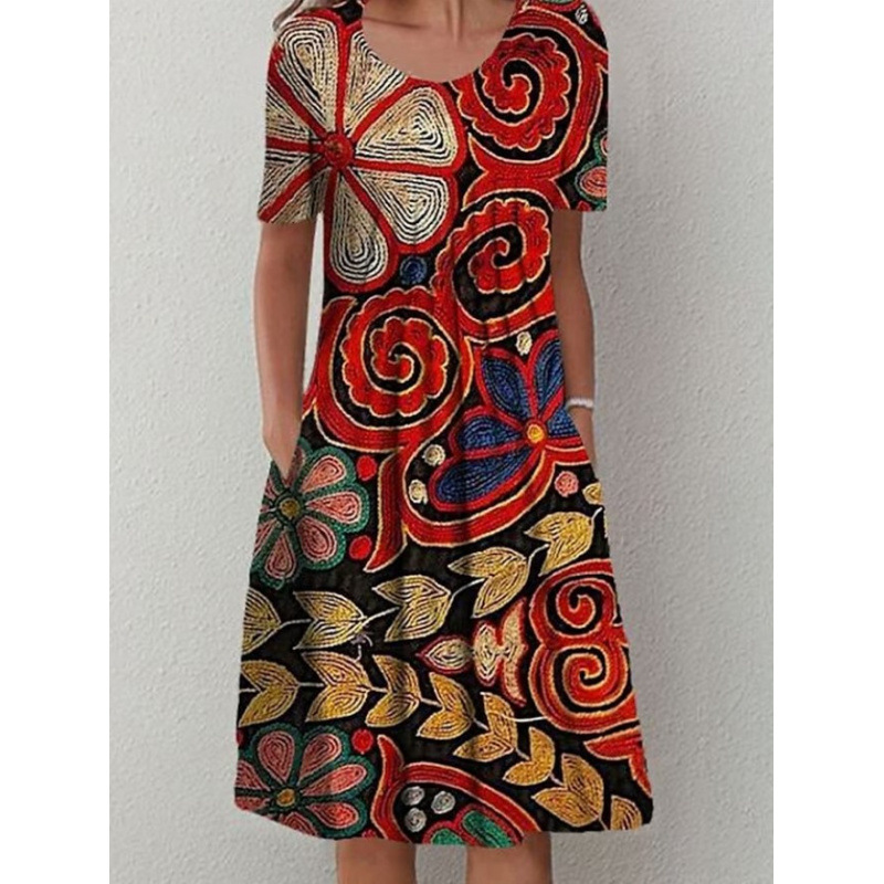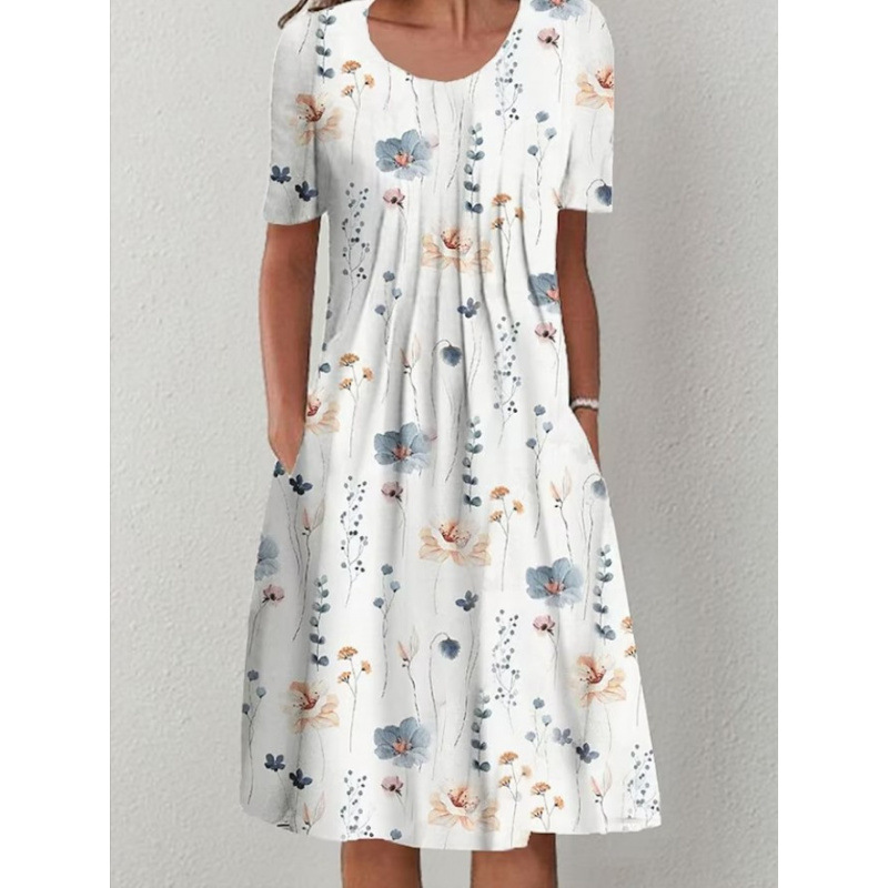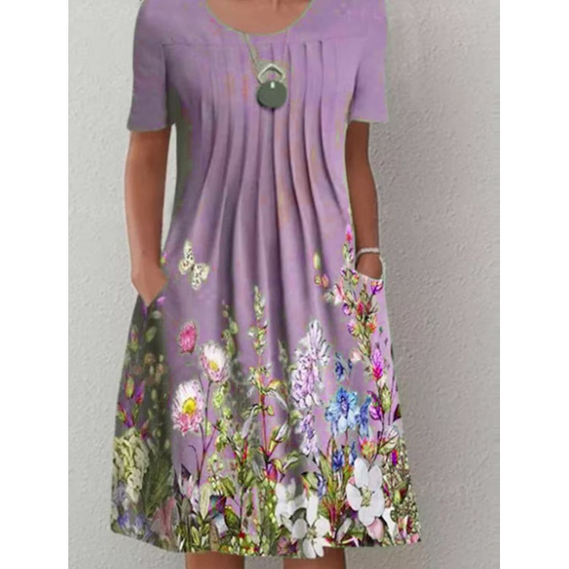 국경 간 대외 무역 2023 이베이 아마존 소원 봄과 여름 꽃 인쇄 둥근 목 포켓 긴 원피스 여성 의류스토어 가기