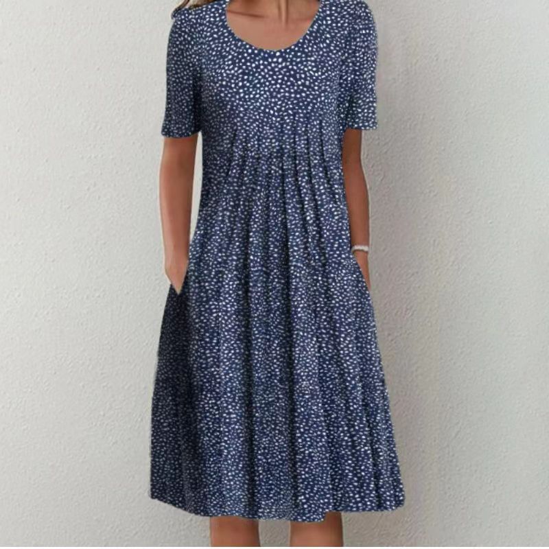 국경 간 대외 무역 2023 이베이 아마존 소원 봄과 여름 꽃 인쇄 둥근 목 포켓 긴 원피스 여성 의류