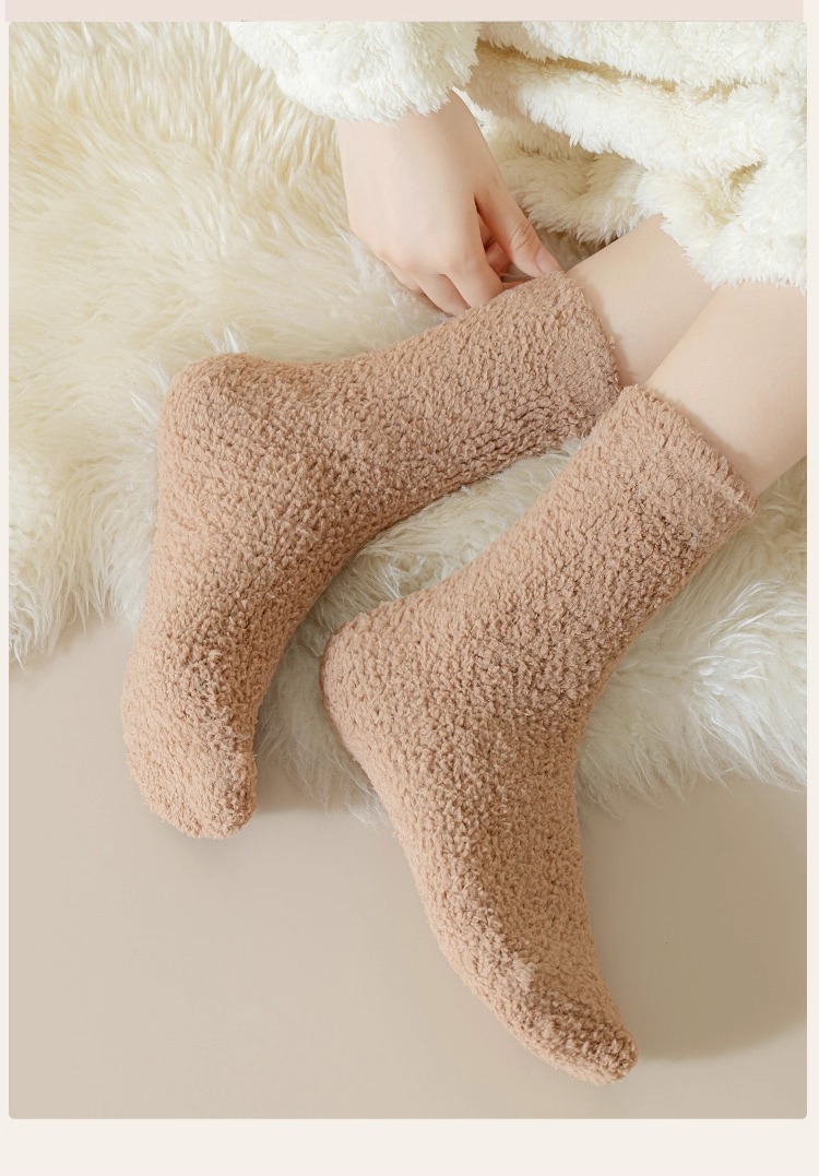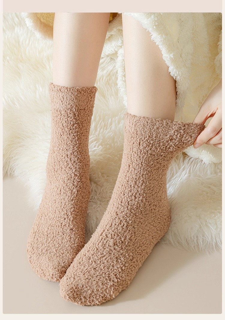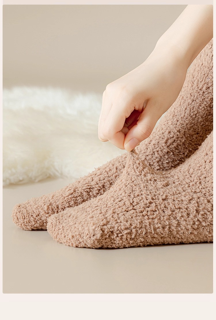 겨울 산호 양털 두꺼운 양말 여성 기모 두꺼운 따뜻한 내한성 북부 봉제 양말 바닥 잠자는 여성 양말