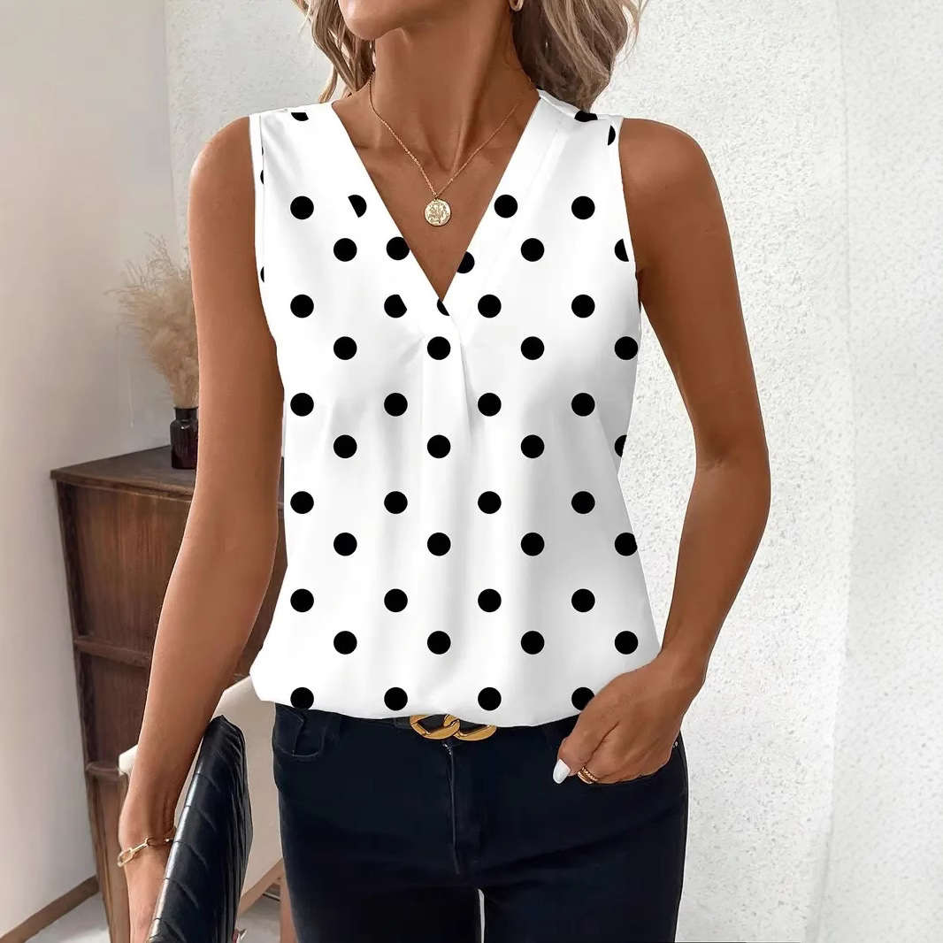 (재고 있음) 유럽 및 미국 해외 여성 의류 아마존 신상 여성 프린트 브이넥 민소매 패션 탑