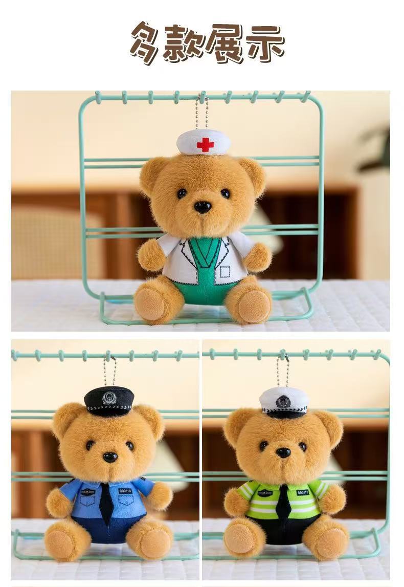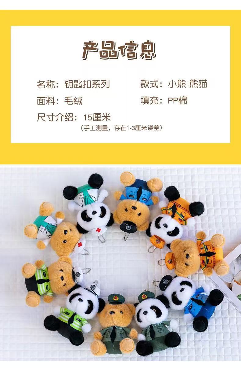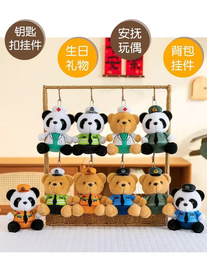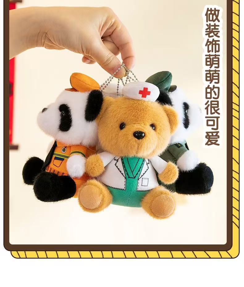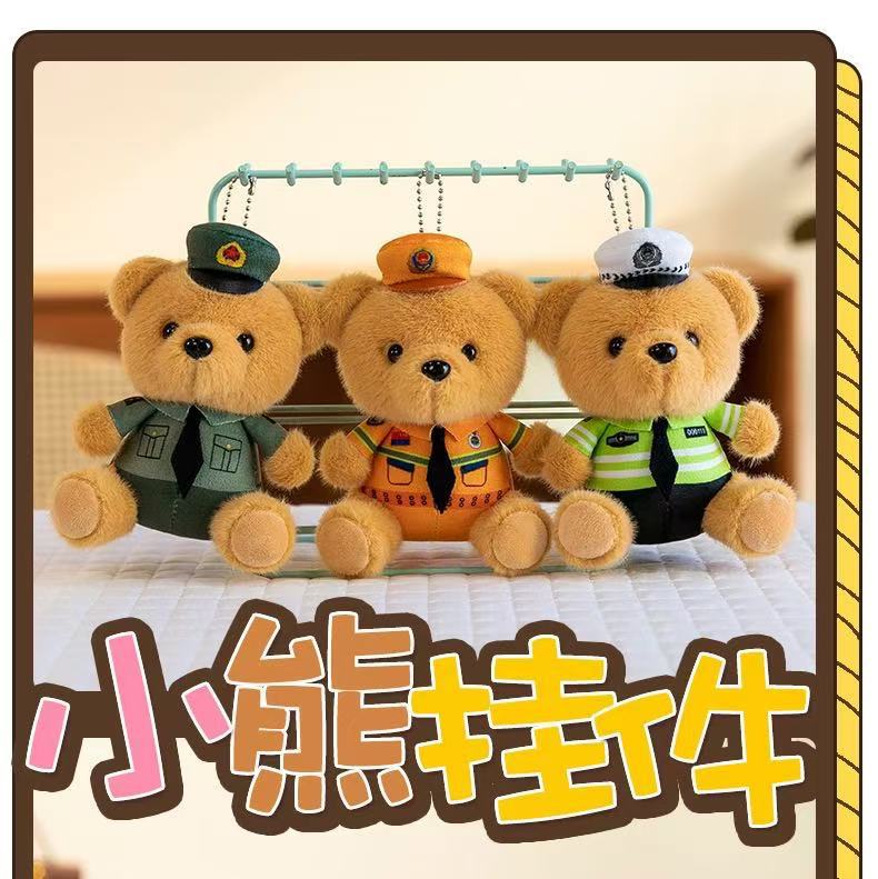 귀여운 교통 경찰 곰 펜던트 봉제 장난감 인형 경찰 자이언트 팬더 가방 펜던트 파이어 베어 키 체인스토어 가기